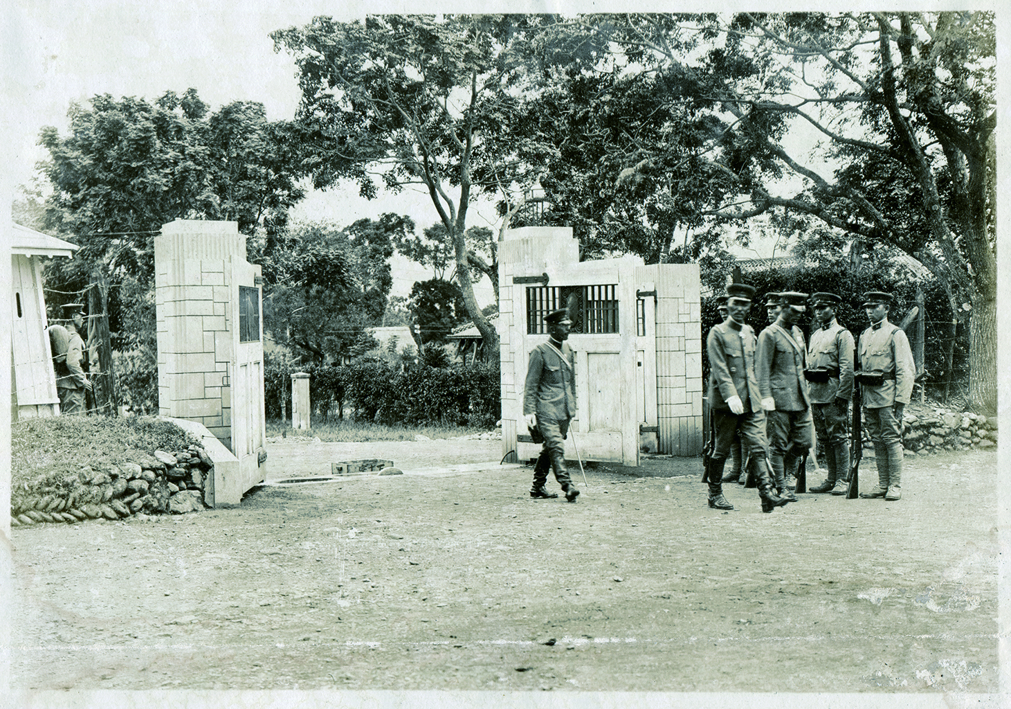 圖中是日治時期玉里分屯中隊的營區,臺灣軍司令官菱刈隆走進營區的樣子。菱刈隆為日本陸軍軍人,於1928年(昭和3年)8月至1930年(昭和5年)6月期間擔任臺灣軍司令官,之後曾擔任關東軍司令官、軍事參議官、滿州國大使等。1907年(明治40年),日本為了能夠更有效地控制臺灣,在臺灣以及臺南各成立一個步兵聯隊,其中駐守臺北的隊伍稱為臺灣步兵第一聯隊,駐守臺南的就是臺灣步兵第二聯隊,兩個聯隊的守備區域則以濁水溪為界。臺灣步兵地案聯隊除了駐守臺南的隊本部之外,另外聯隊下還有三個單位,分別是花蓮港分屯大隊、玉里分屯中隊、臺東分屯中隊。照片中即是在花蓮區的玉里分屯中隊營區。此影像收錄於2016年(民國105年)由花蓮文史工作者葉柏強先生撰寫、花蓮縣文化局出版的《顧我洄瀾:花蓮歷史影像集》,書中收錄了大量花蓮在地的歷史影像,如老照片、繪葉書、宣傳摺頁、郵戳樣式等,是深入花蓮文史的重要書籍。