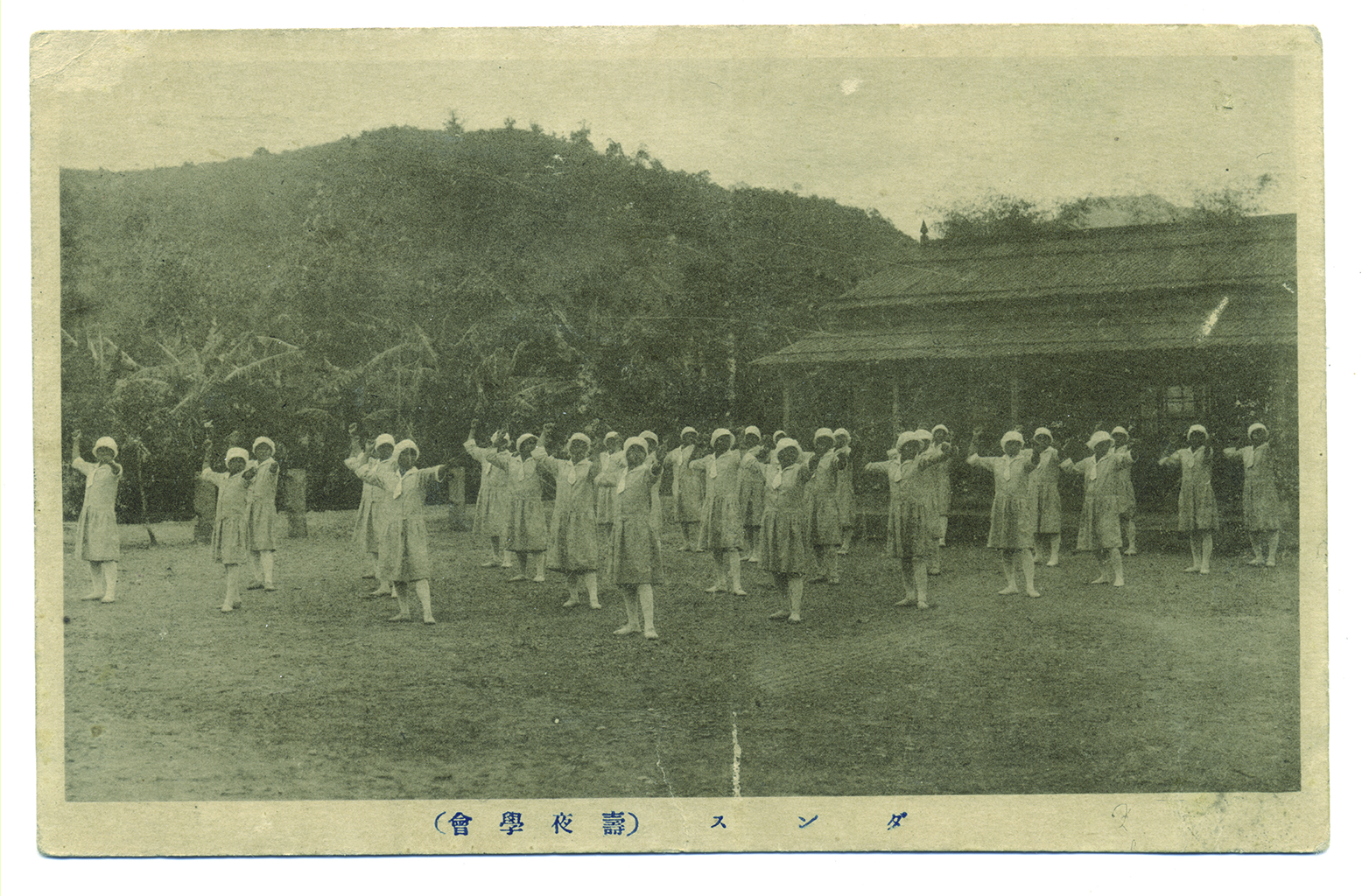 此明信片上之照片,為日治時期「壽夜學會」之舞蹈活動,照片年代可能在1922年(大正11年)至1941年(昭和16年)之間。所謂的「夜學會」,為日本治理臺灣時期為推動「國語」,也就是日語普及化,所設立的相關社會教育設施。其又可以稱為「國語夜學會」。而設立的起因,乃為當時臺灣總督府認為以公學校作為中心點,來推廣日語的方式成效相當有限,因此,才自1910年代中期開始鼓勵此組織的設立,其主要教授的內容除了日語外,亦有禮儀相關的課程。此影像收錄於《顧我洄瀾:花蓮歷史影像集》一書,為葉柏強先生撰寫、花蓮縣文化局於2016年(民國105年)出版。書中記錄了花蓮近百年的城市樣貌,是一本擁有豐富文史與圖像資料的書籍。