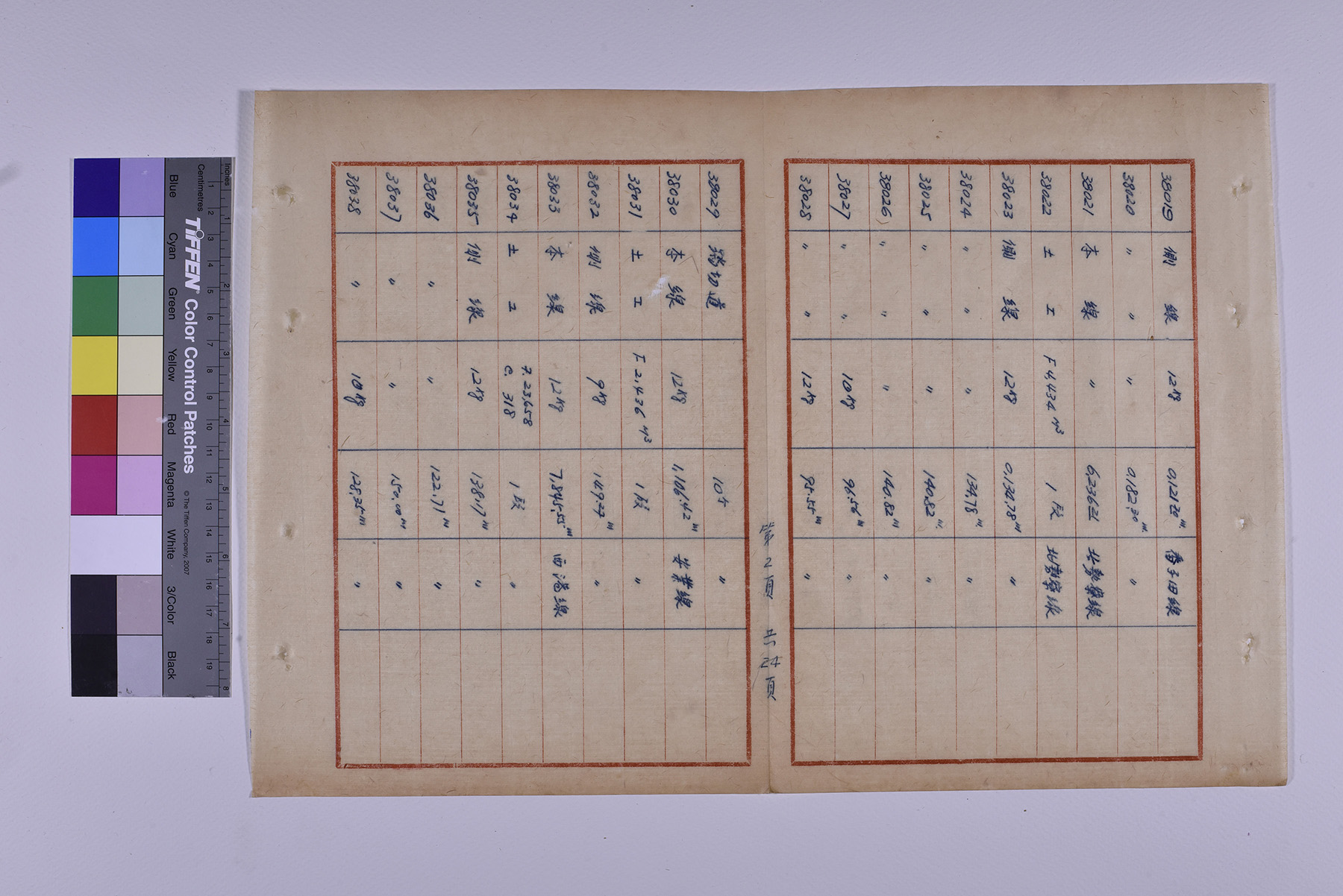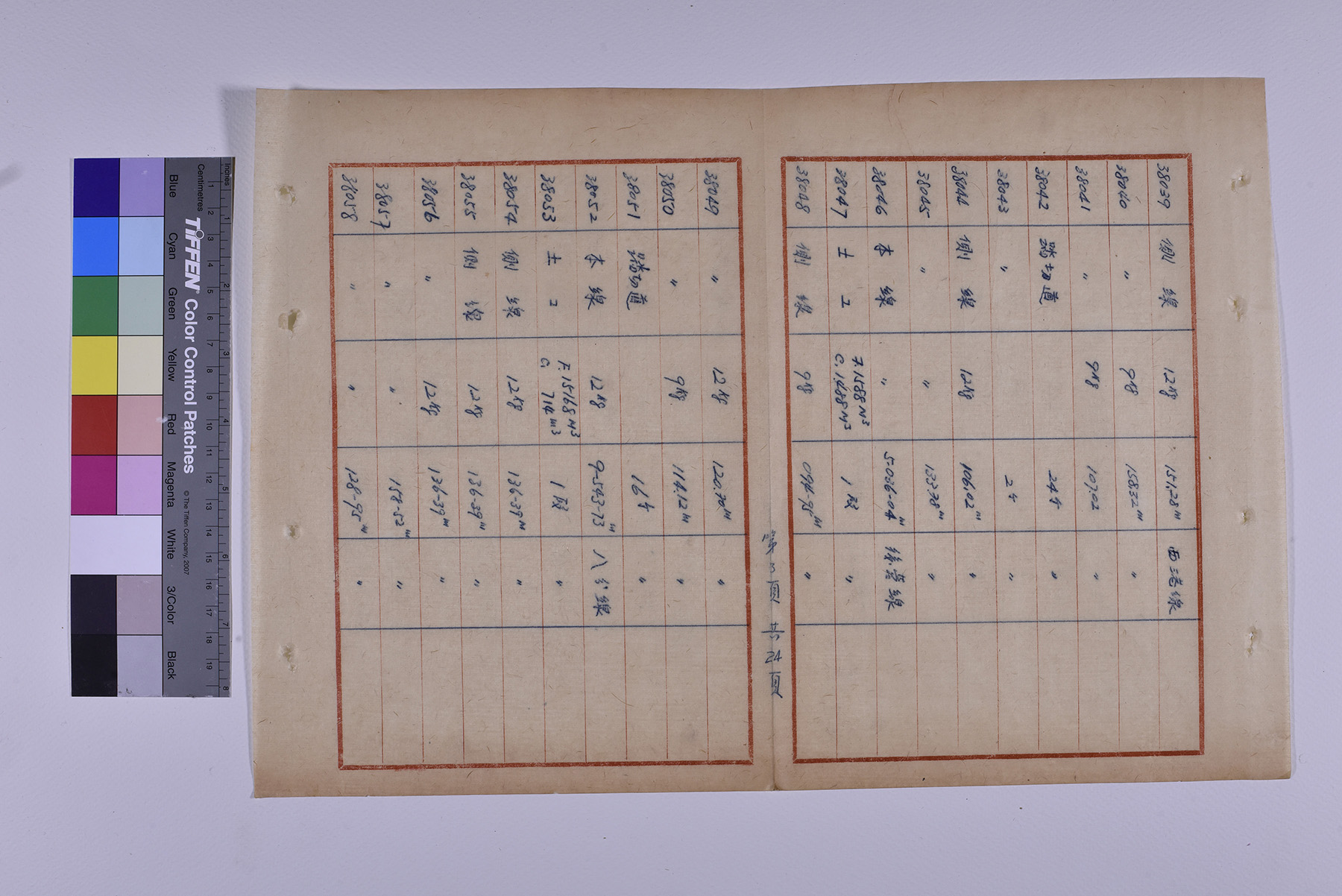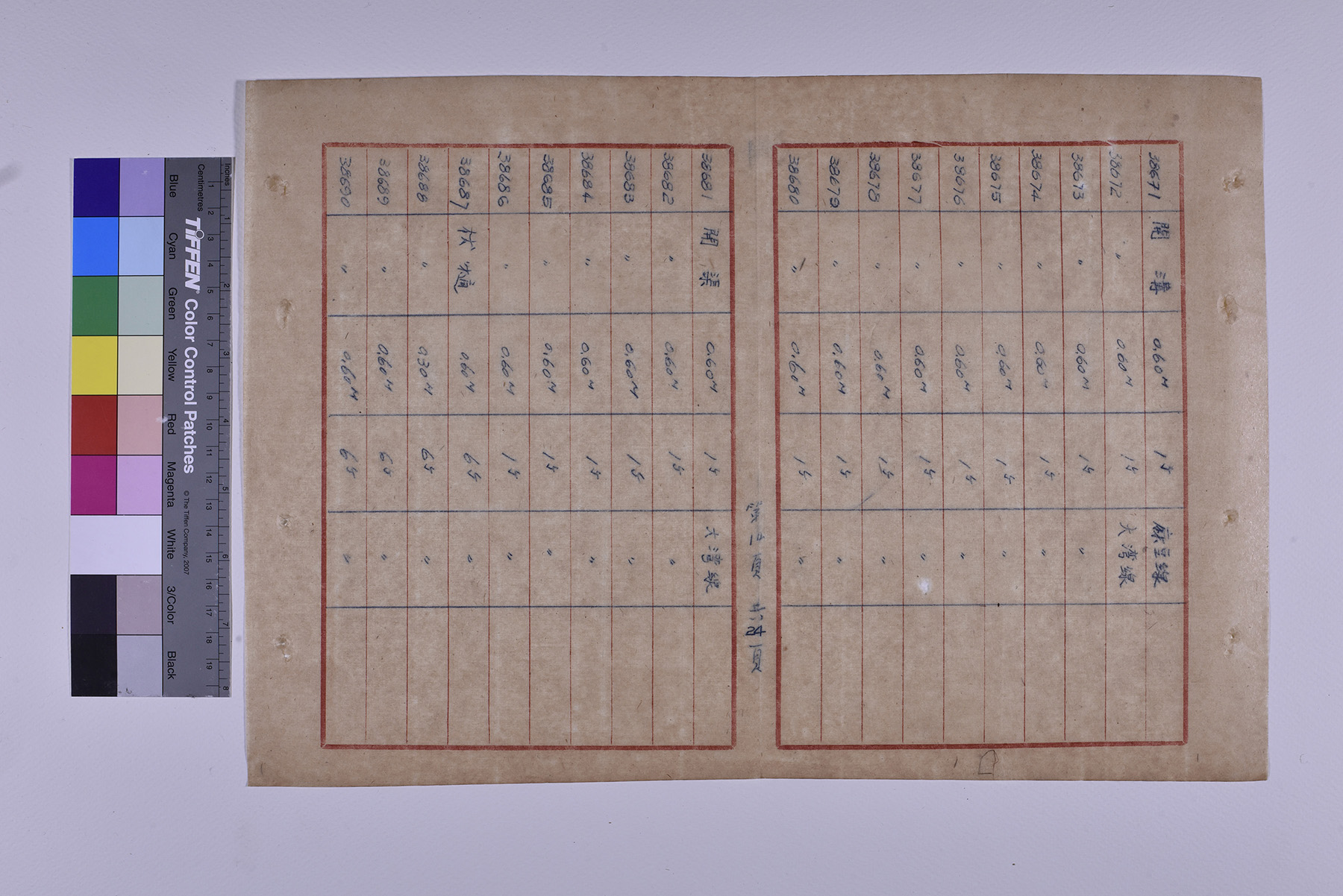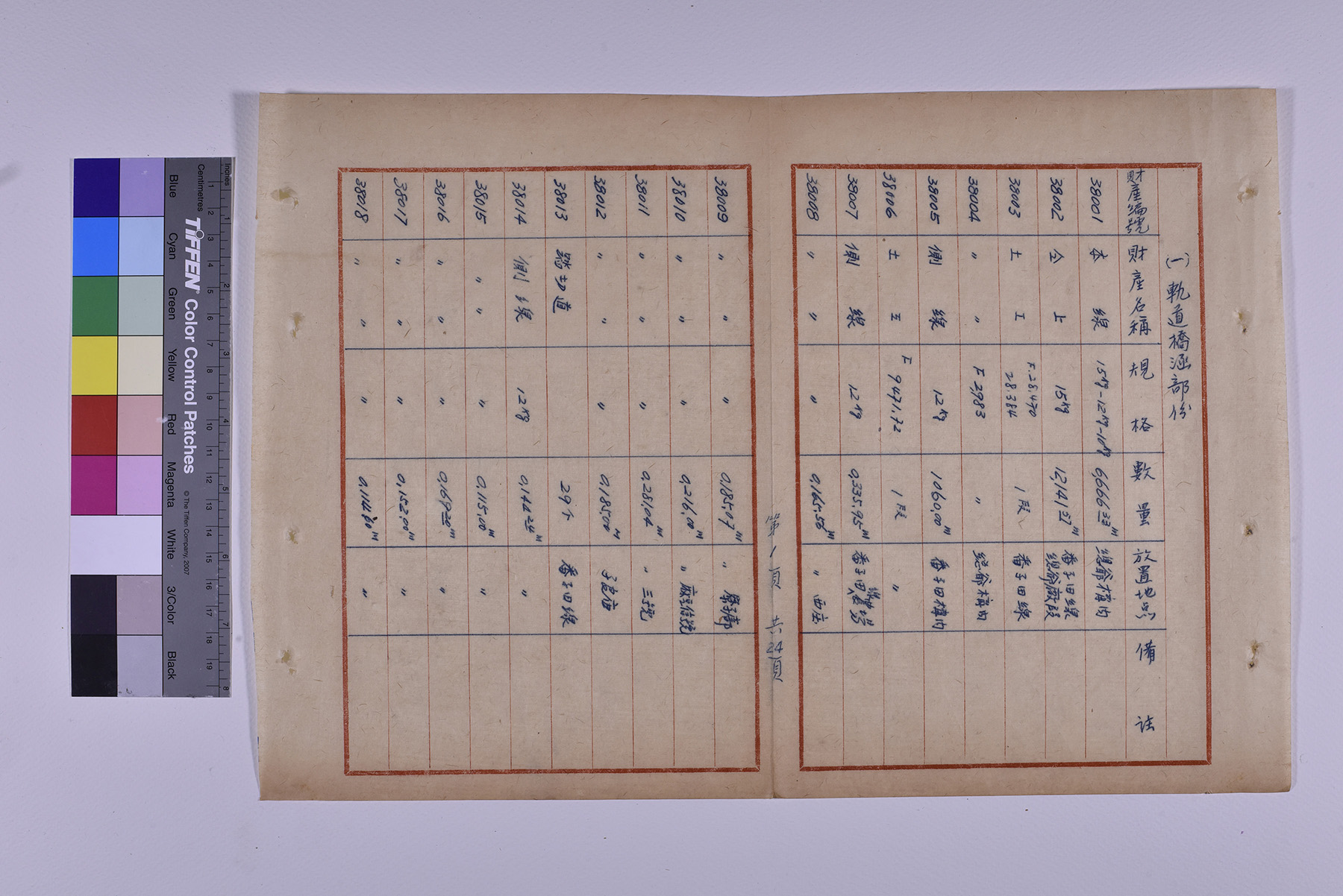 本件為1951年(民國40年)臺糖總爺總廠鐵道督導處軌道橋涵部份移交清冊,以十行紙書寫15頁,記錄軌道橋梁的編號、名稱、規格、數量、放置地點。