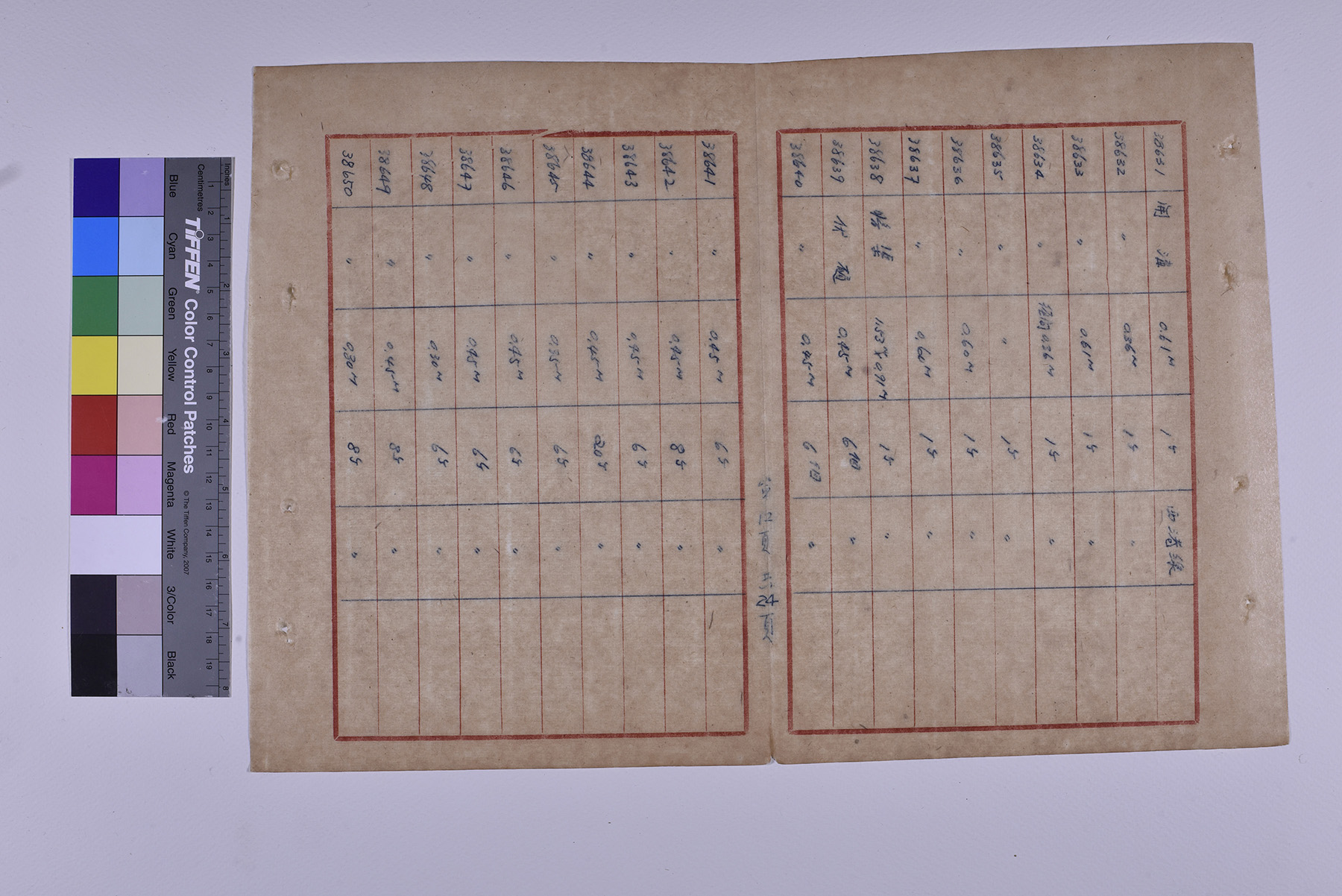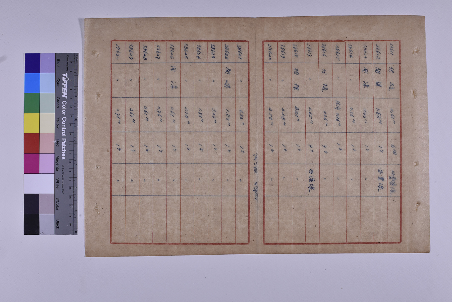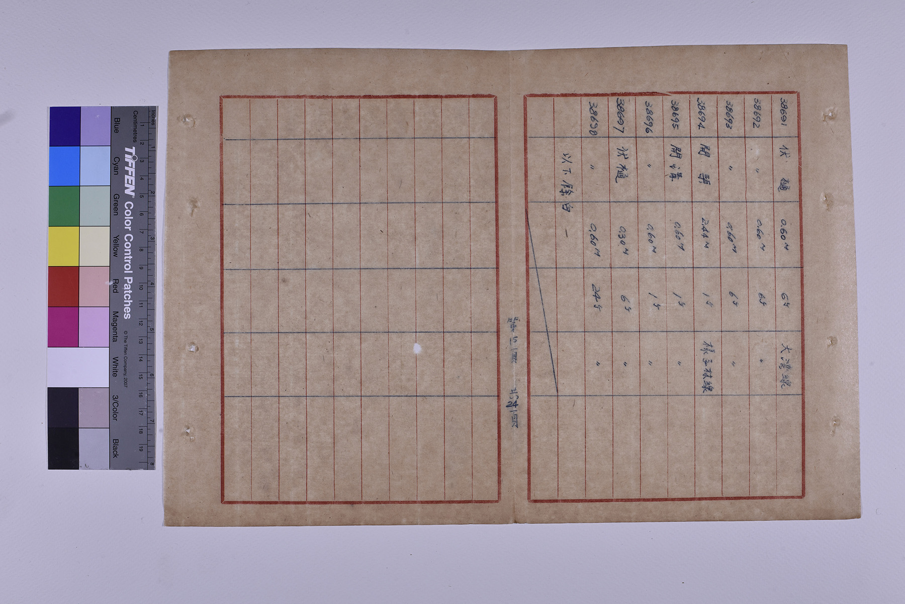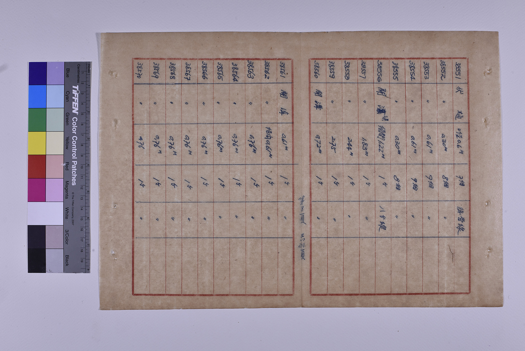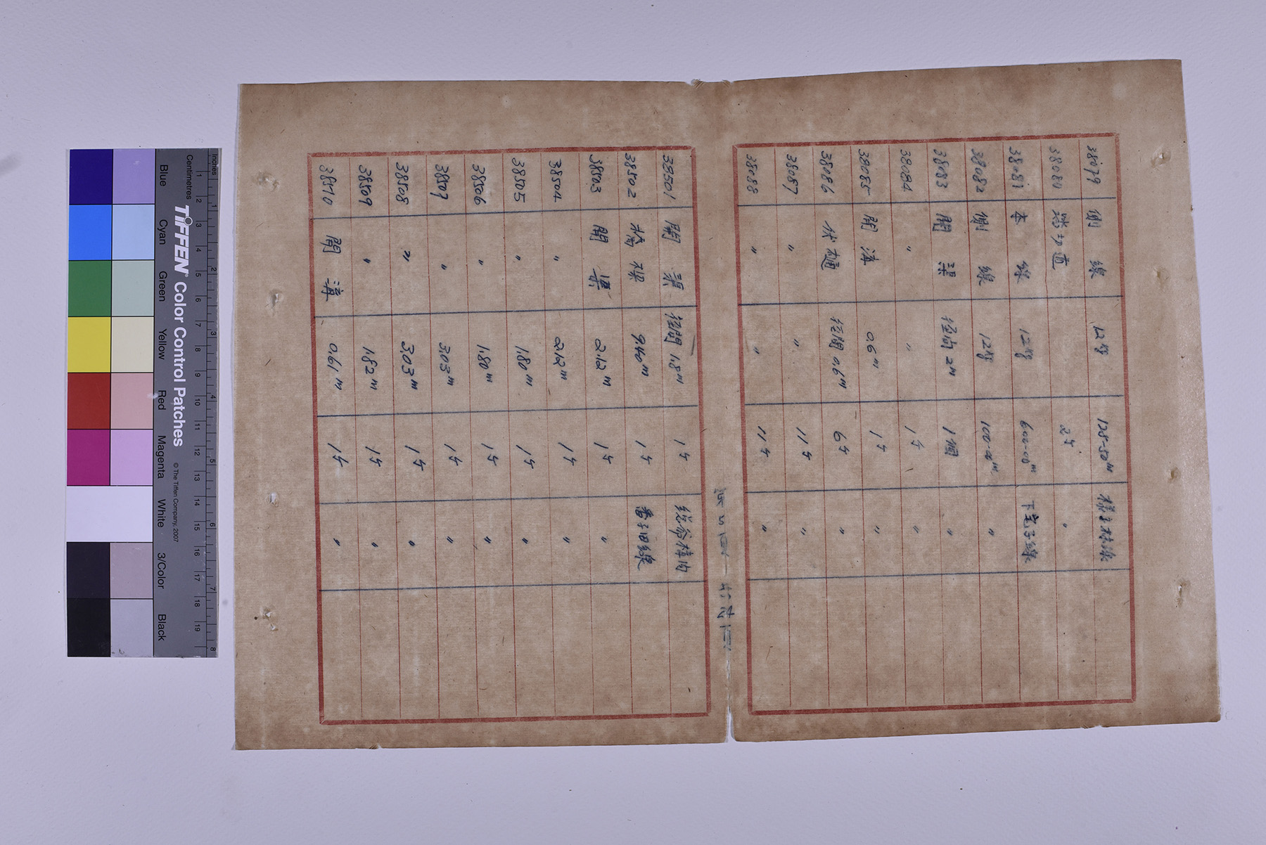 本件為1951年(民國40年)臺糖總爺總廠鐵道督導處軌道橋涵部份移交清冊,以十行紙書寫15頁,記錄軌道橋梁的編號、名稱、規格、數量、放置地點。