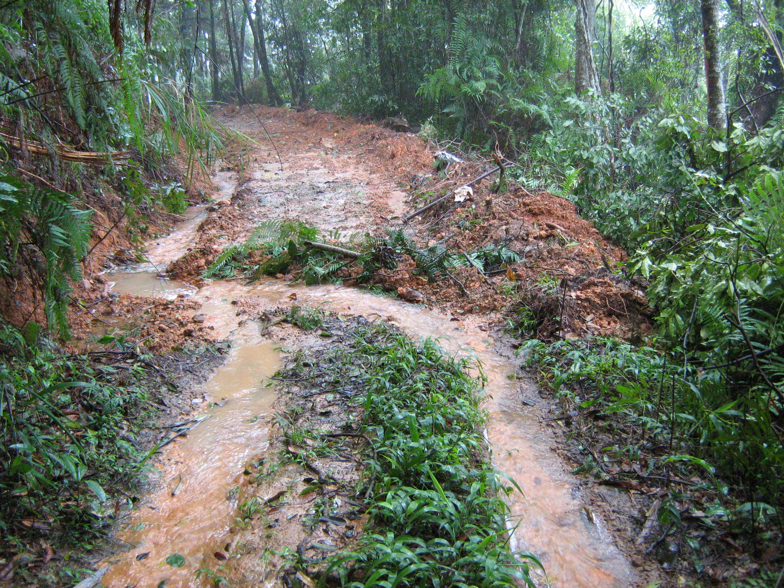 卡玫基風災期間,根據交通部中央氣象局日月潭氣象站,及茶業改良場魚池分場測候站資料顯示,2008年(民國97年)7月17日24時至18日上午9時,兩處10小時測得雨量分別為496mm及509.5mm,平均最大風速達至6至10級風;其中以17日24時至 18日上午6時風強雨大,平均每小時降雨量超過60mm以上,因此在泥土路面的農路區域,就受到強大水流的沖蝕,導致下邊坡的崩塌。