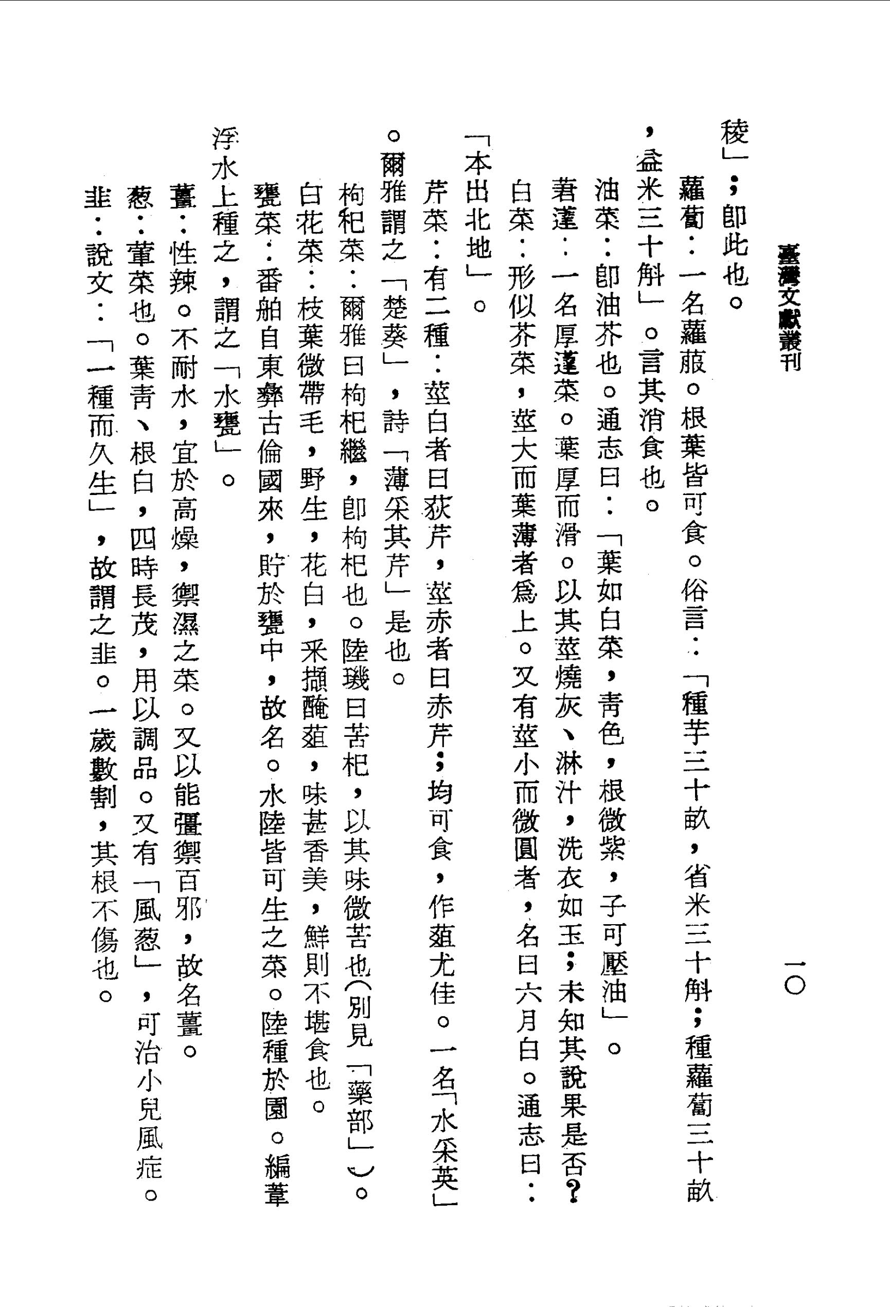 葱:葷菜也。葉青、根白,四時長茂,用以調品。又有「風葱」,可治小兒風症。