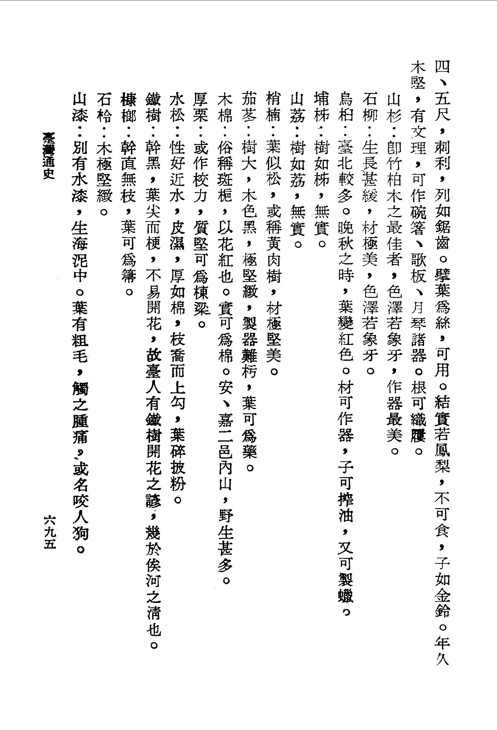 《臺灣通史》作者連橫,費十年時間(1908年至1918年),仿效司馬遷《史記》體例著成此書。書中記載605年(隋煬帝大業元年)至1895年清朝期間共1000多年的歷史。全書分為紀4、志24、傳60,共88篇,36卷,約有60萬字,另附表目101項。