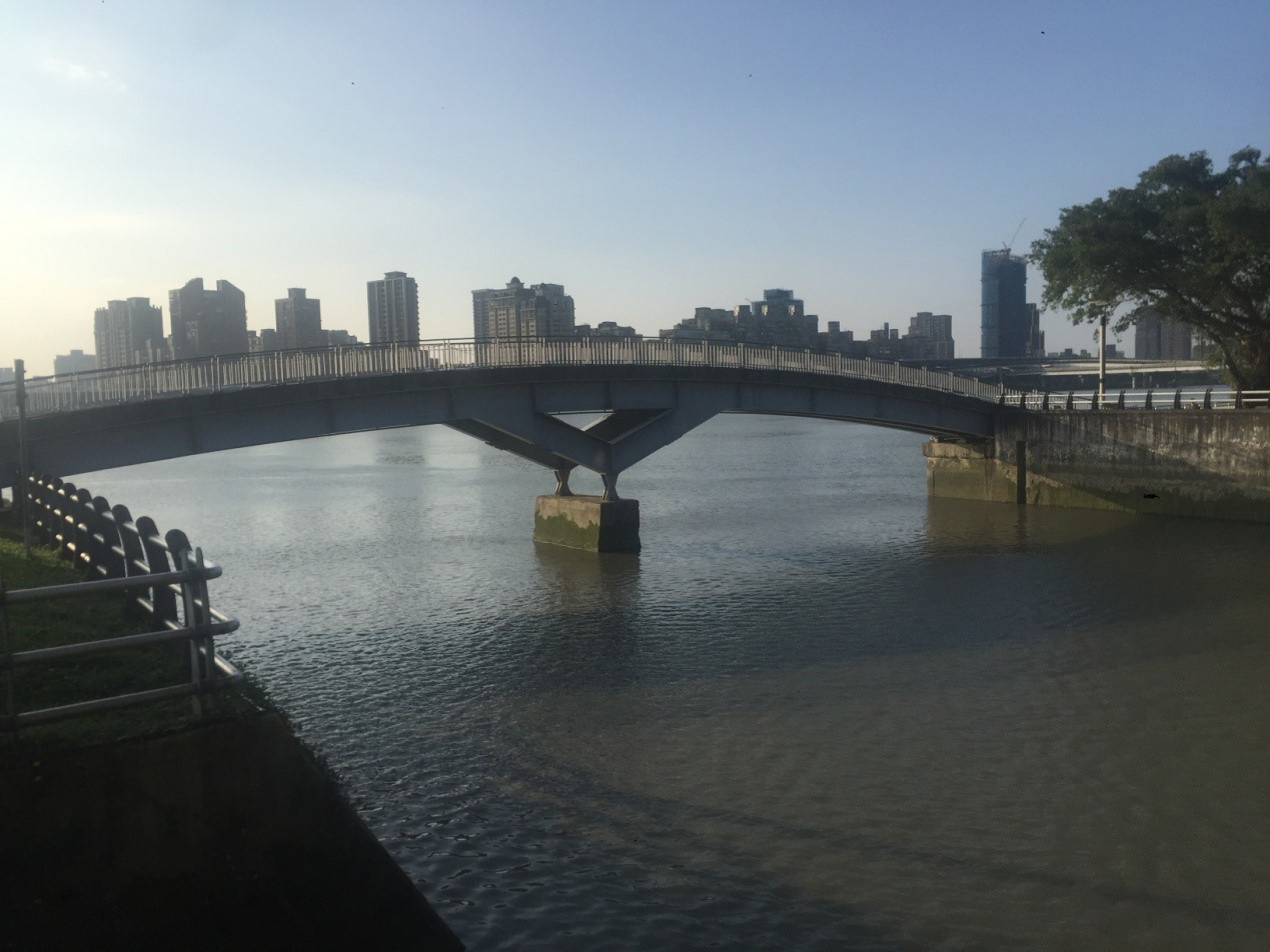 照片是大稻埕碼頭「六館抽水站」出水道流入淡水河之出口,應是當年河頭溝注入淡水河之匯流處。照片拍攝時間為2019(民國108)年10月1日,於大稻埕碼頭。匯流處建有無名鐵拱橋一座,橋型尚可。