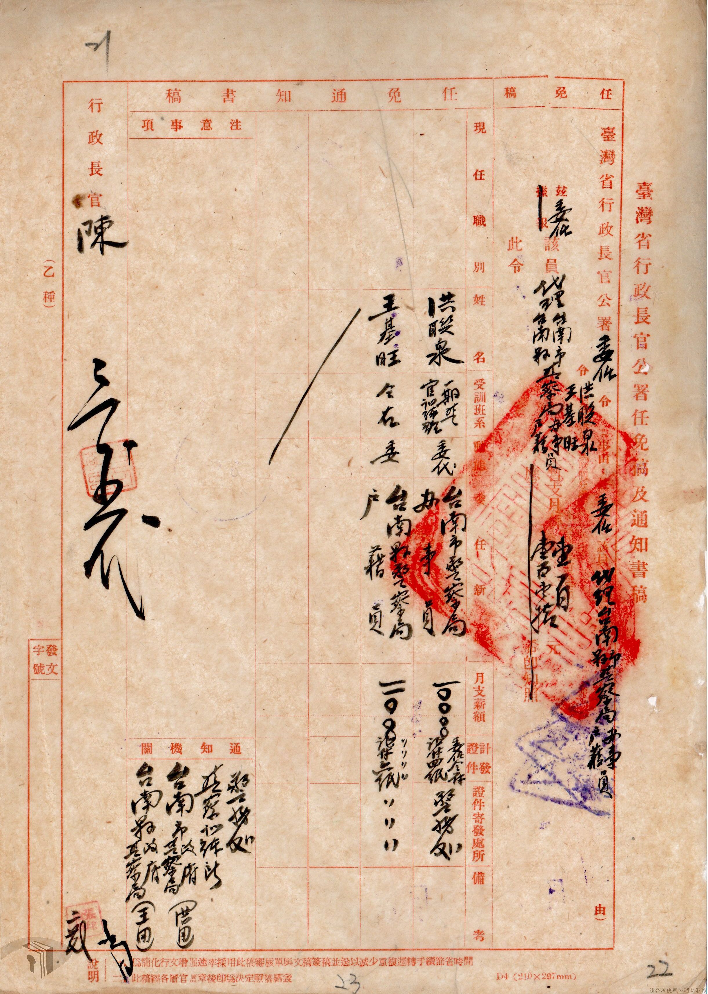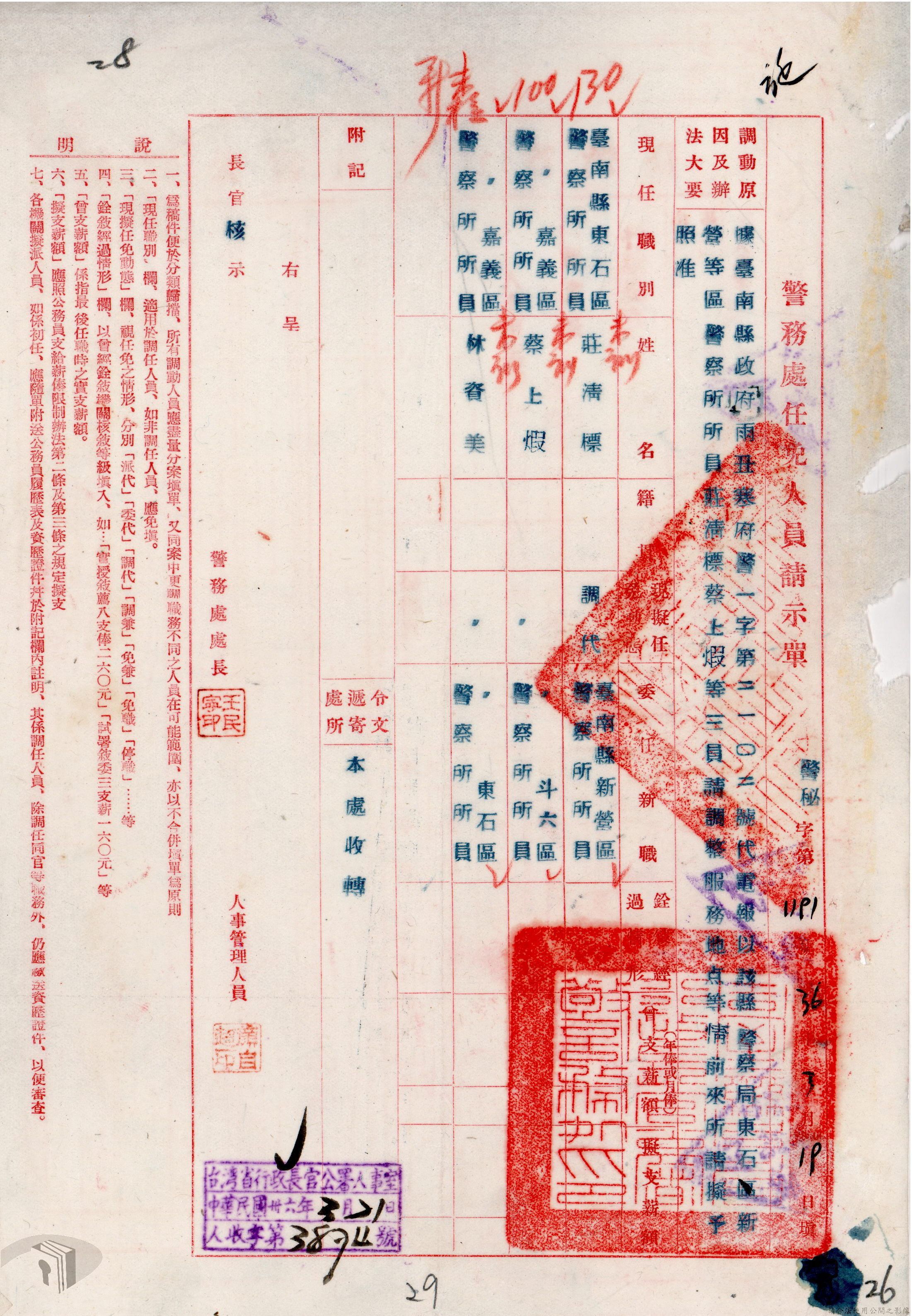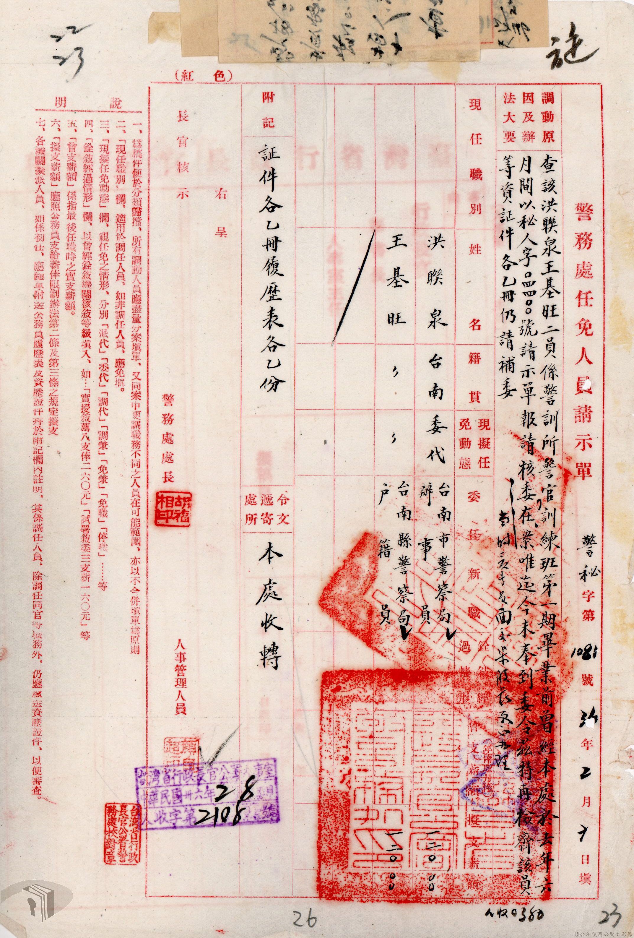 臺南縣市警察局人員任免(含228事件相關檔案)