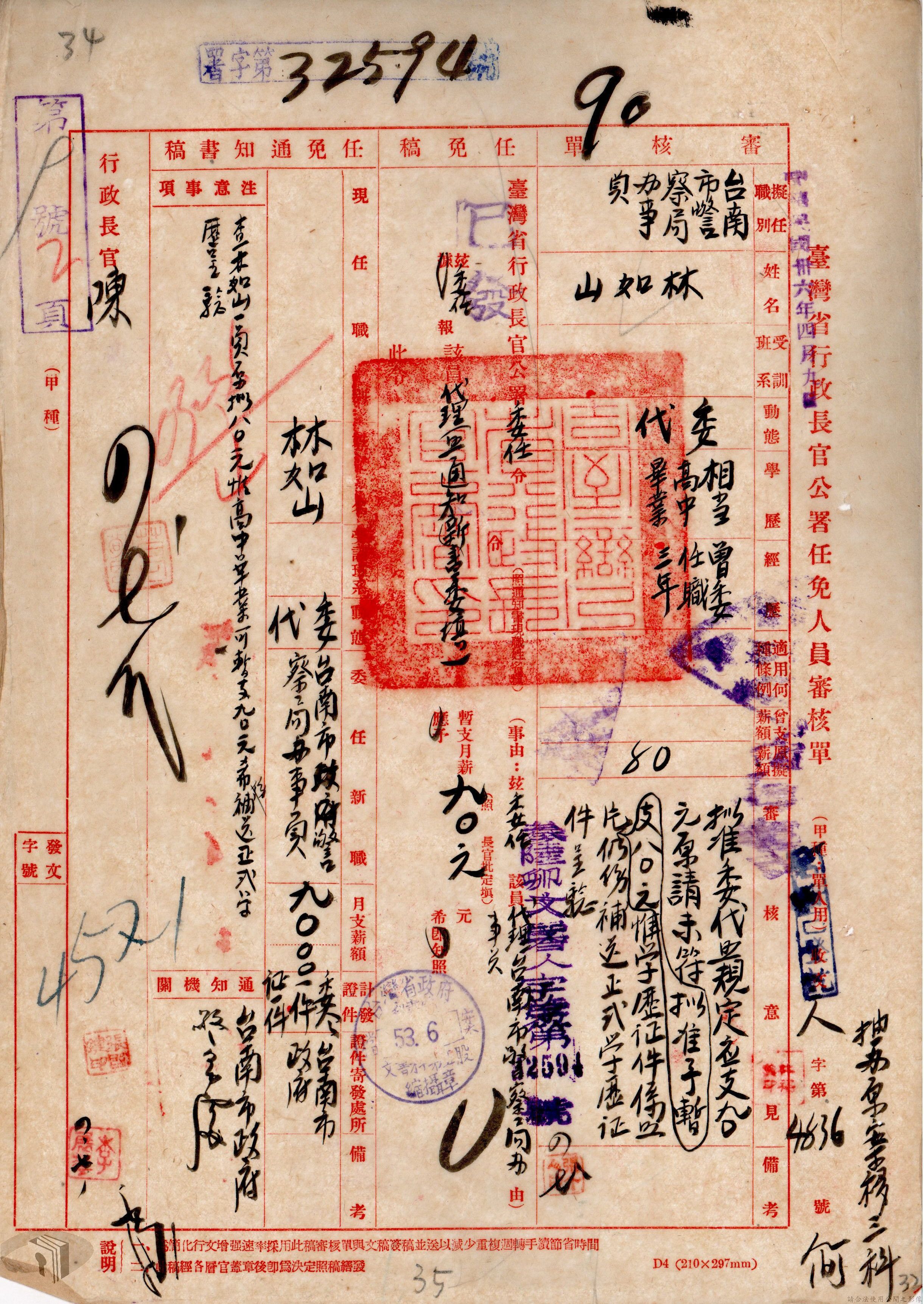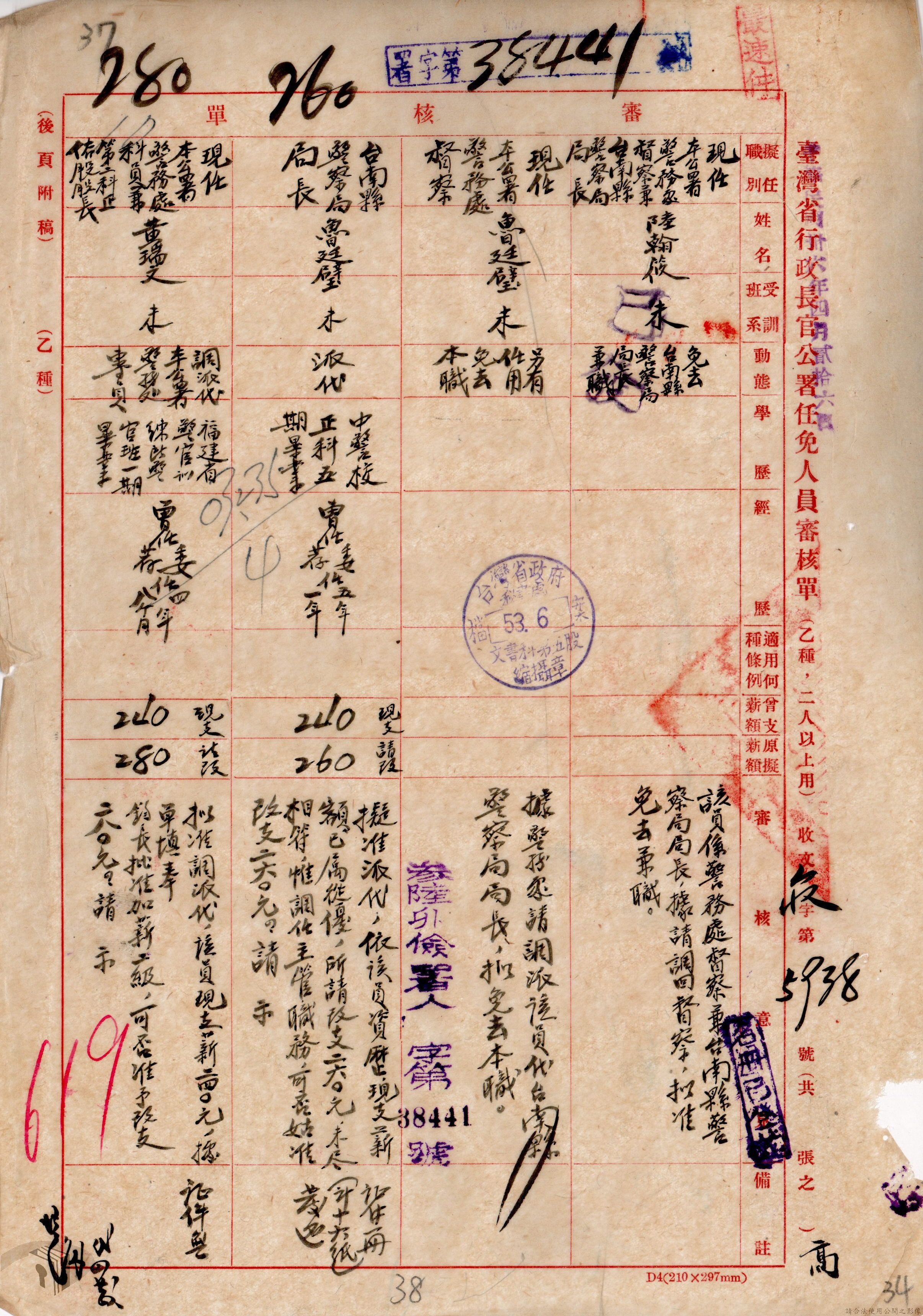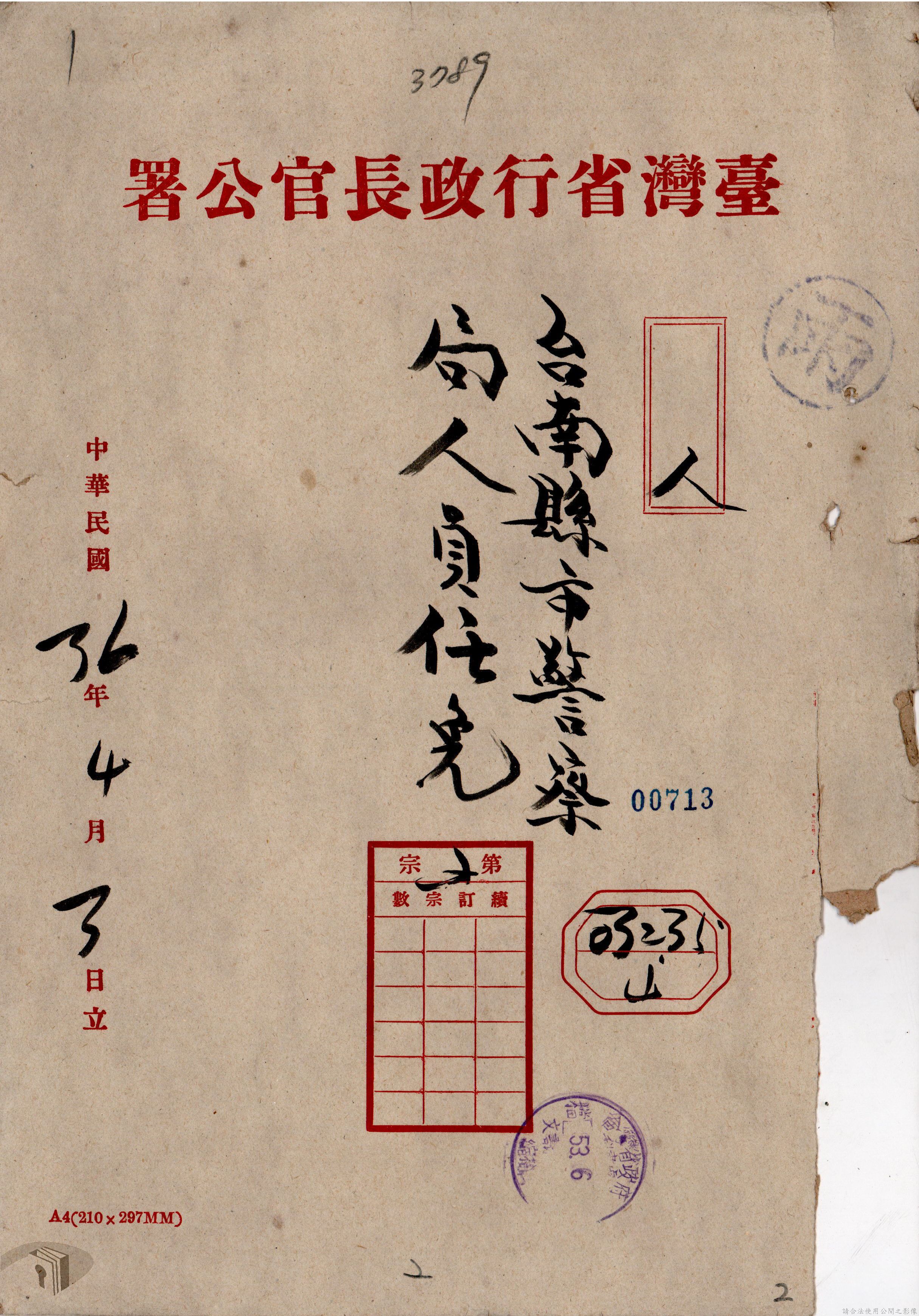 臺南縣市警察局人員任免(含228事件相關檔案)