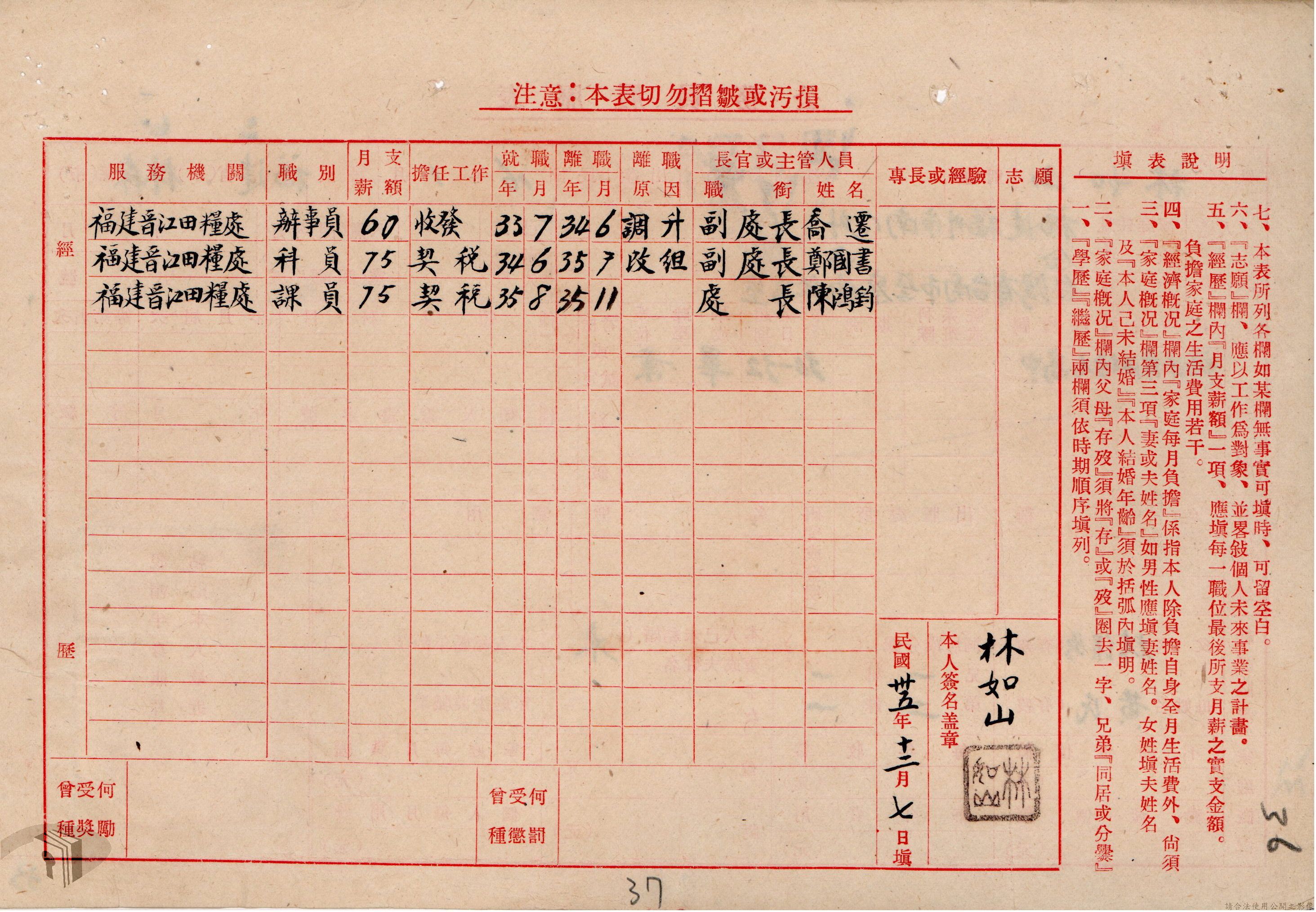 本案為36年間,臺南縣警察局與臺南市警察局為其職員任免、核薪等相關事項,函請臺灣省行政長官公署予以核示,並獲臺灣省行政長官公署之回覆結果,後臺灣省行政長官公署分別因臺南市警察局職員過失與臺南市警察局職員涉及民事案件,而予以降級和停職。另臺南市政府為多位警察局職員於二二八事變時涉案一事,函請臺灣省行政長官公署警務處與臺灣省行政長官公署核示,後臺灣省行政長官公署警務處與臺灣省行政長官公署決定將其撤職。附請示單、保結書、履歷表。