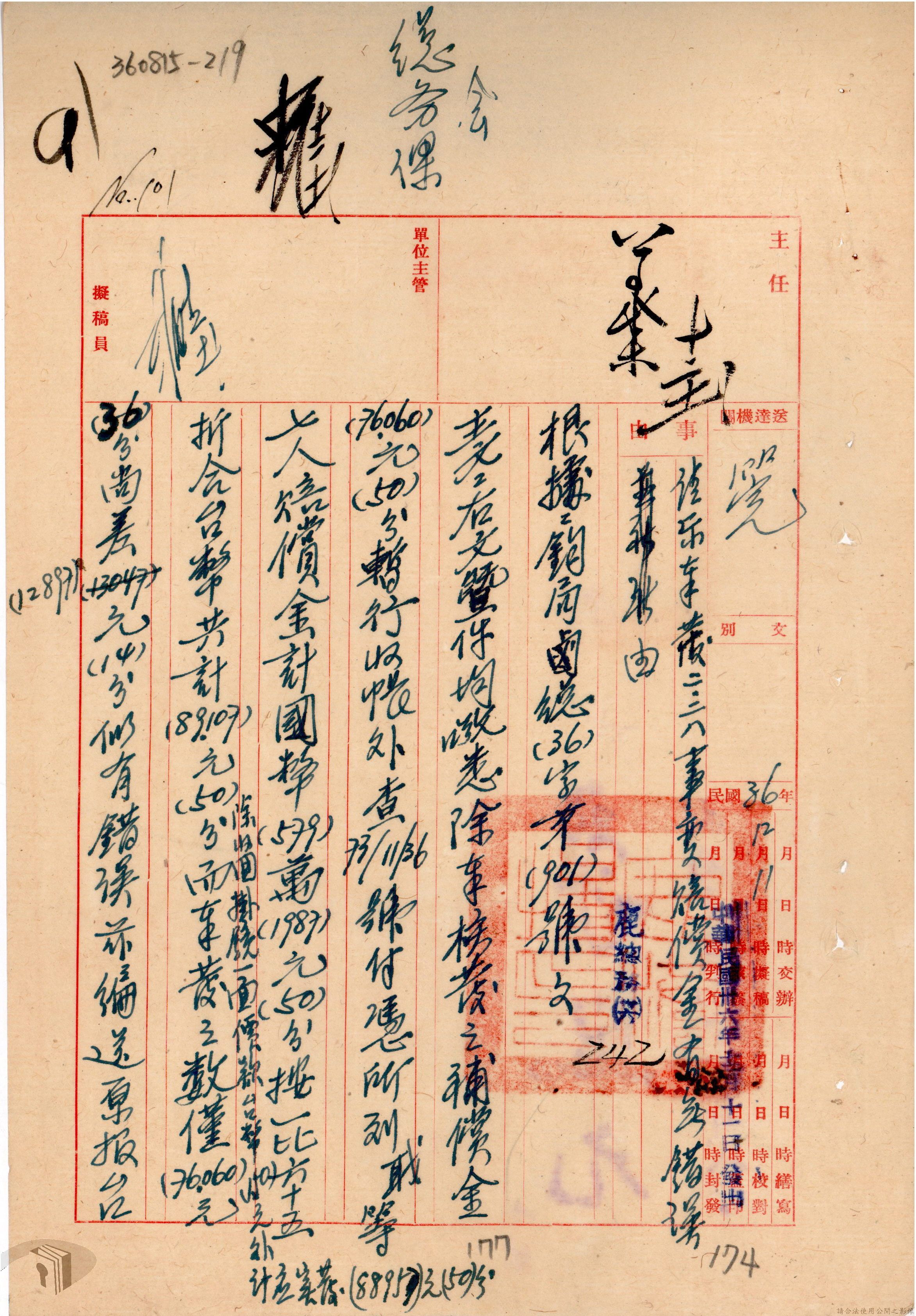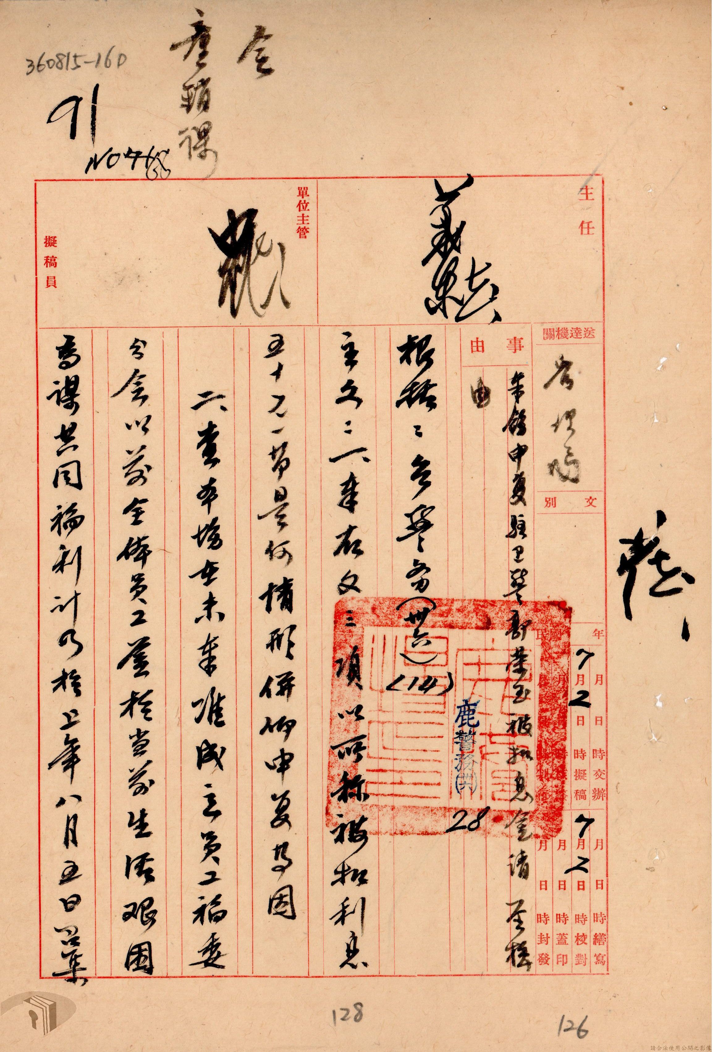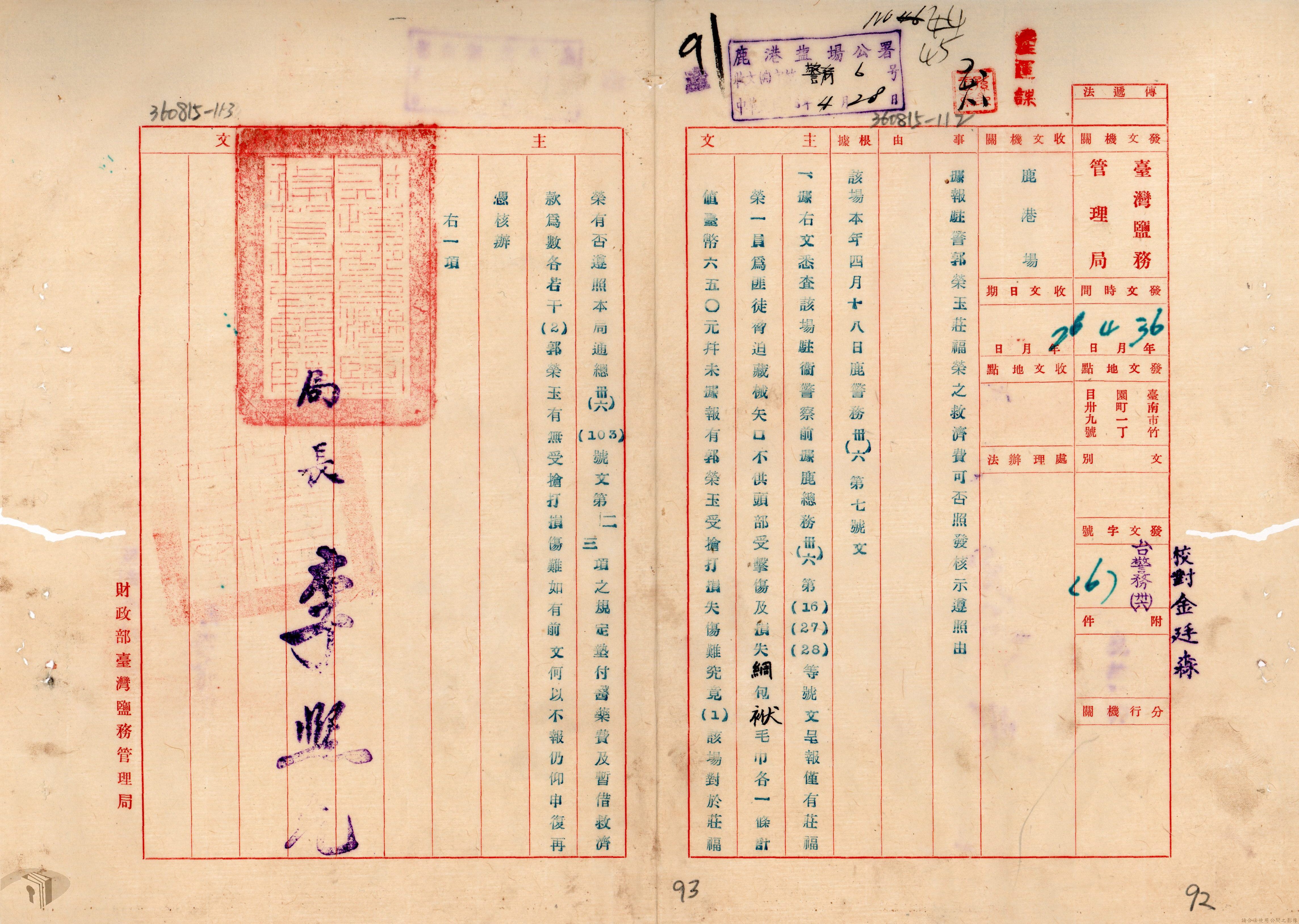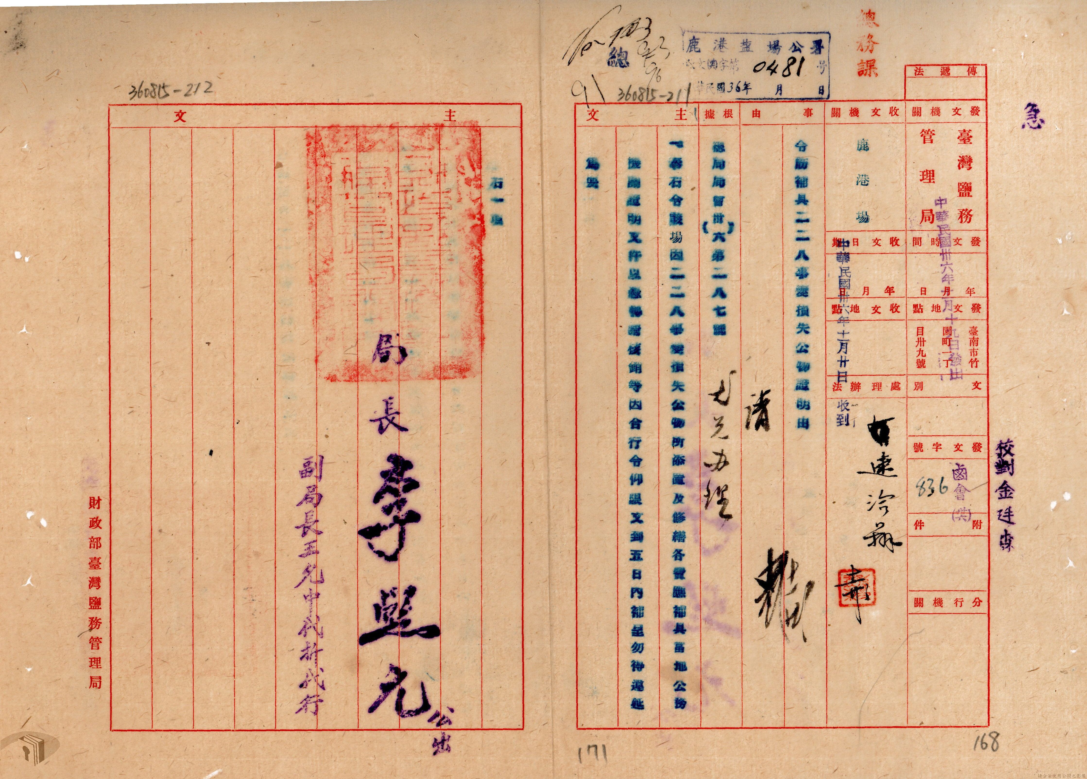 本案為36至38年間,鹿港鹽場公署為了職員於二二八事件時守護倉庫與公物等事項,函請財政部臺灣鹽務管理局准予給予員工獎勵,後獲該局核准。鹿港鹽場公署亦向該局報告因事變影響而造成的公私損失,該局函復請檢送損失證明書修繕費單據,並訂定損失救濟辦法,後該署核發救濟費予受損職員。
