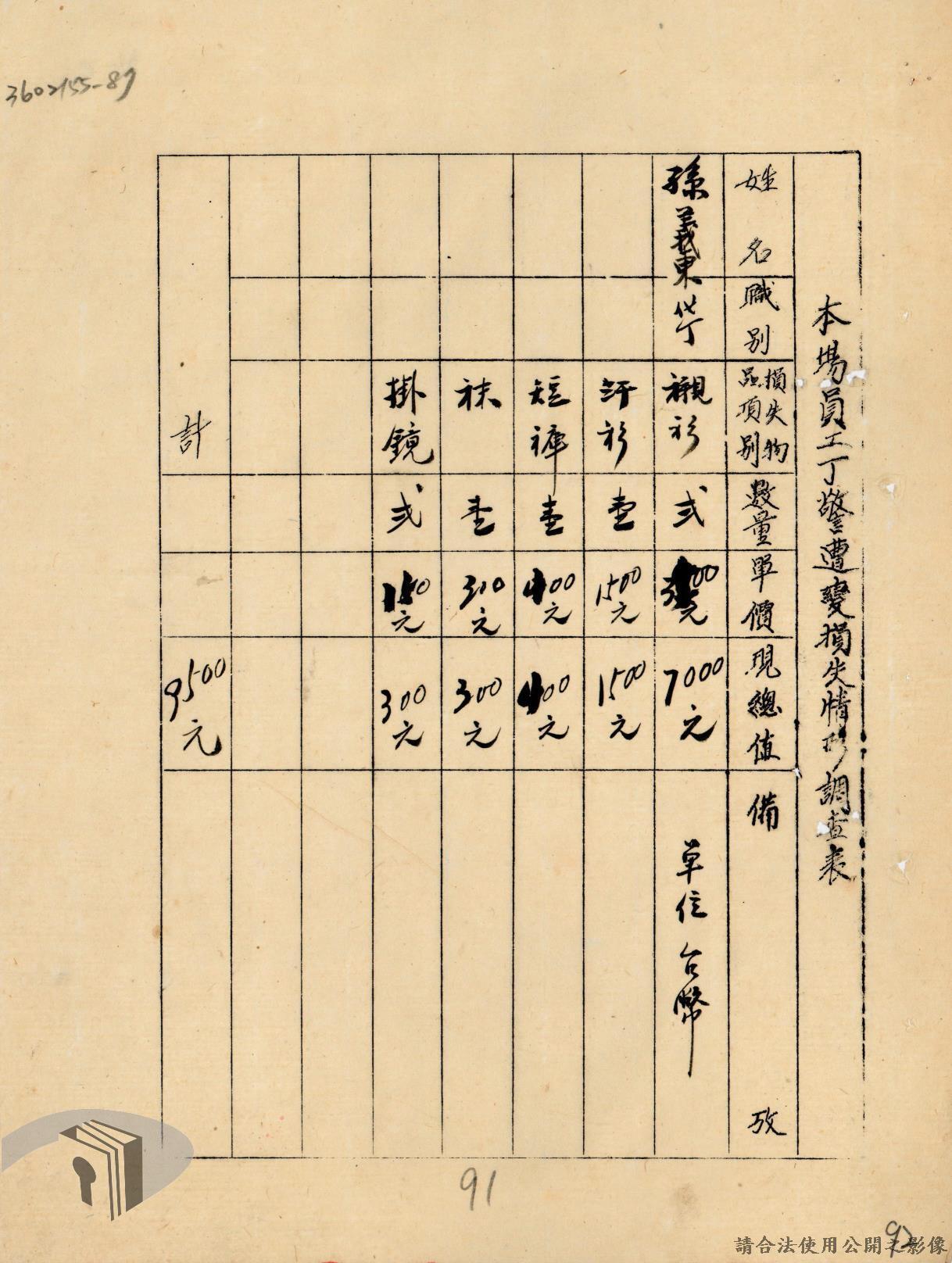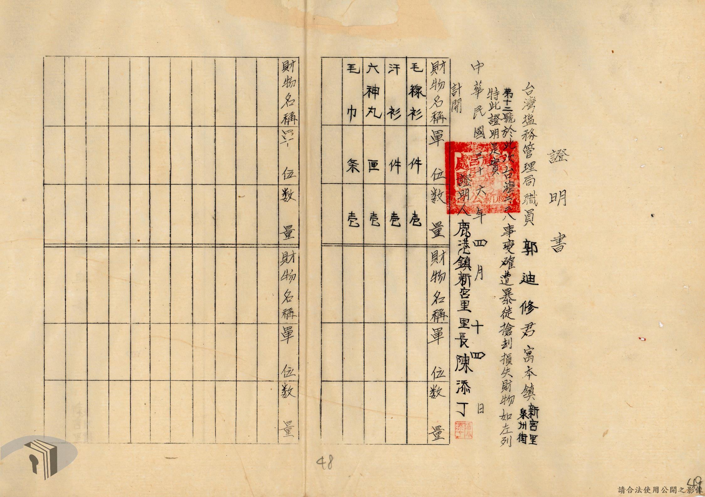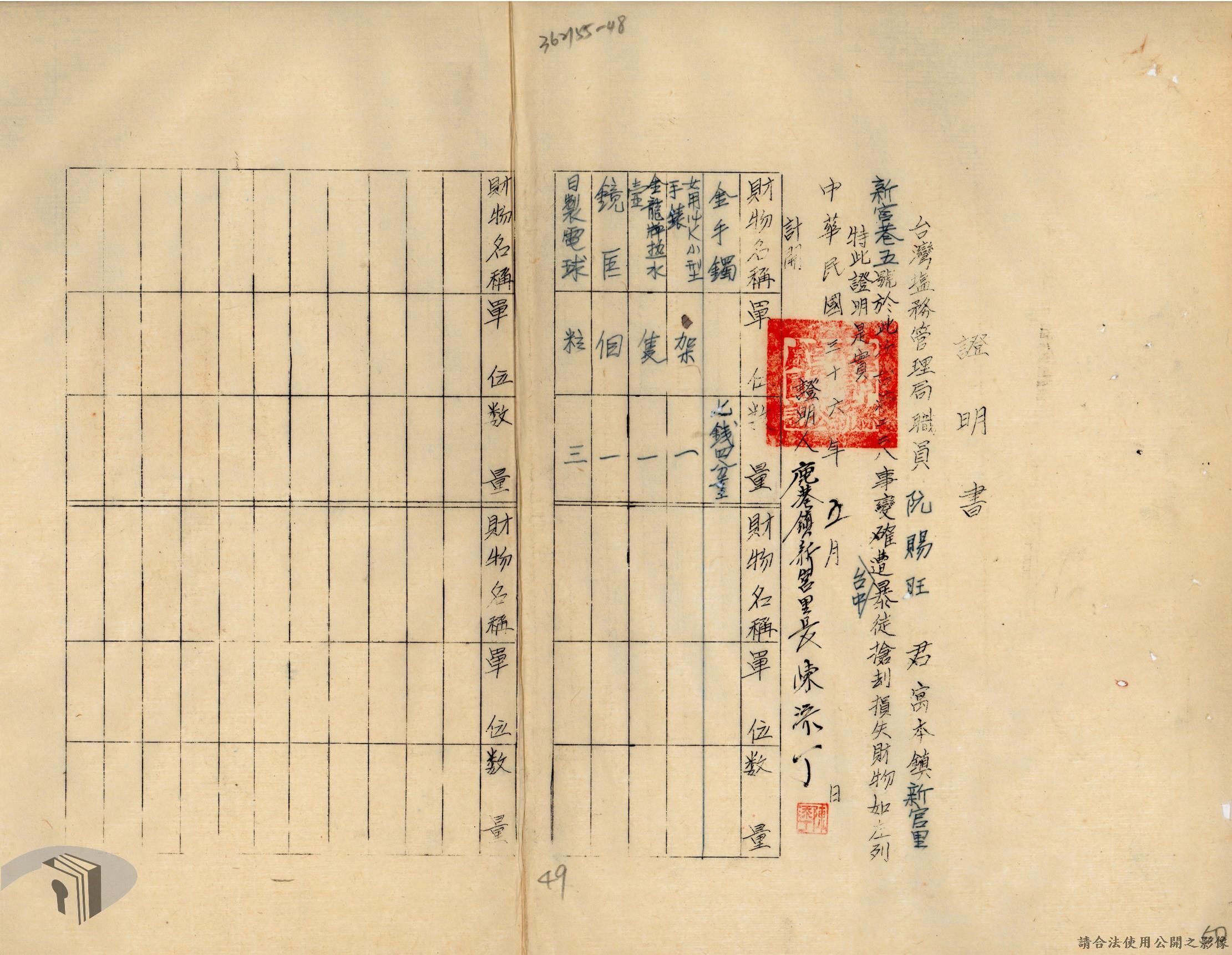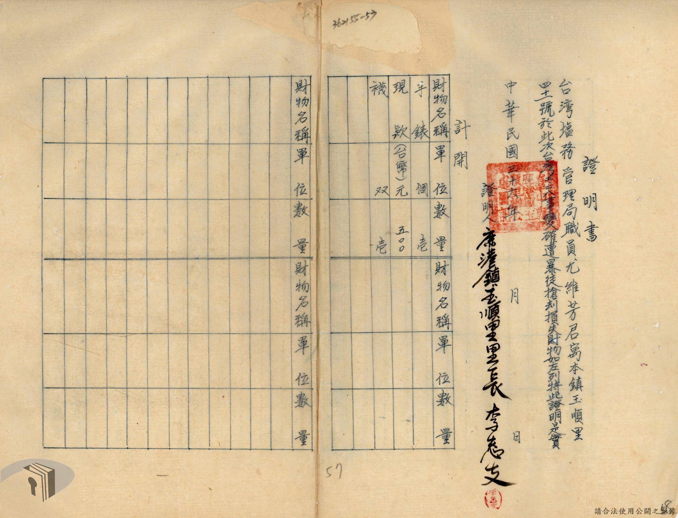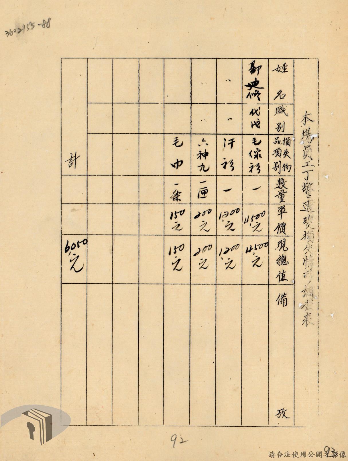 本案為36至37年間,財政部臺灣鹽務管理局函請鹿港鹽場公署報告公私損失情形予該局,該署函送員工損失清單,並函請該局給予救濟金,後臺灣鹽務管理局函請該公署發還該局墊付費用。附證明書。