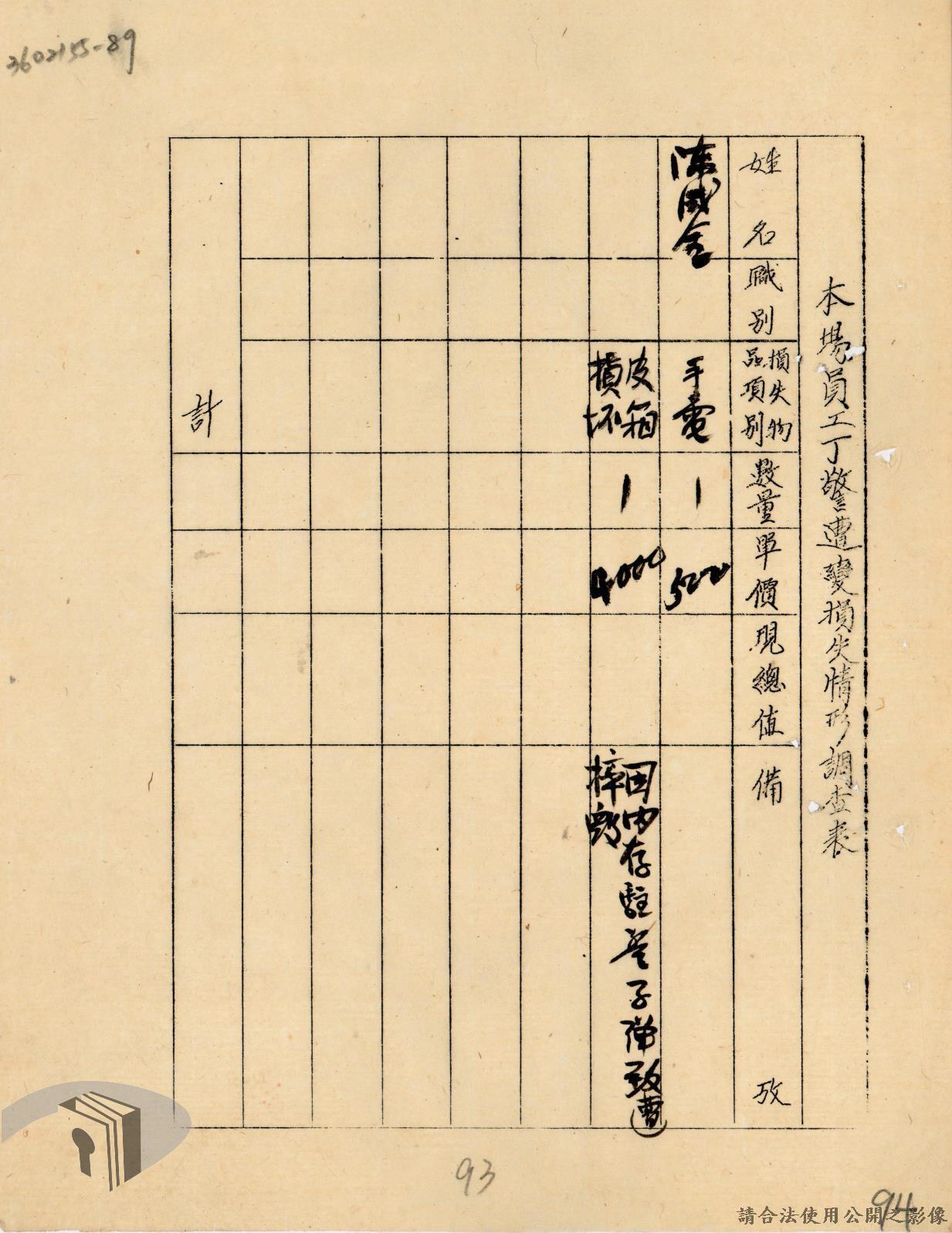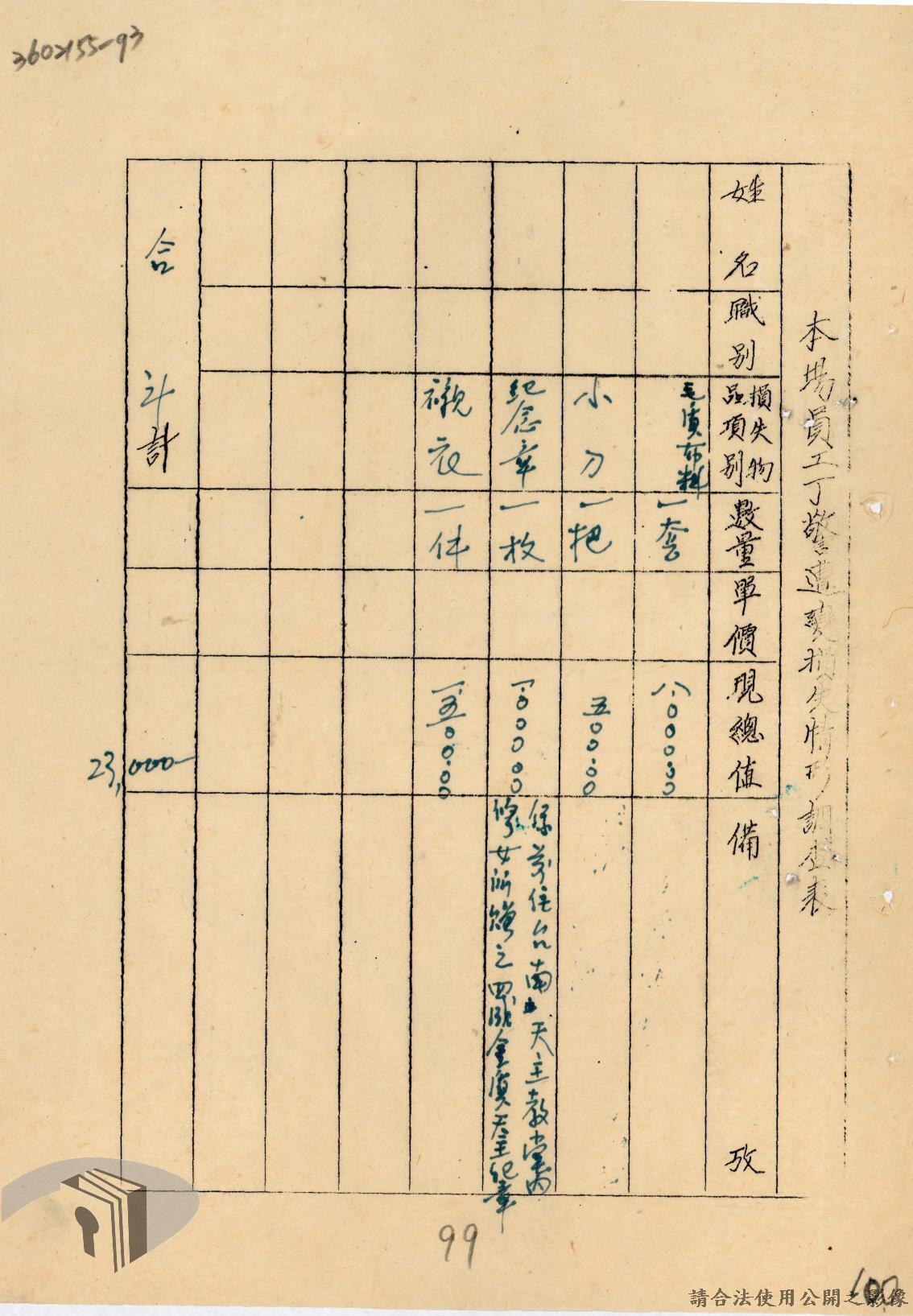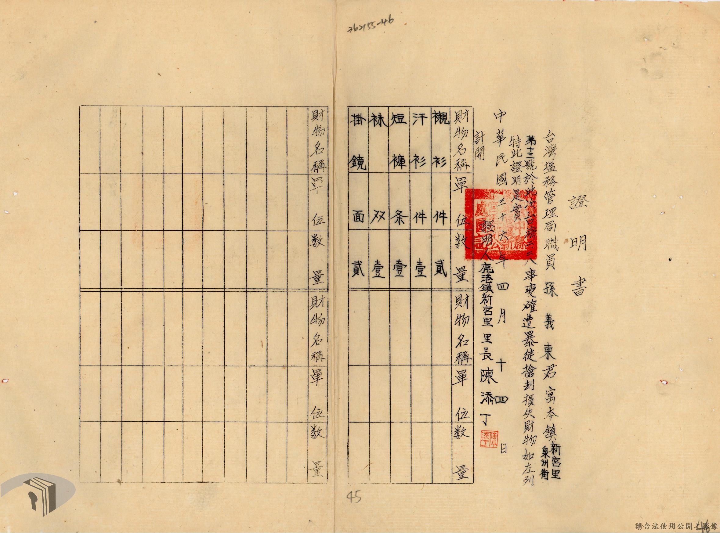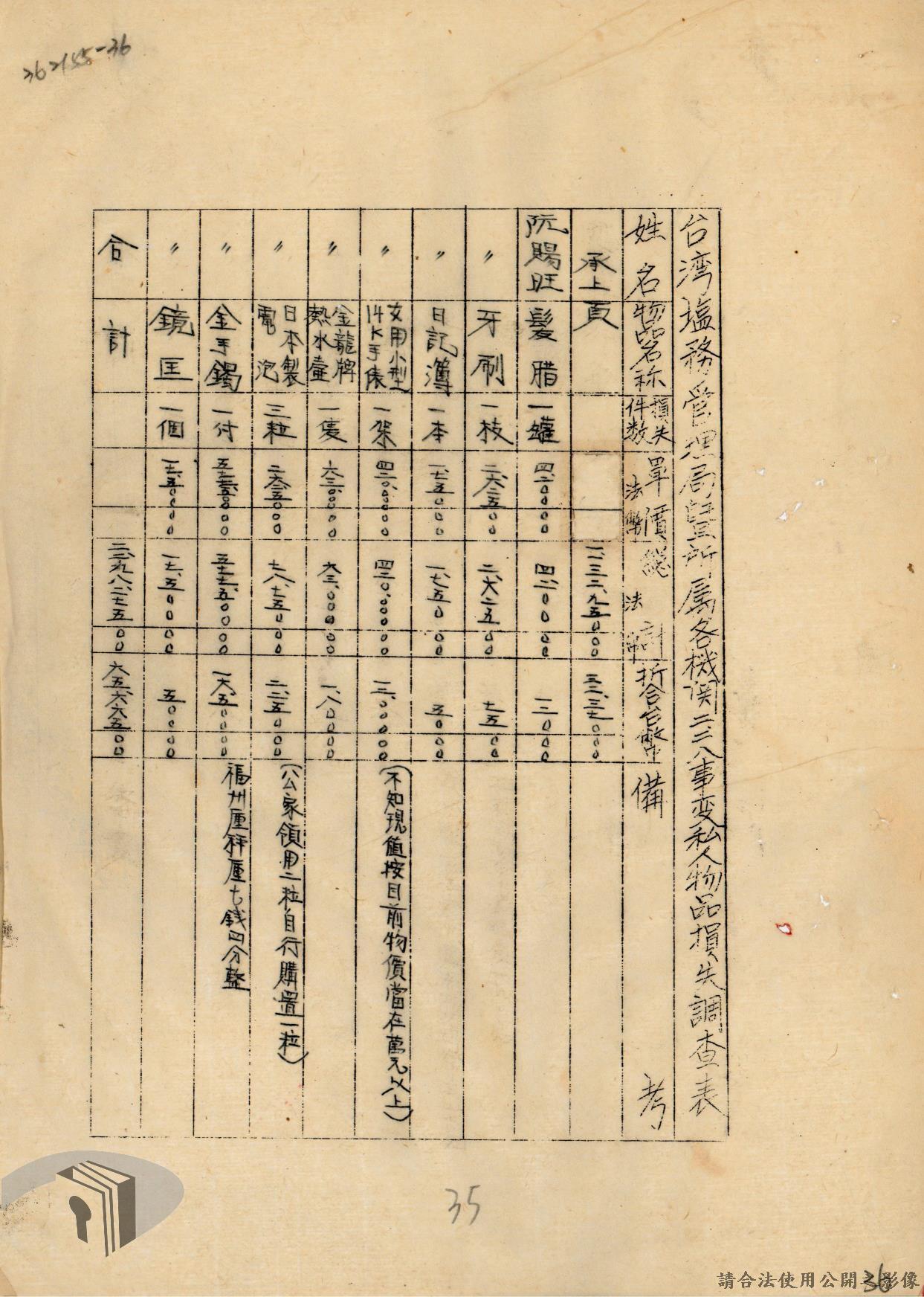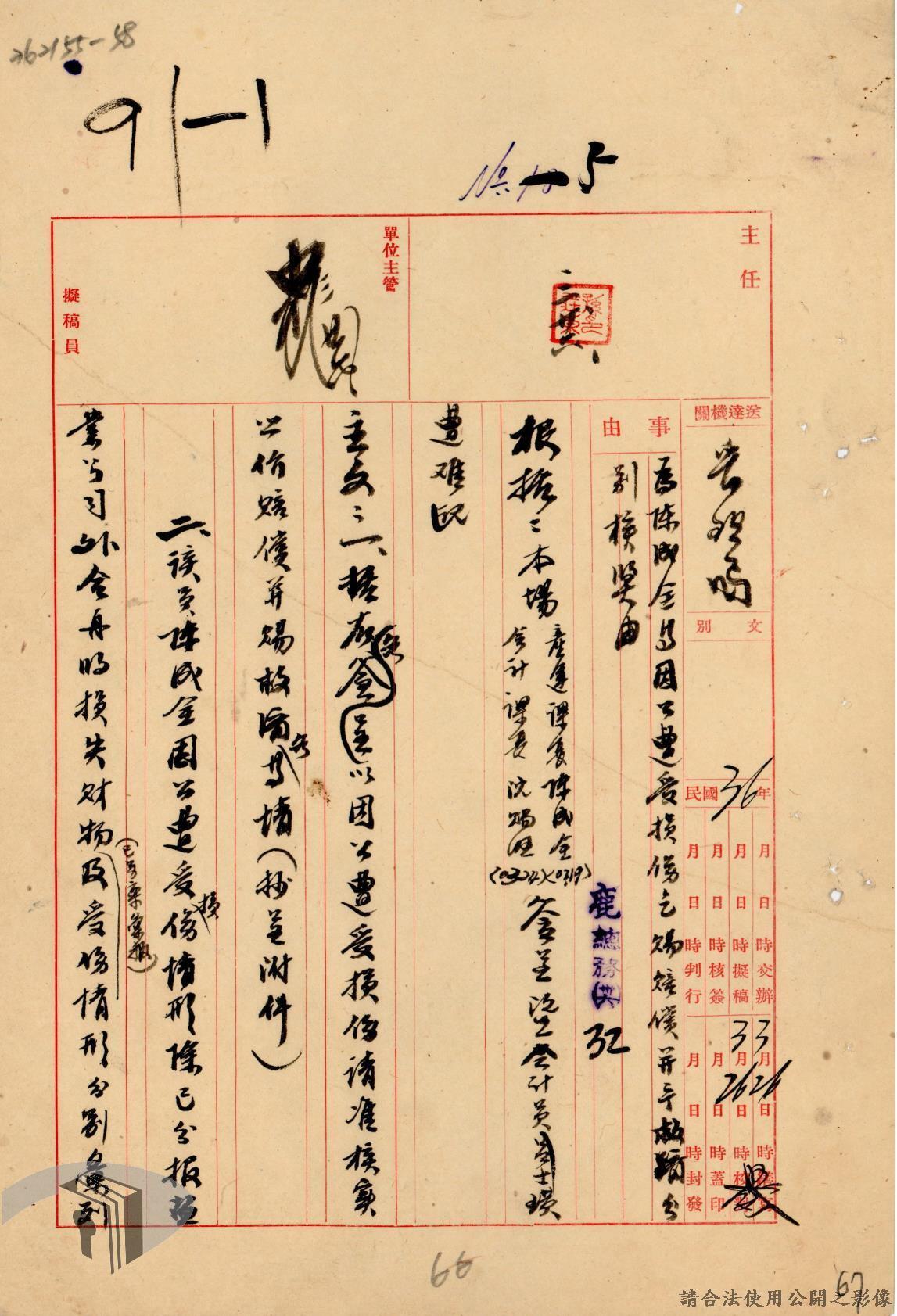 本案為36至37年間,財政部臺灣鹽務管理局函請鹿港鹽場公署報告公私損失情形予該局,該署函送員工損失清單,並函請該局給予救濟金,後臺灣鹽務管理局函請該公署發還該局墊付費用。附證明書。