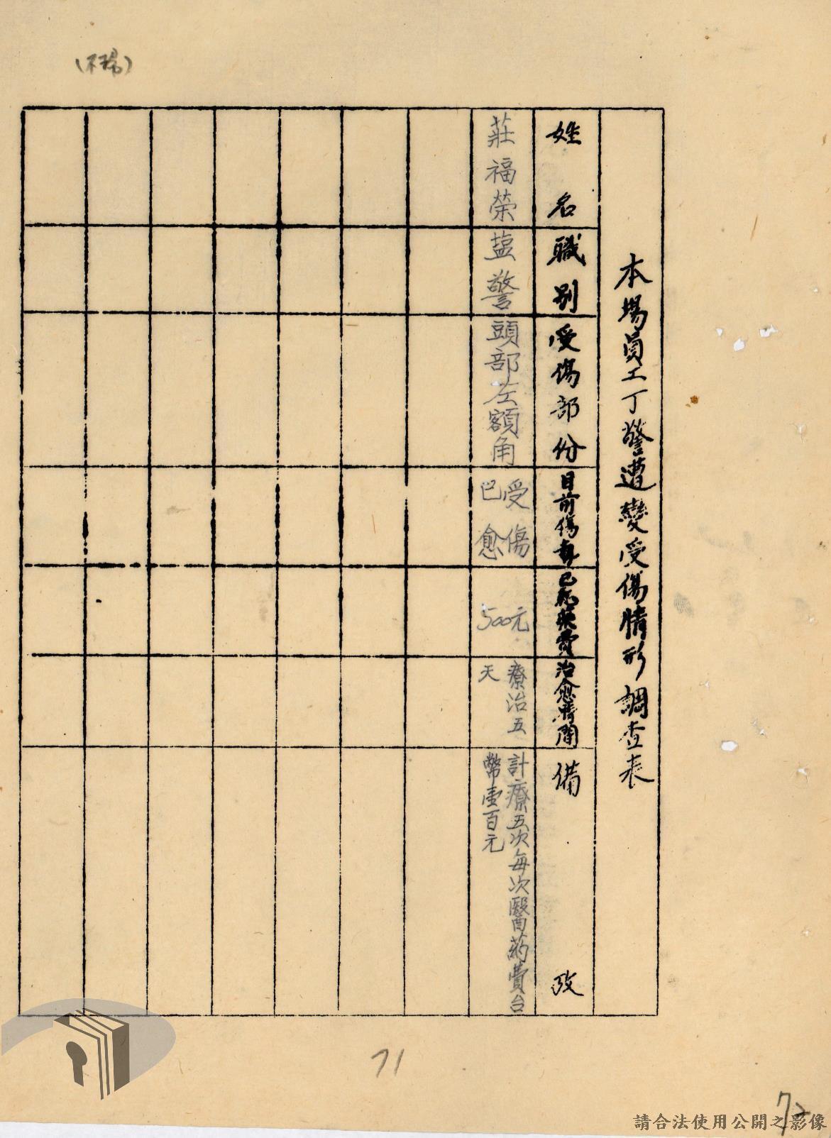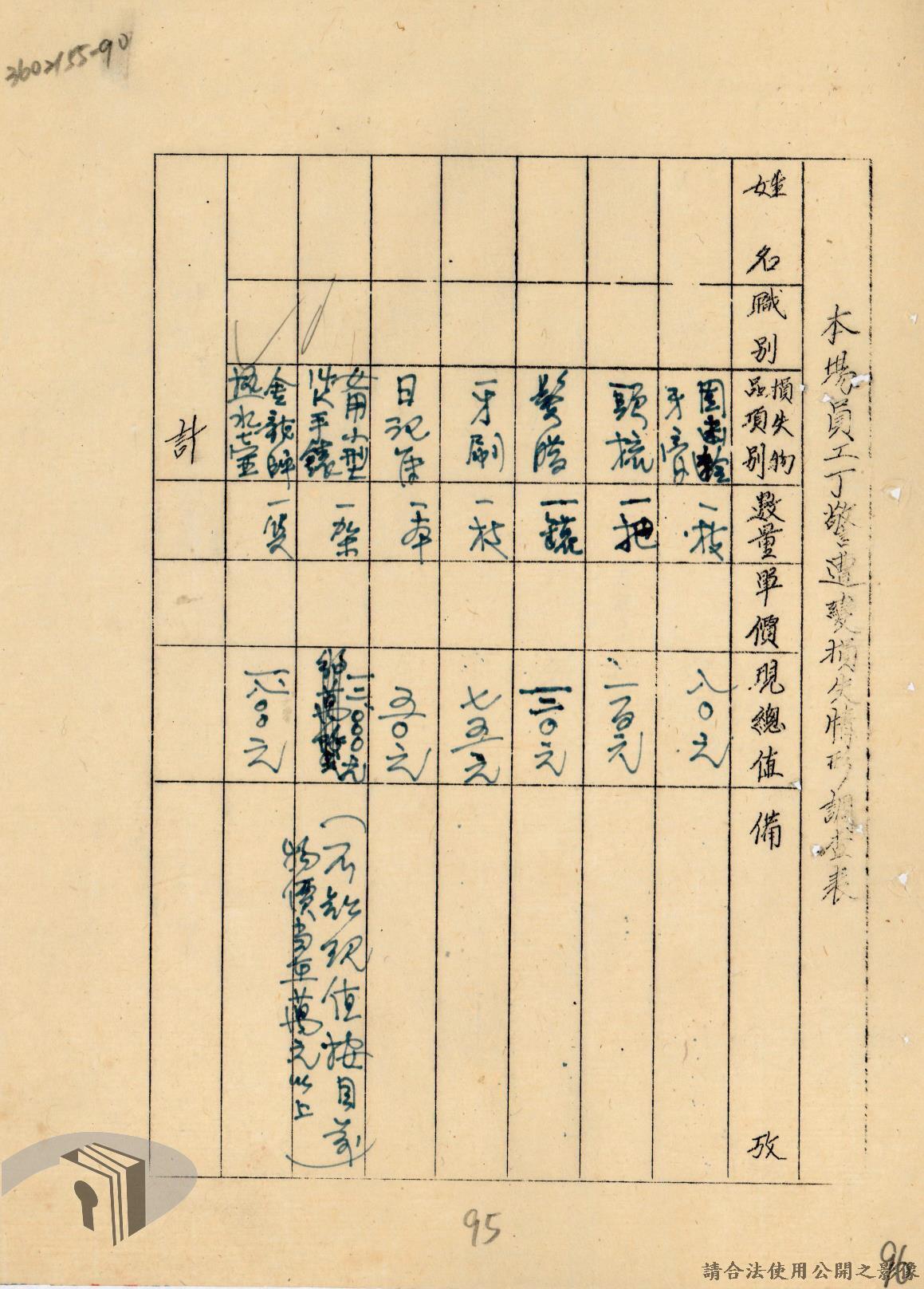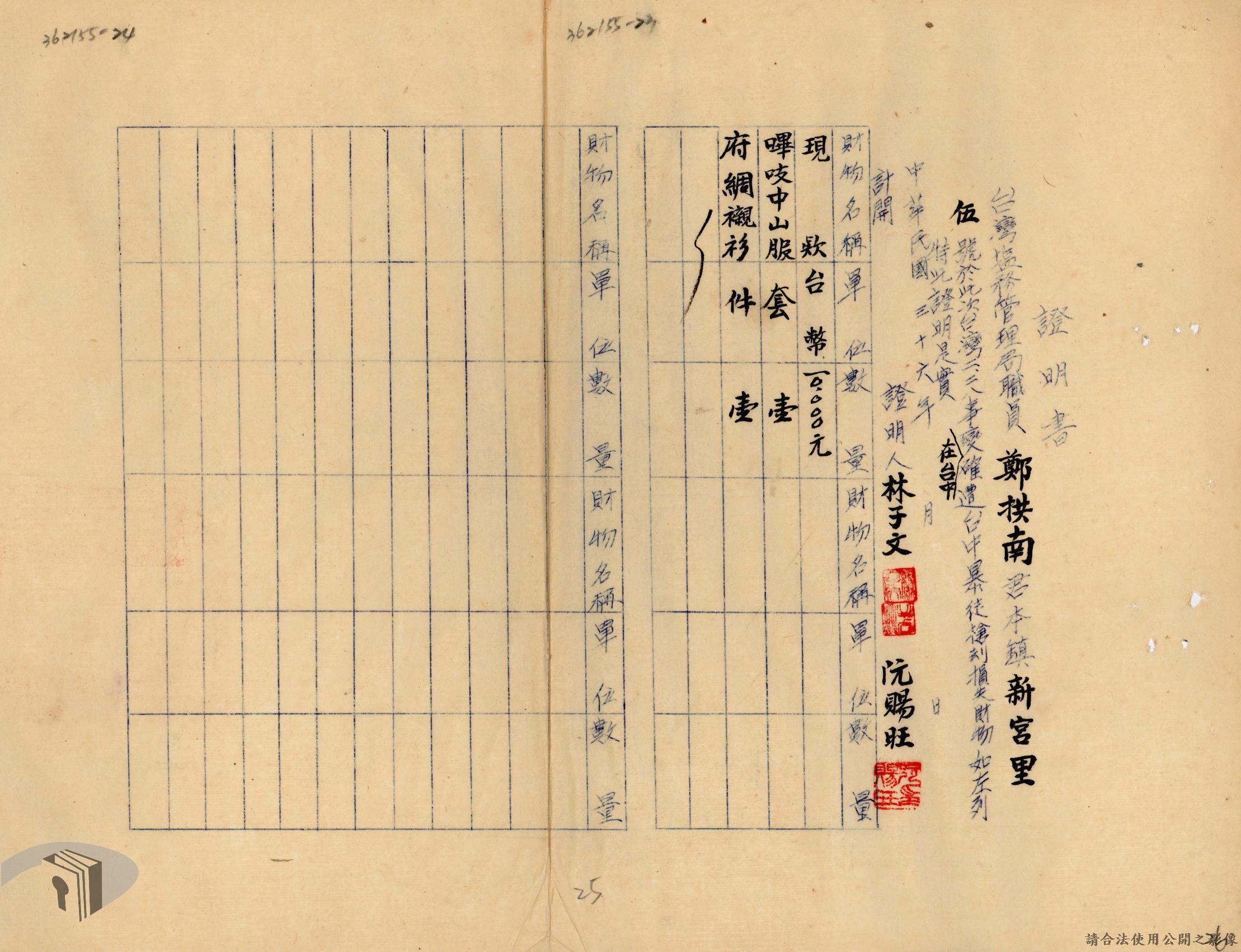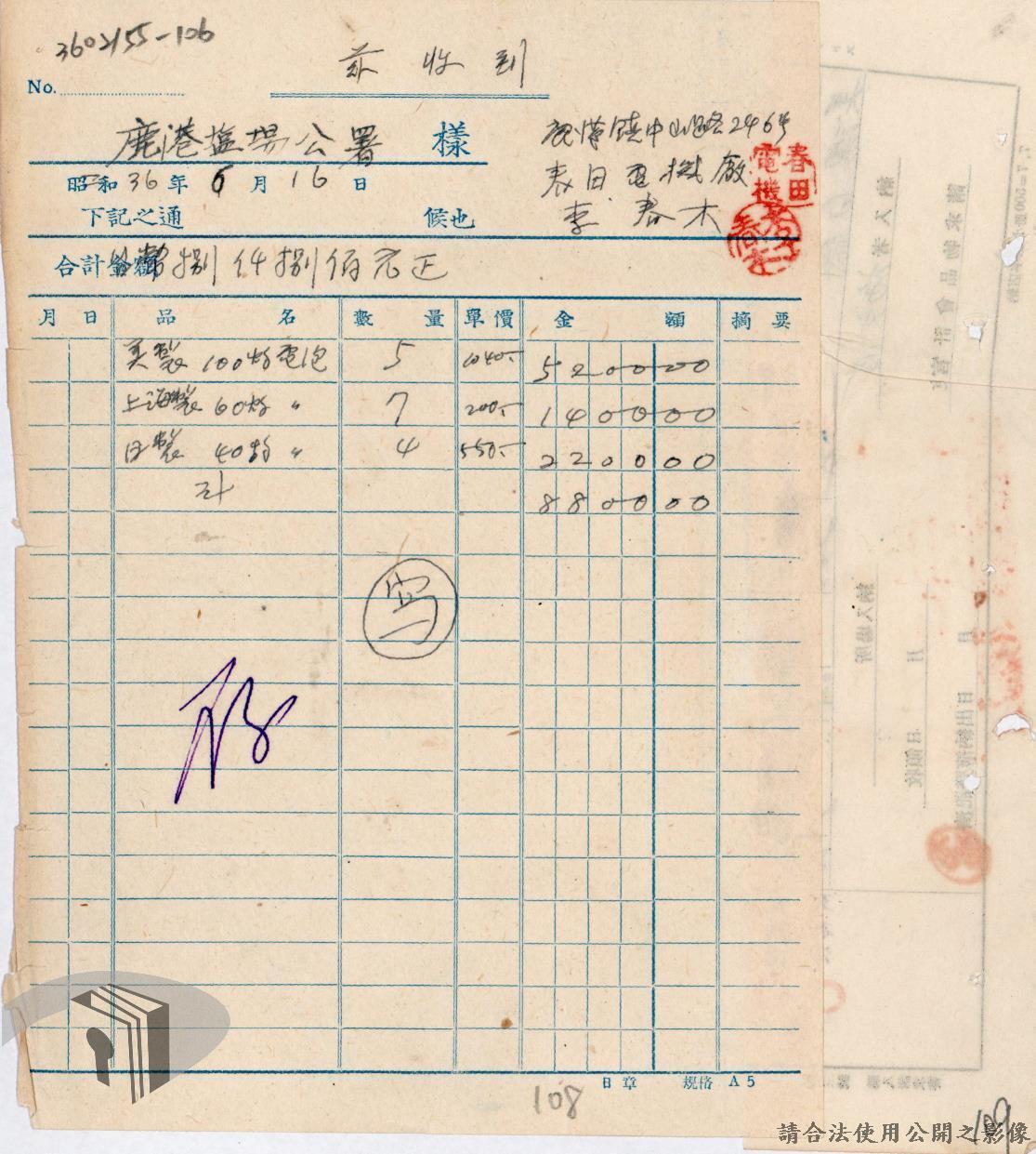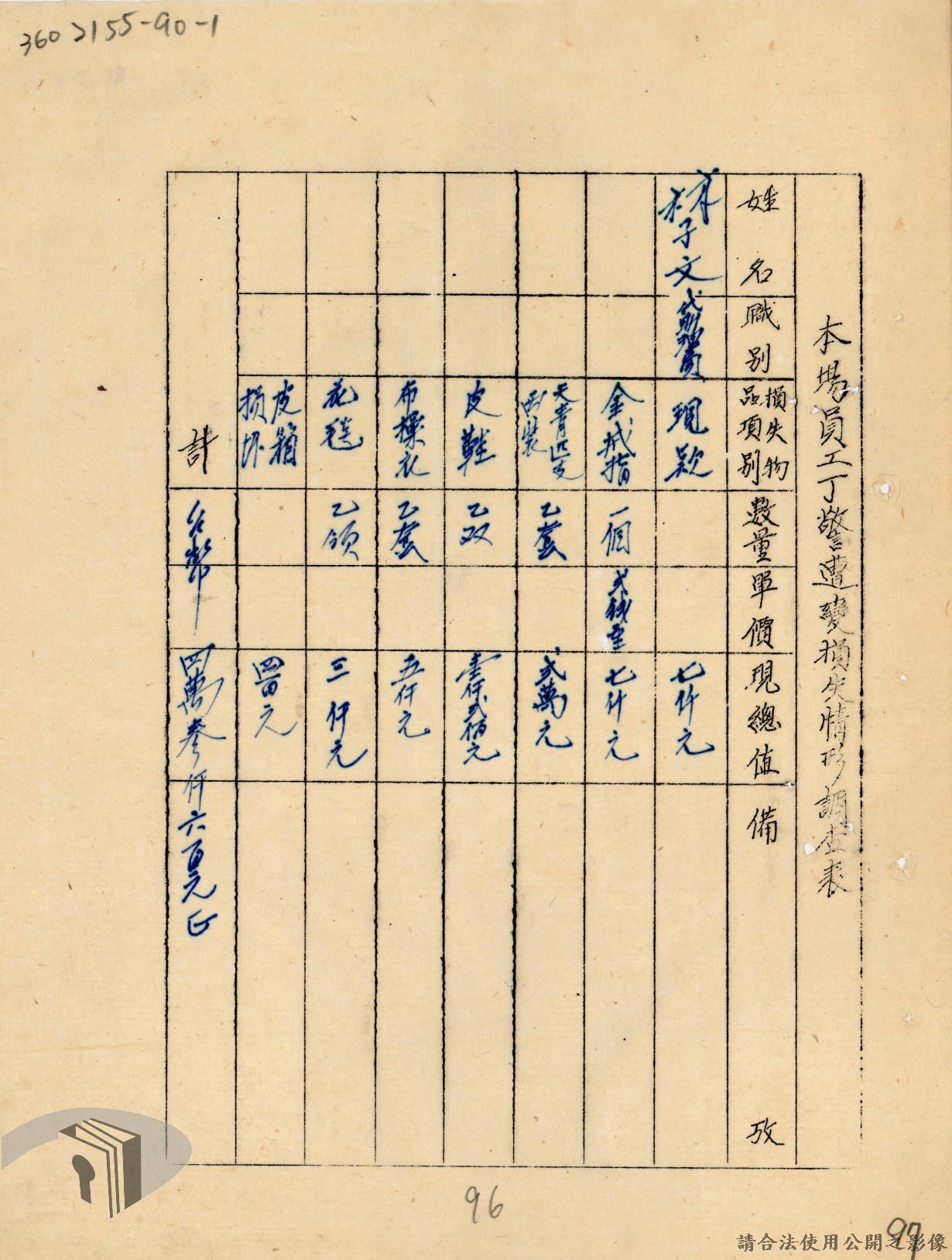 本案為36至37年間,財政部臺灣鹽務管理局函請鹿港鹽場公署報告公私損失情形予該局,該署函送員工損失清單,並函請該局給予救濟金,後臺灣鹽務管理局函請該公署發還該局墊付費用。附證明書。