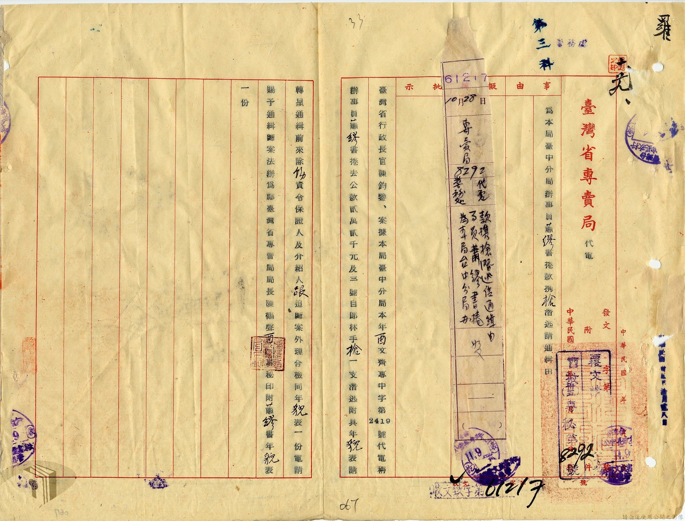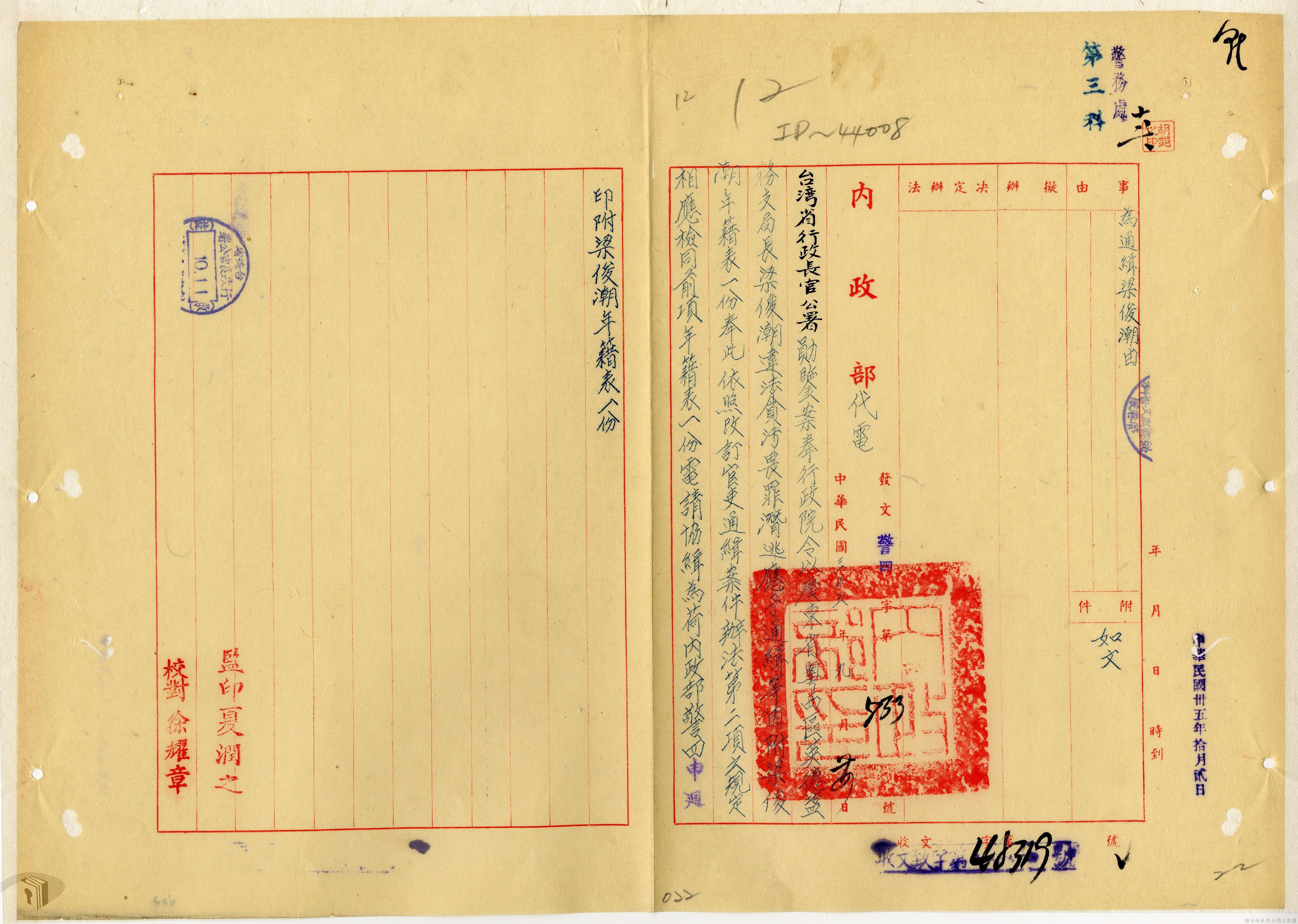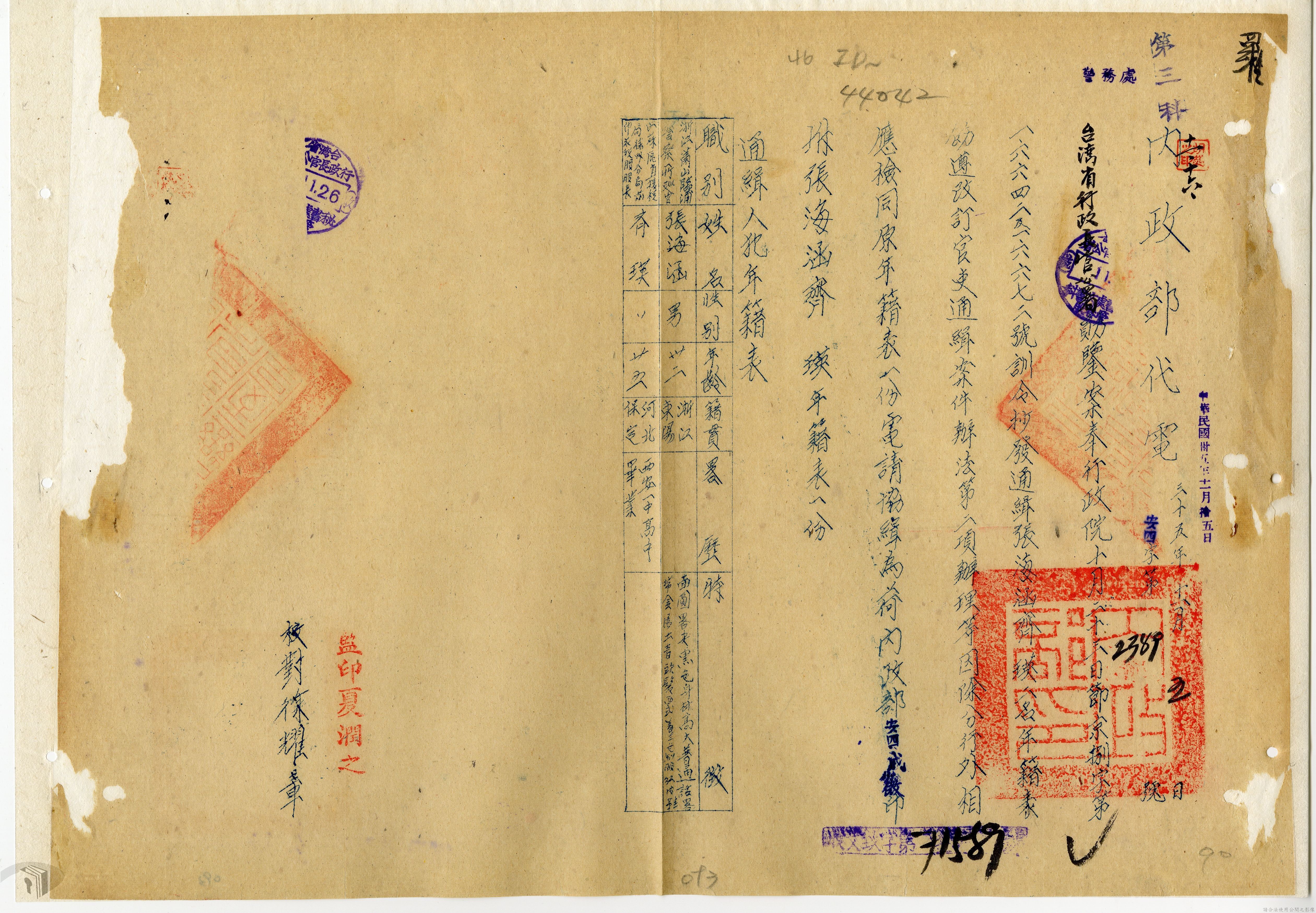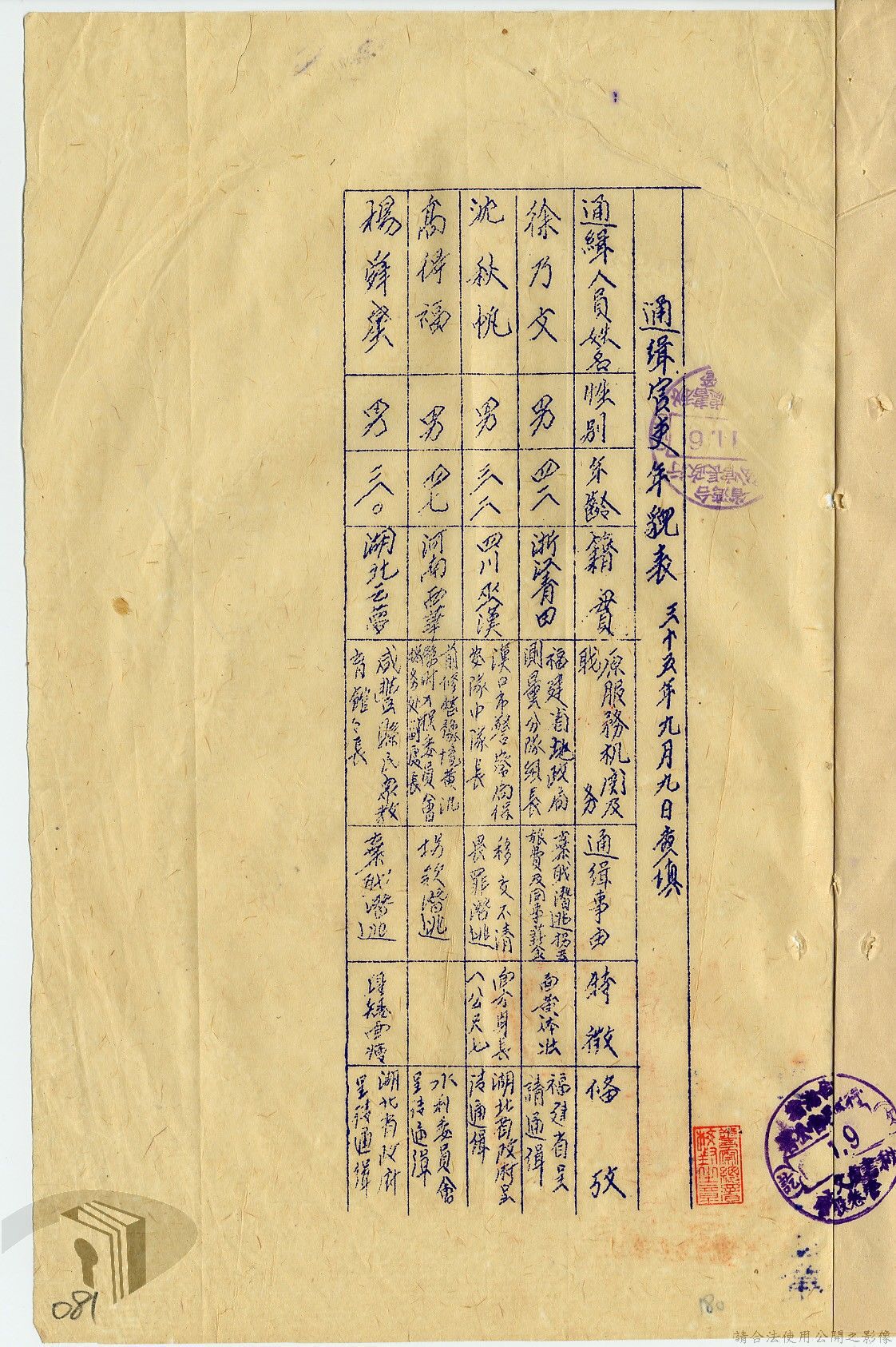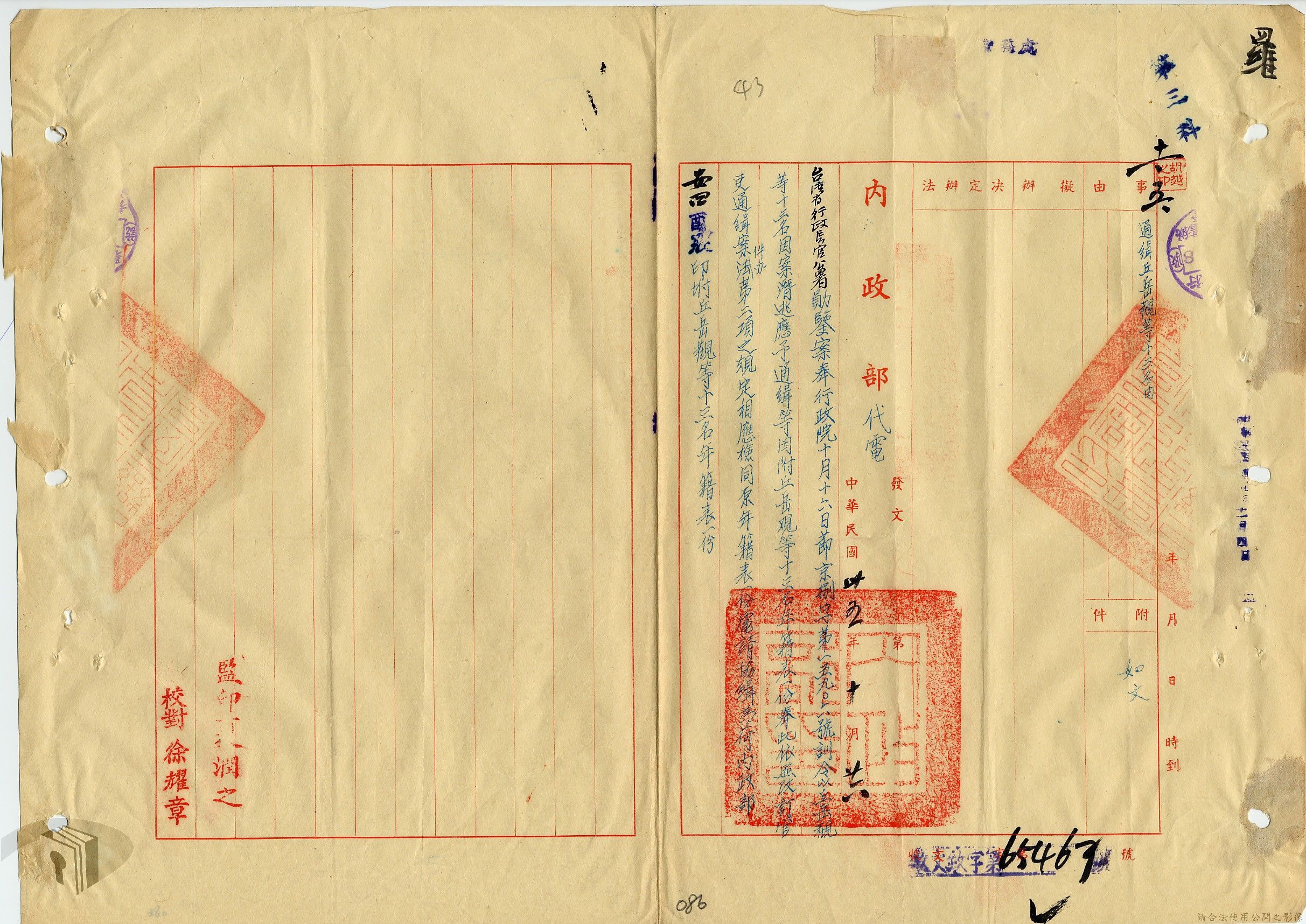 本案為35年間,內政部依照行政院令發有關各省潛逃官員之通緝逃犯資料給臺灣省行政長官公署警務處,內容包括江西省龍南縣長、湖北應山縣長瀆職殺人,恩施站長私運銅礦等案,後行政長官公署警務處發電報請各縣市政府將逃亡官員緝捕歸案。