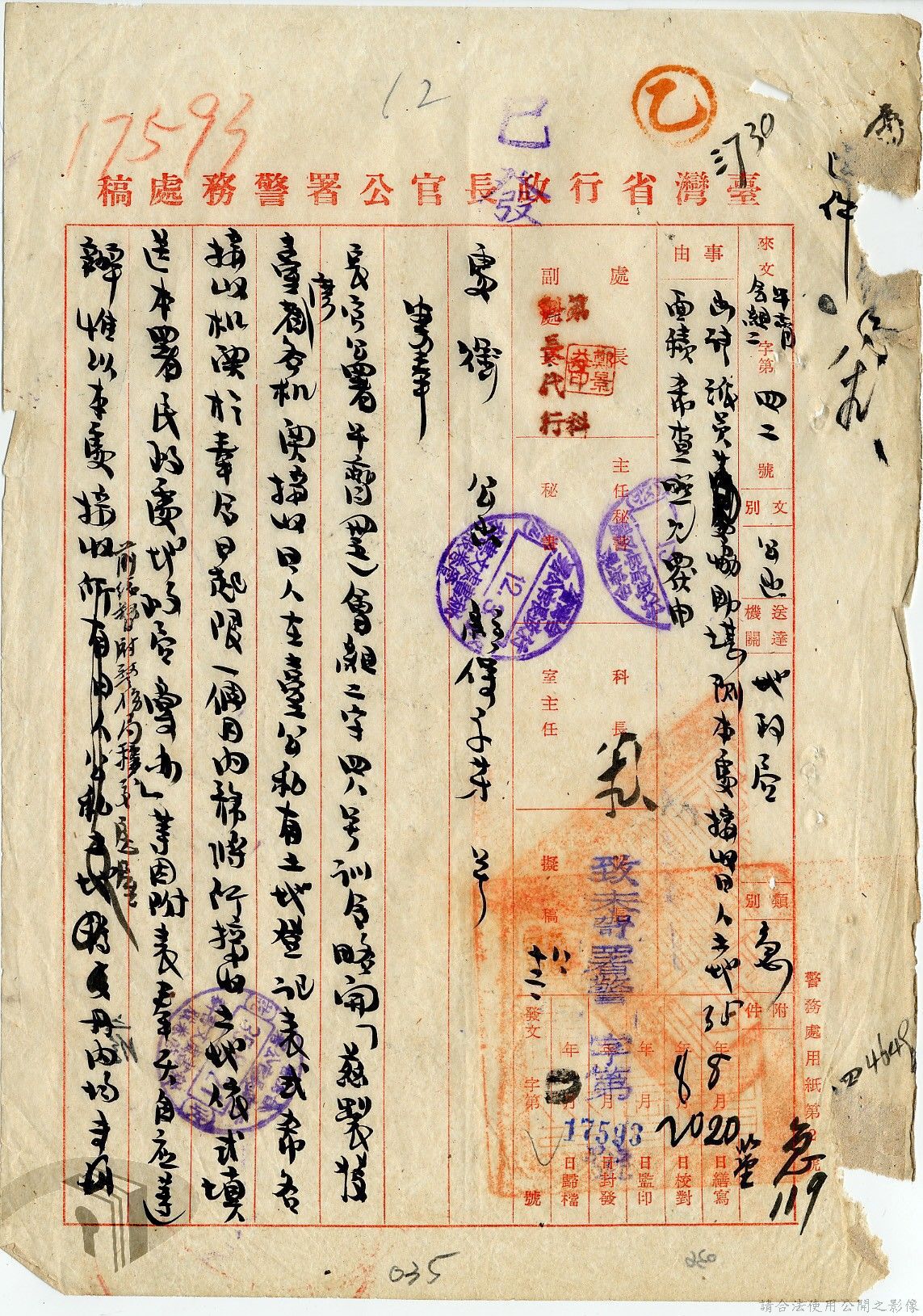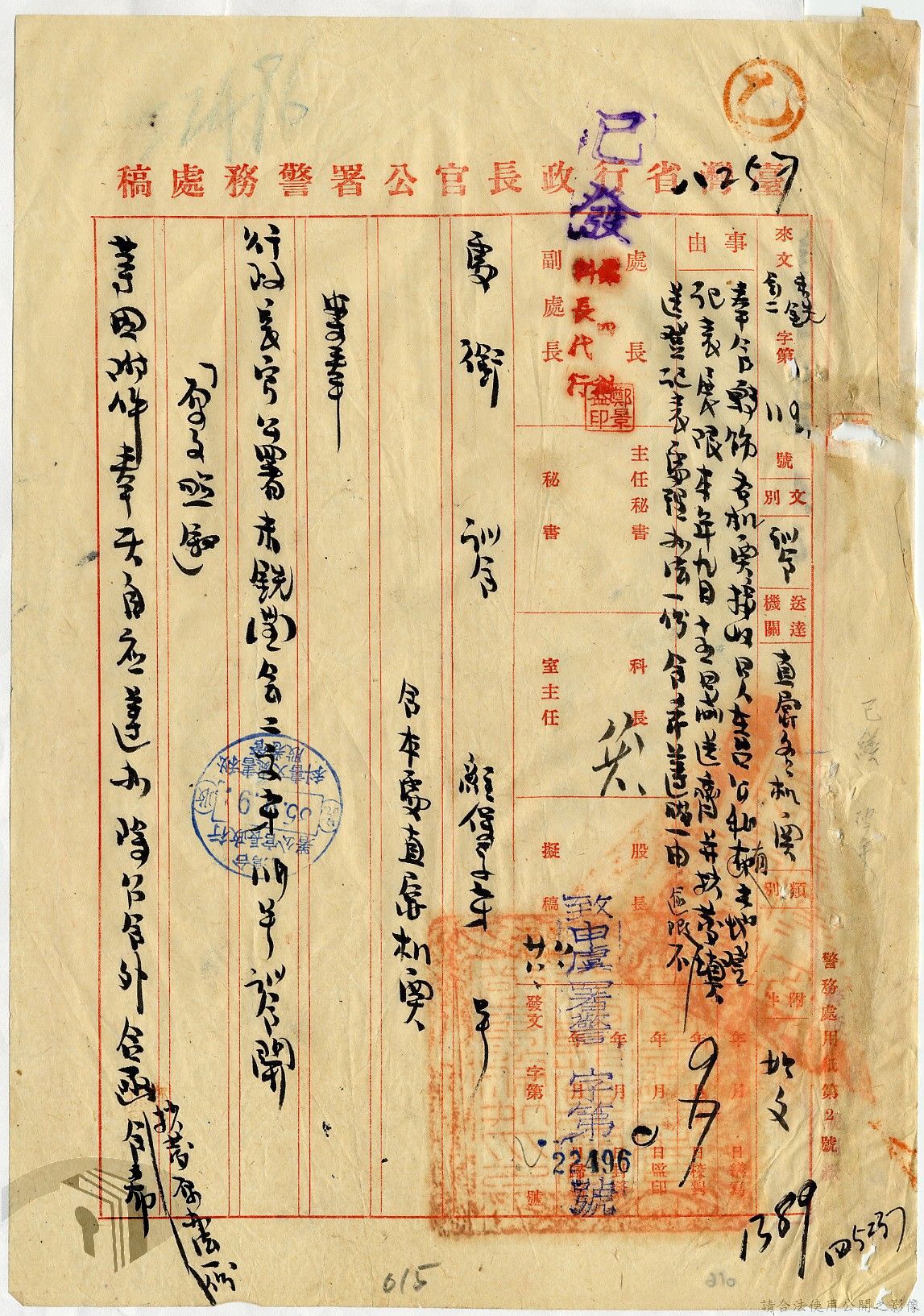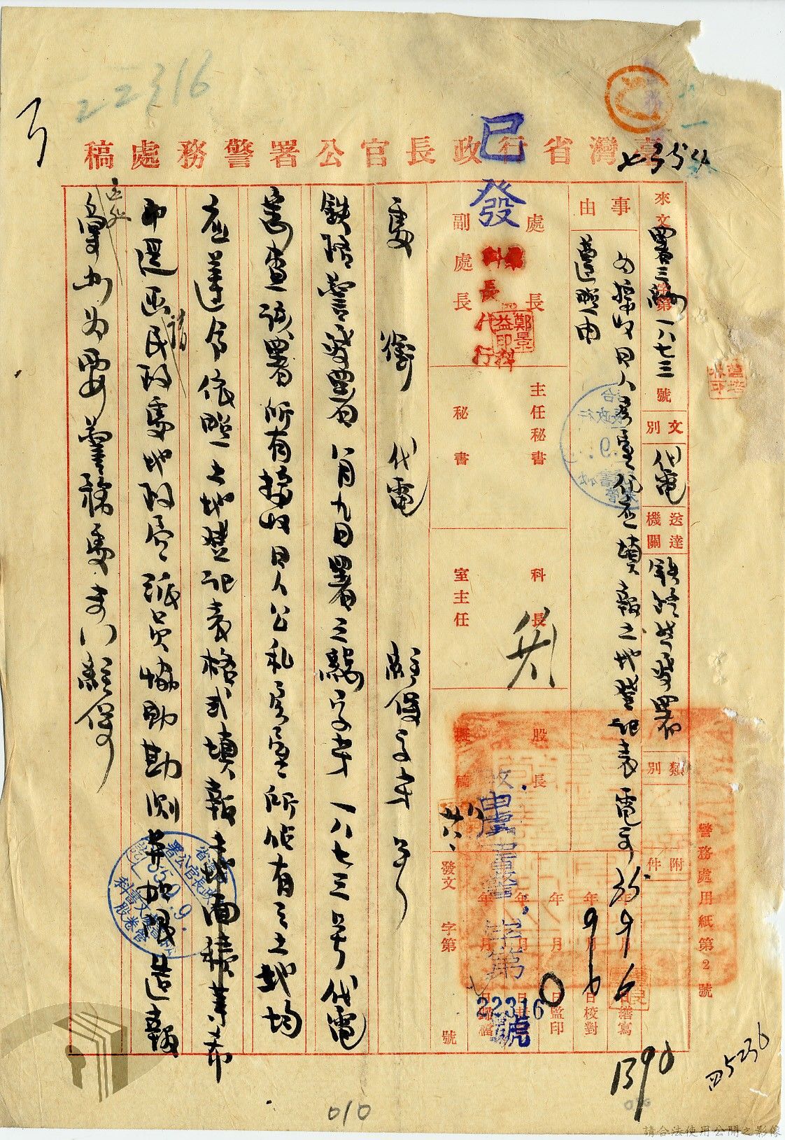 本案為35至36年間,臺灣省行政長官公署警務處辦理有關接收之日人房產土地之登記及申請留用之經過,以及轉發臺灣省行政長官公署所頒「臺灣省公有土地緊急清查辦法」至所屬各單位,以憑公地清查團執行清查任務時,各機關及縣市政府應指派人員協助辦理,方便明瞭公有土地接管收租及分布情形等。