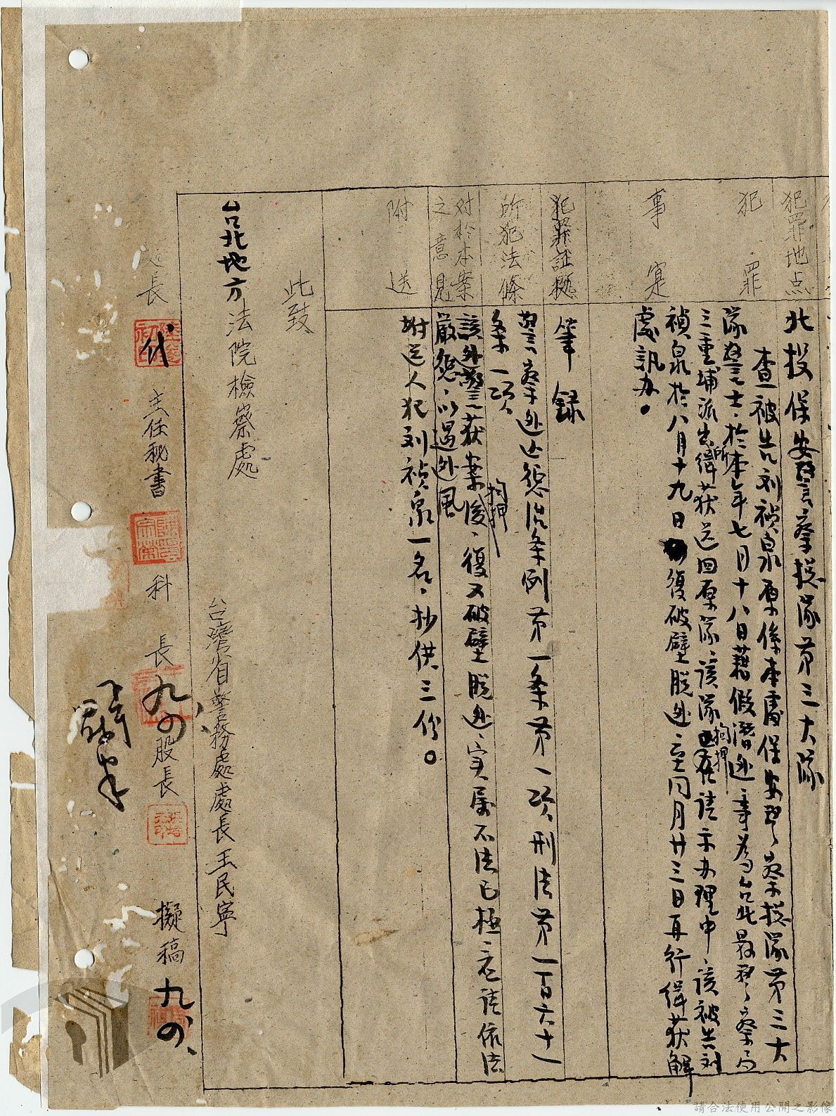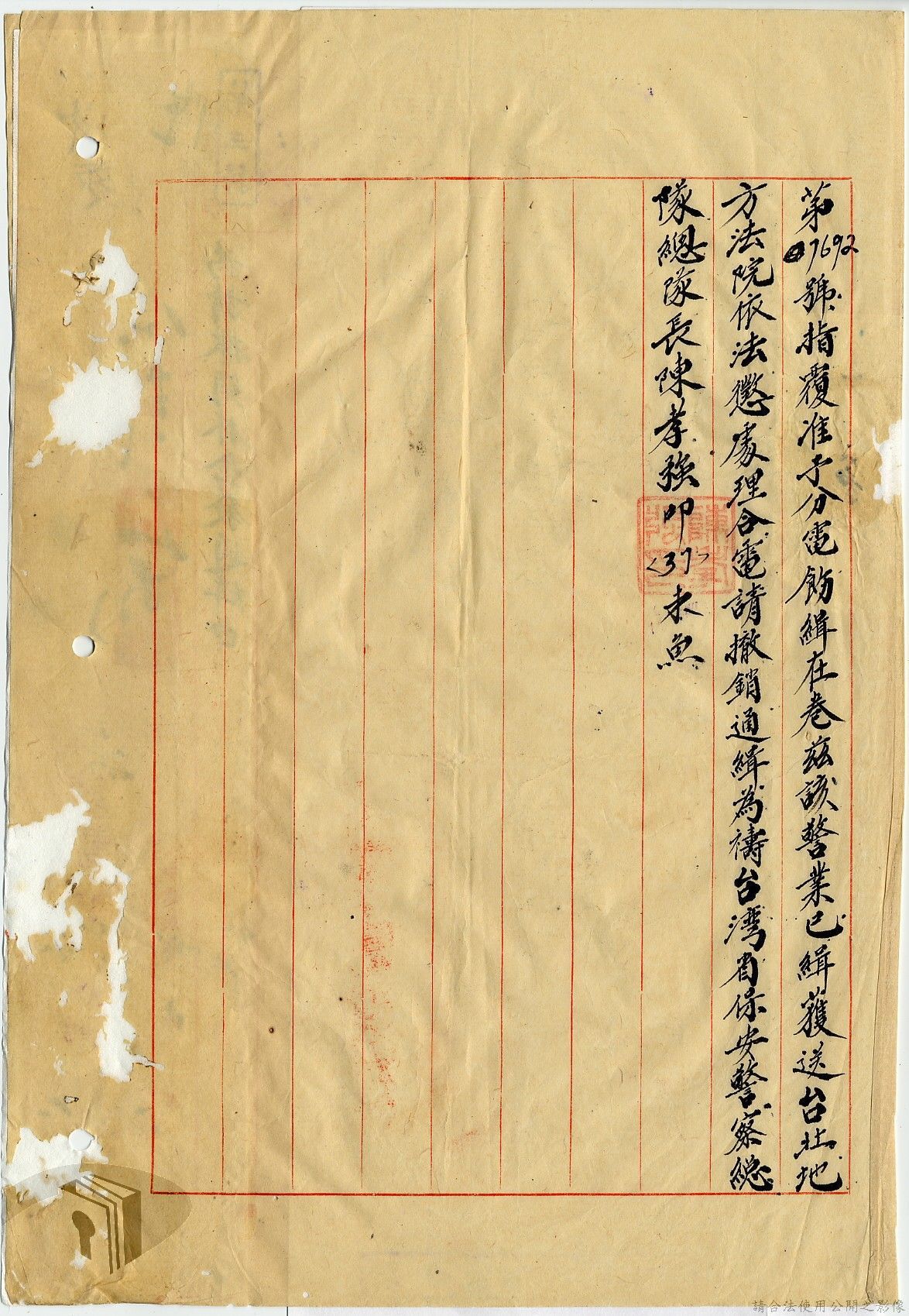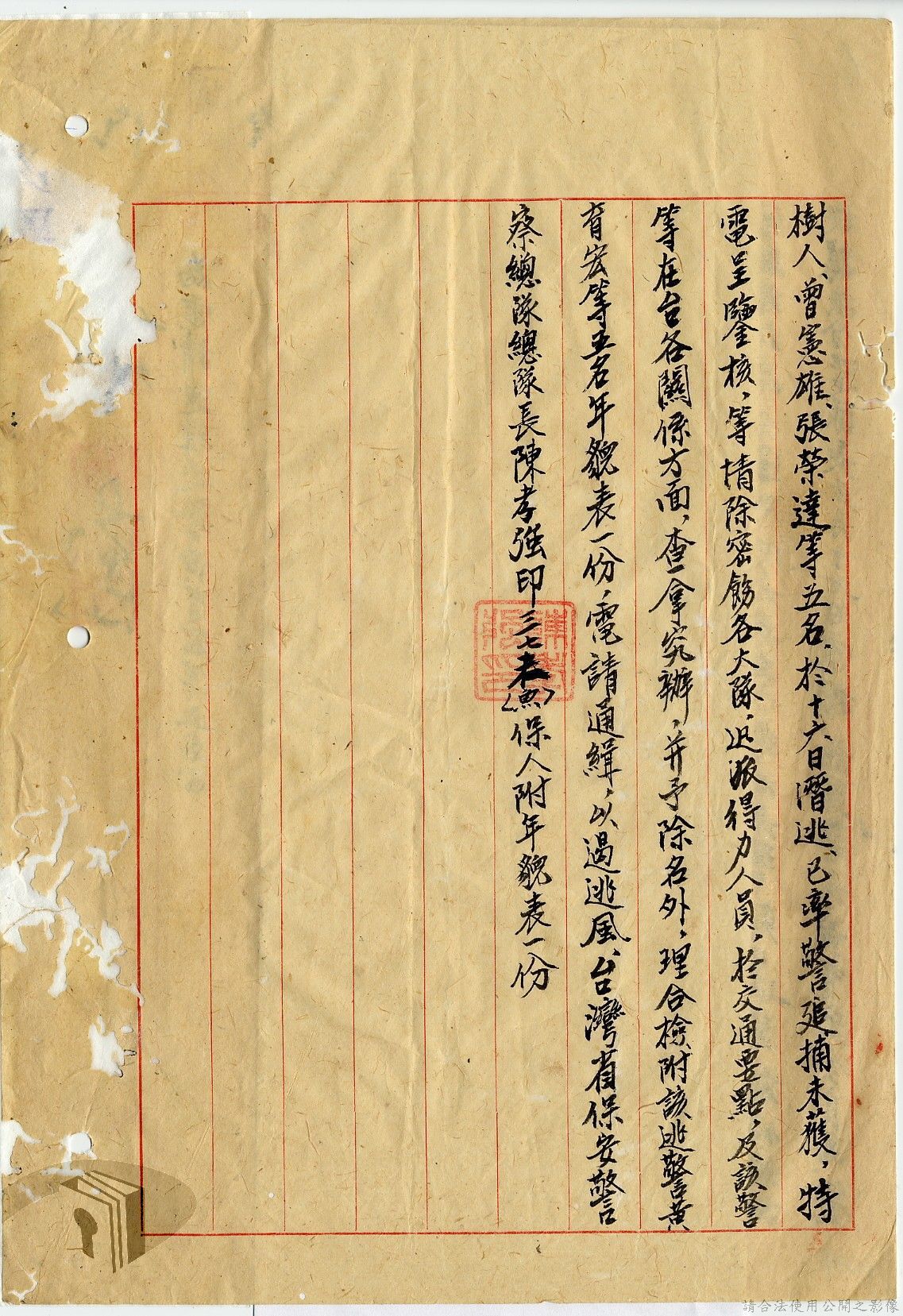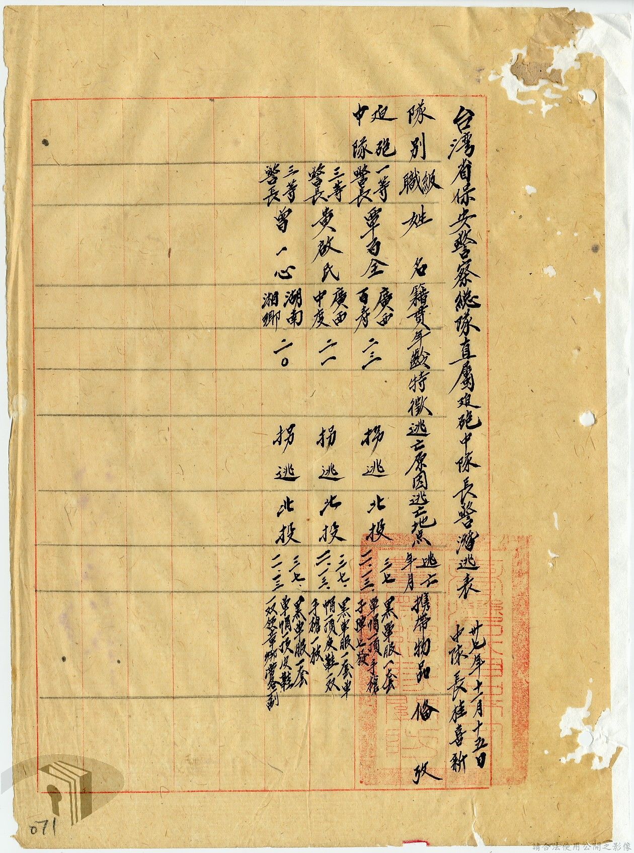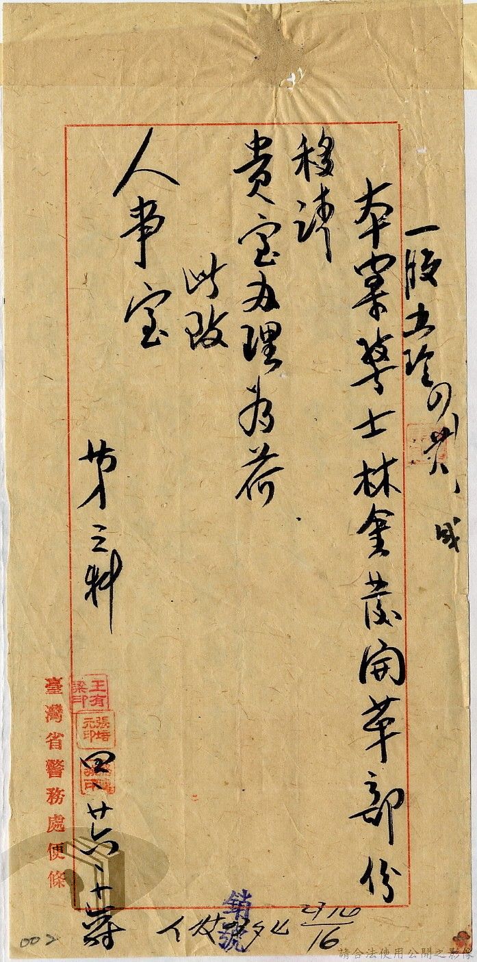 本案為37年間,臺灣省保安警察總隊部等單位發電報請臺灣省警務處通緝涉案員警,警務處發電報請各縣市政府、基隆港務警察所、高雄港務警察所等單位協助辦理;臺灣省職業訓導總隊將涉案員警及相關資料移送至警務處,該處後將當事人發交保安警察總隊部處理。