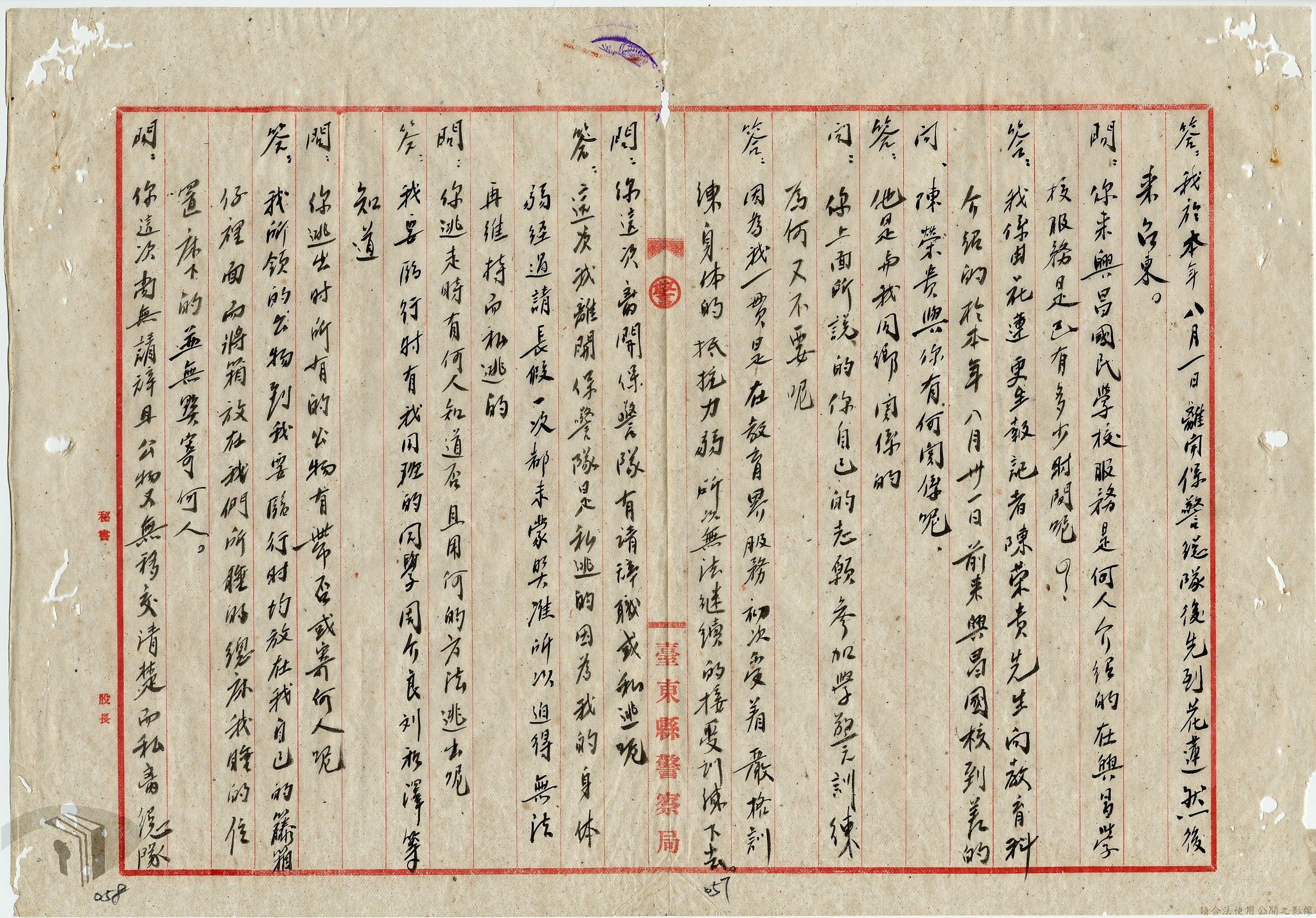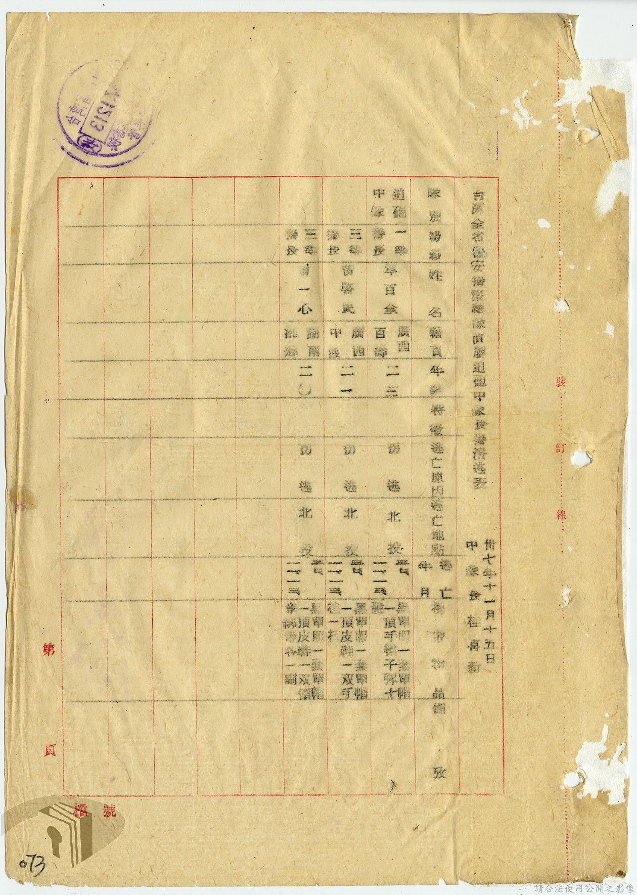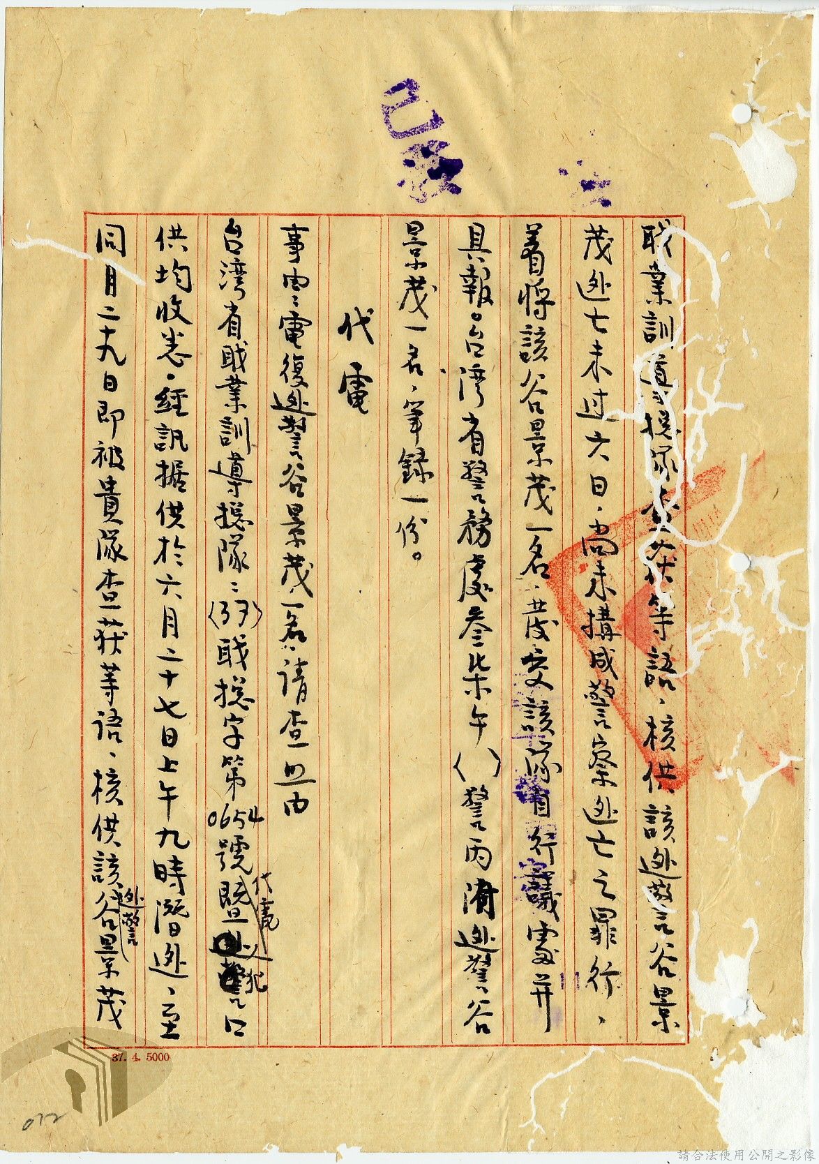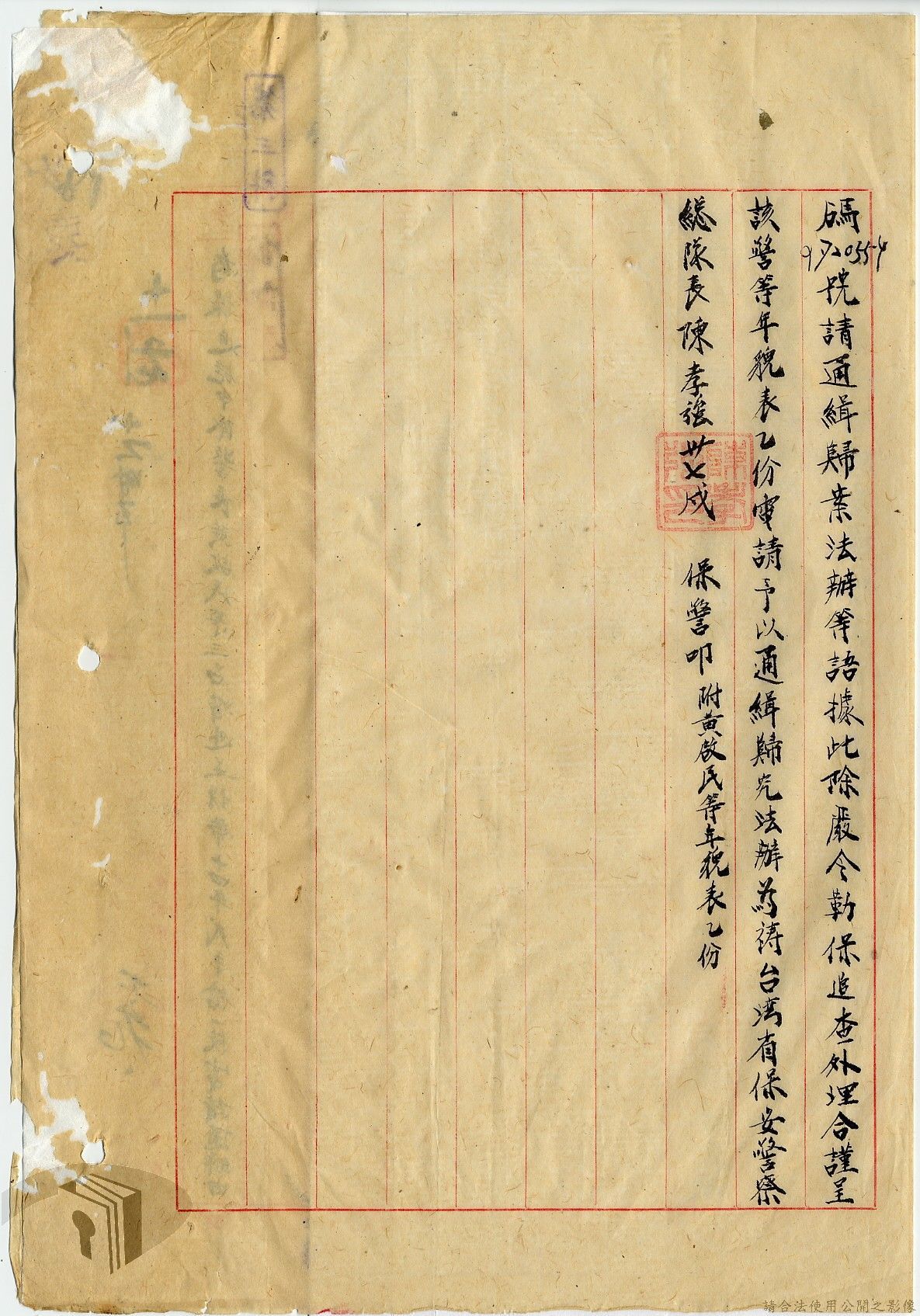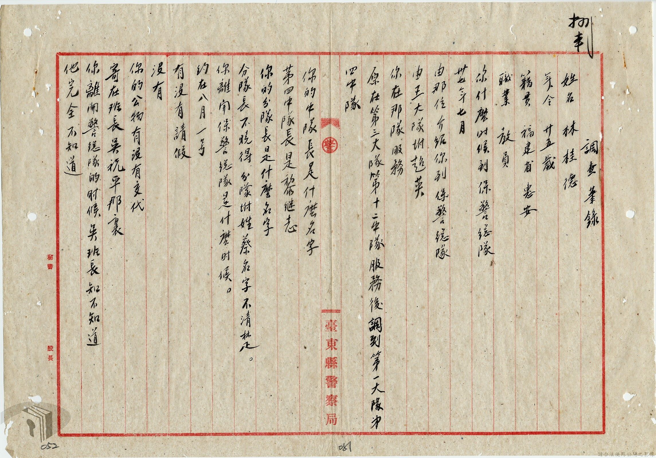 本案為37年間,臺灣省保安警察總隊部等單位發電報請臺灣省警務處通緝涉案員警,警務處發電報請各縣市政府、基隆港務警察所、高雄港務警察所等單位協助辦理;臺灣省職業訓導總隊將涉案員警及相關資料移送至警務處,該處後將當事人發交保安警察總隊部處理。
