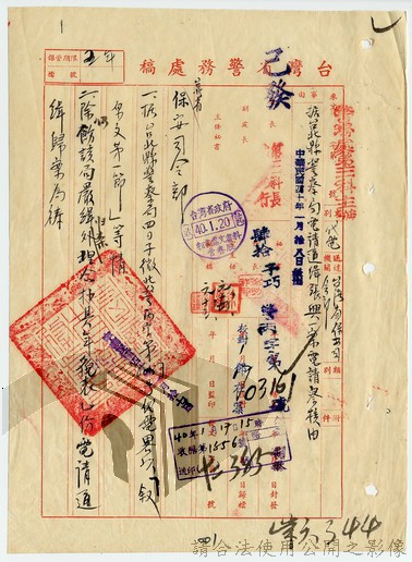 本案為40年間緝拿逃犯事宜,臺北縣警察局據中國青年反共抗俄聯合會臺北分會來函報稱該分會總務股長假藉該會名義對外籌募基金會及借款,要求其返會清理卻避而不見,而檢送其年貌表予臺灣省政府警務處請予以通緝,警務處轉送臺灣省保安司令部辦理。附年貌表。