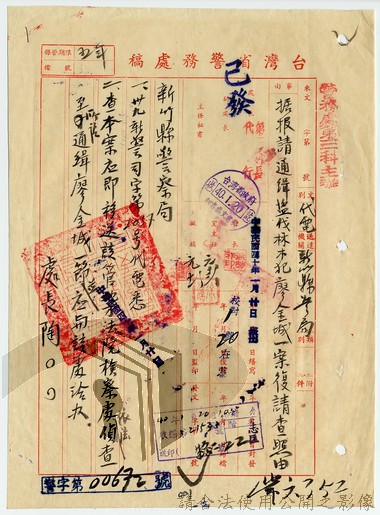 本案為40年間,新竹縣警察局發電報請臺灣省警務處通緝涉案人員,警務處回復應立即將該案移送管轄法院檢察處偵辦,至於通緝一事則逕洽檢察處;新竹縣警察局發電報請新竹少年監獄於受刑人服刑完畢後將其解送至軍事單位法辦,並以副本告知警務處,該處後發電報請臺灣省保安司令部撤銷當事人的通緝。