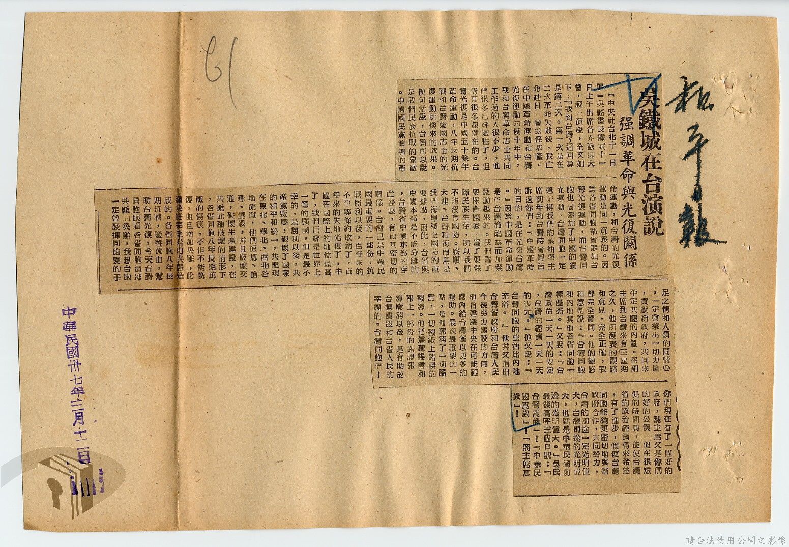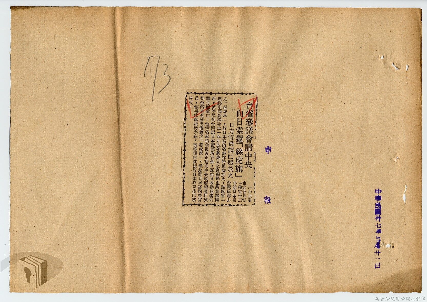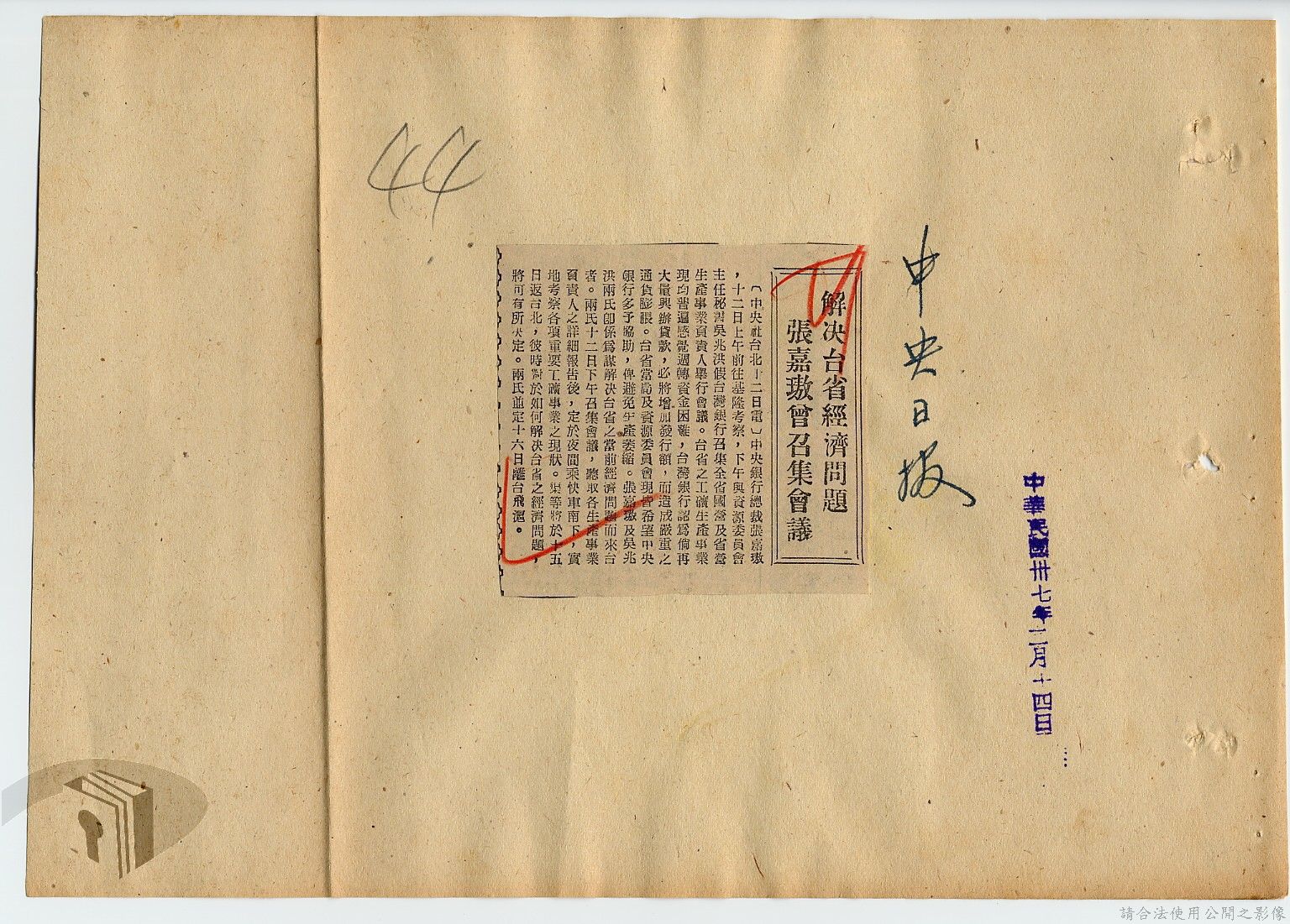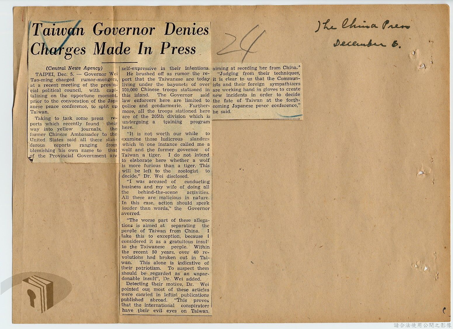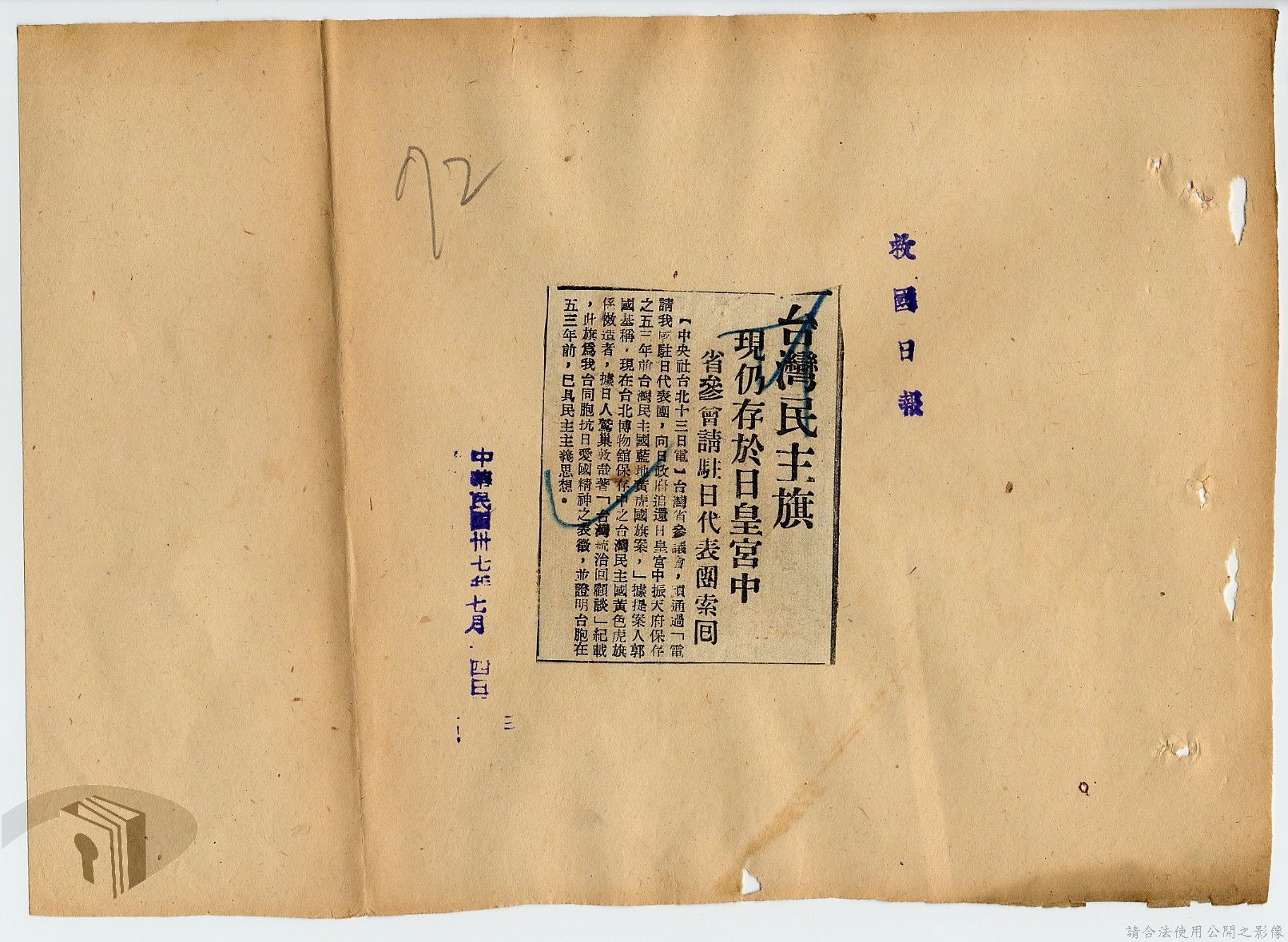 本案為36至37年間,外交部所摘臺灣問題剪報,包括中央日報、大公報、大剛報、和平日報、The China Press等報紙,內容則有關臺省政治、經濟、交通等現狀,以及二二八事件一週年之政治風氣比較、臺灣主權定位及獨立自治運動的相關報導等。