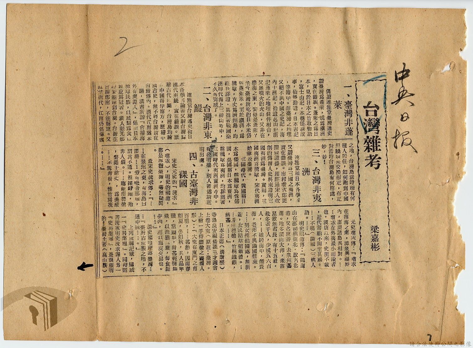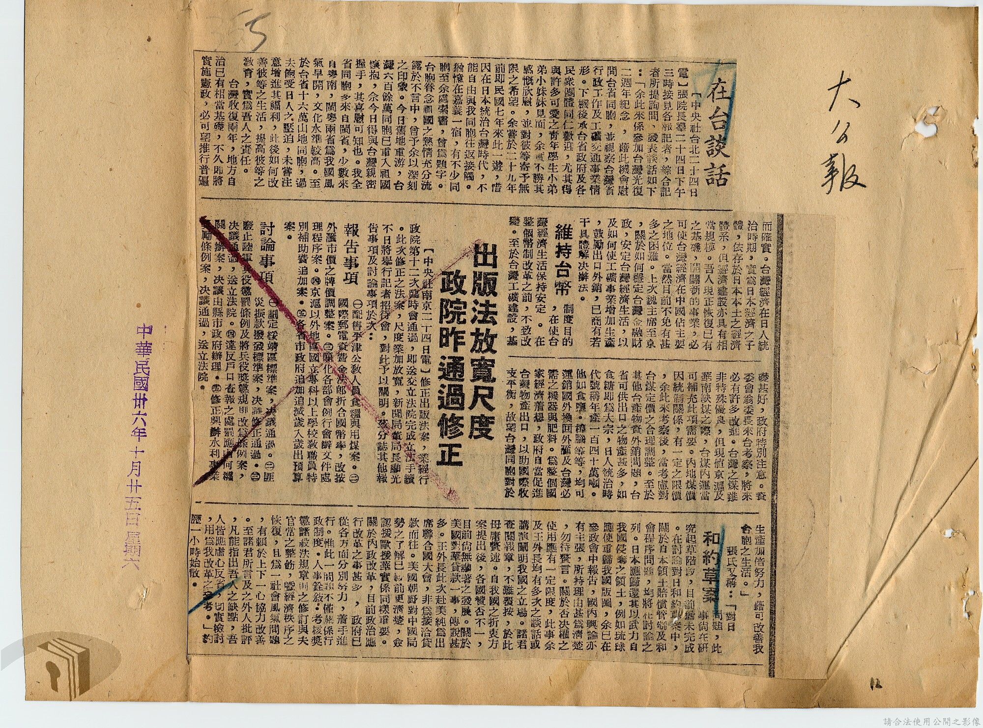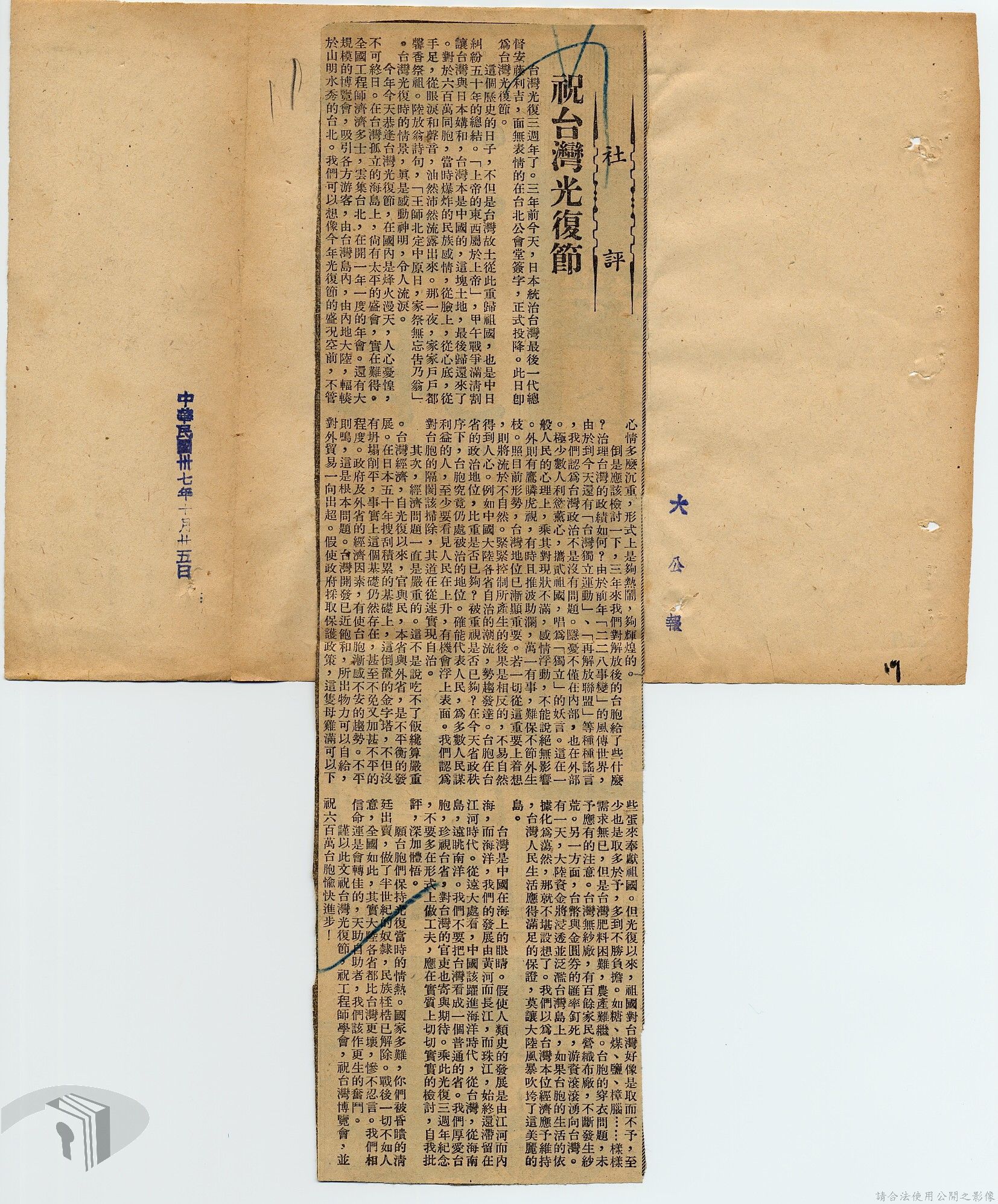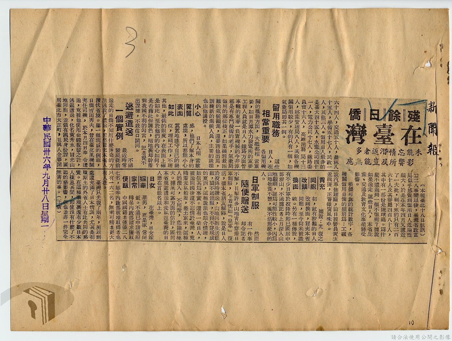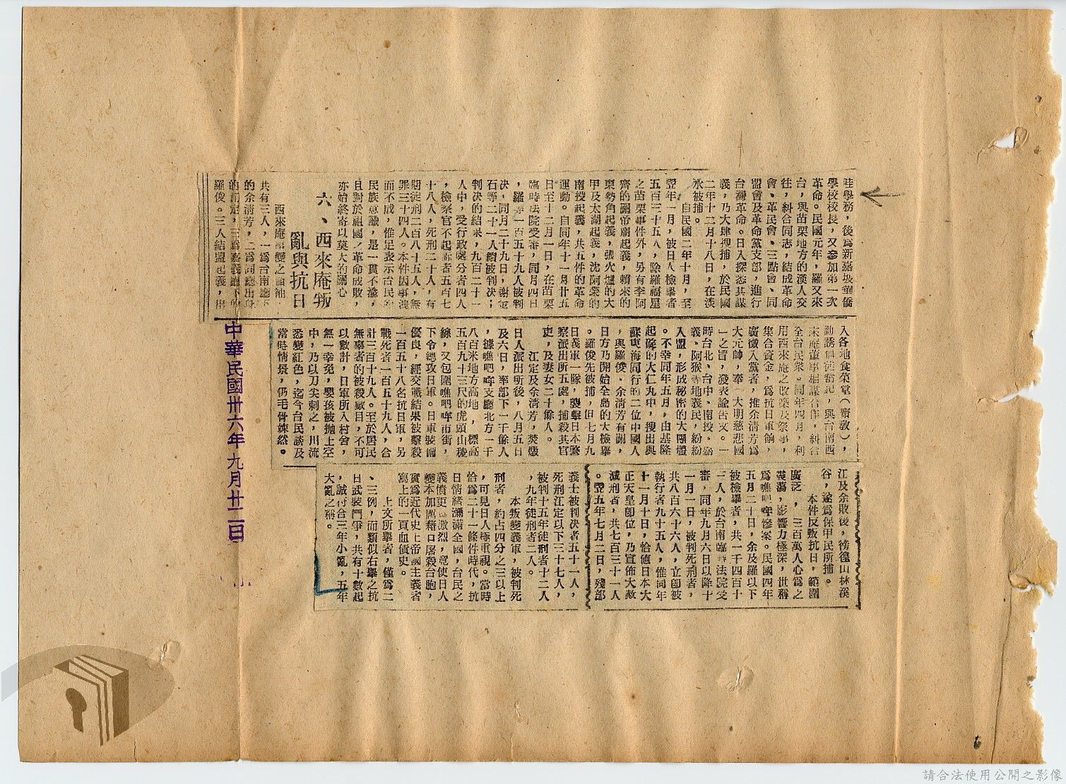 本案為36至37年間,外交部所摘臺灣問題剪報,包括中央日報、大公報、大剛報、和平日報、The China Press等報紙,內容則有關臺省政治、經濟、交通等現狀,以及二二八事件一週年之政治風氣比較、臺灣主權定位及獨立自治運動的相關報導等。