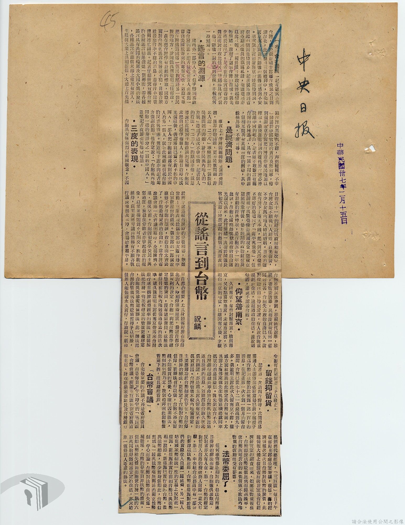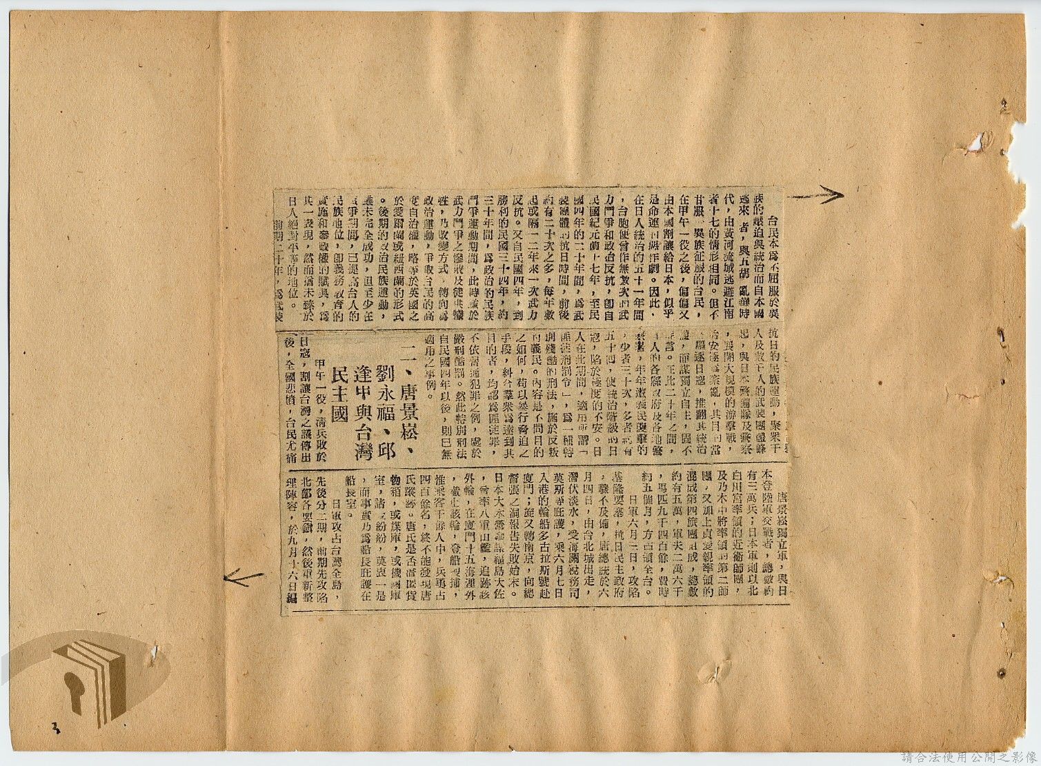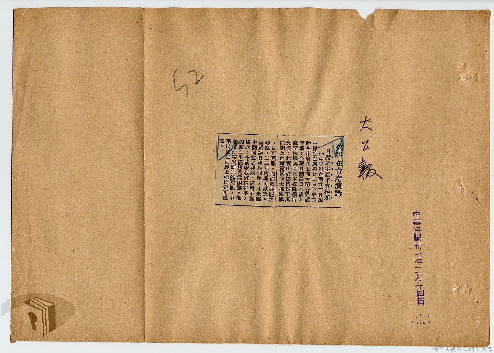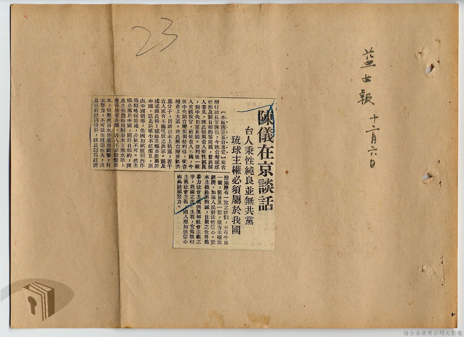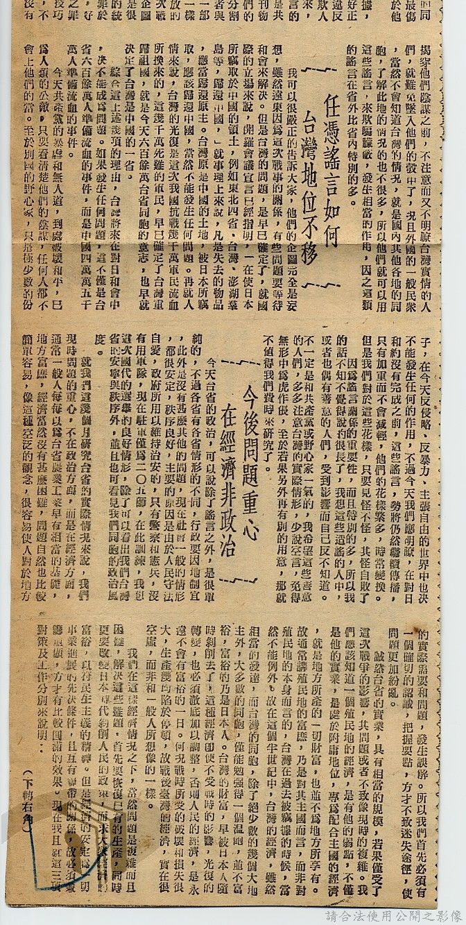本案為36至37年間,外交部所摘臺灣問題剪報,包括中央日報、大公報、大剛報、和平日報、The China Press等報紙,內容則有關臺省政治、經濟、交通等現狀,以及二二八事件一週年之政治風氣比較、臺灣主權定位及獨立自治運動的相關報導等。