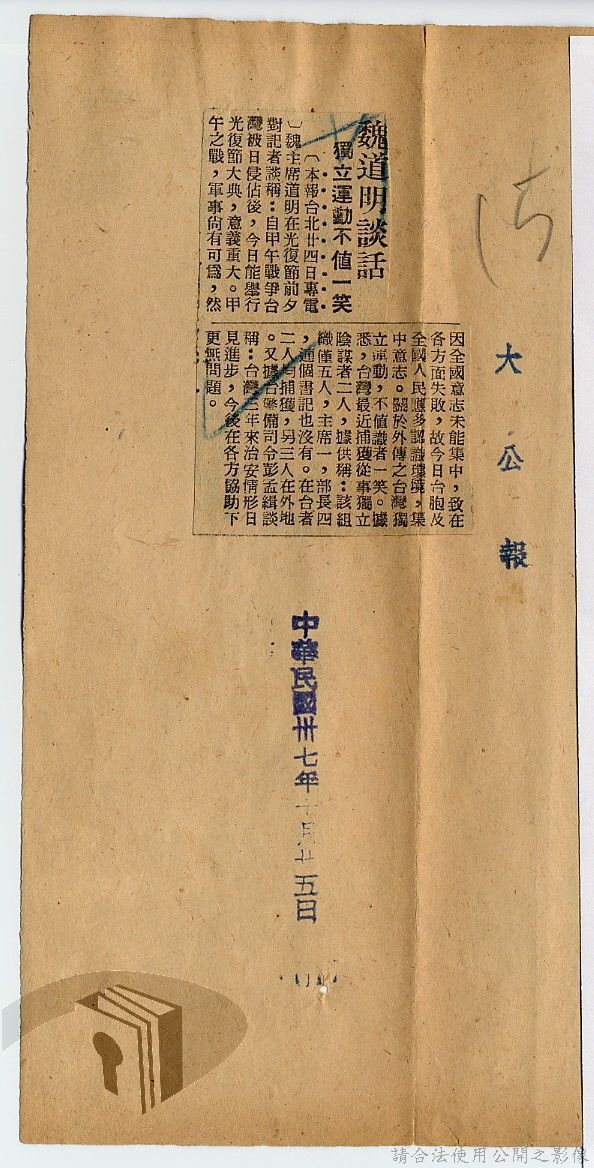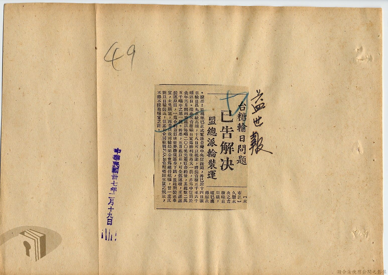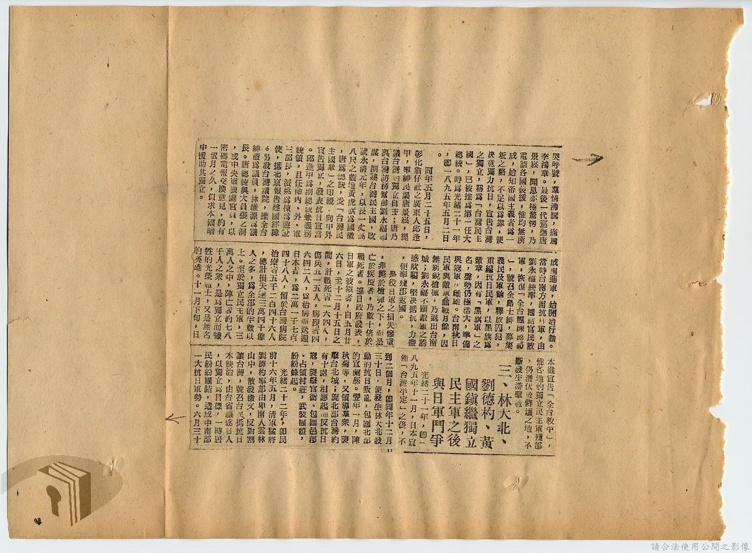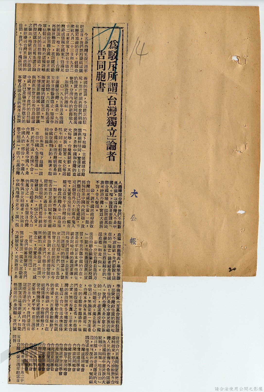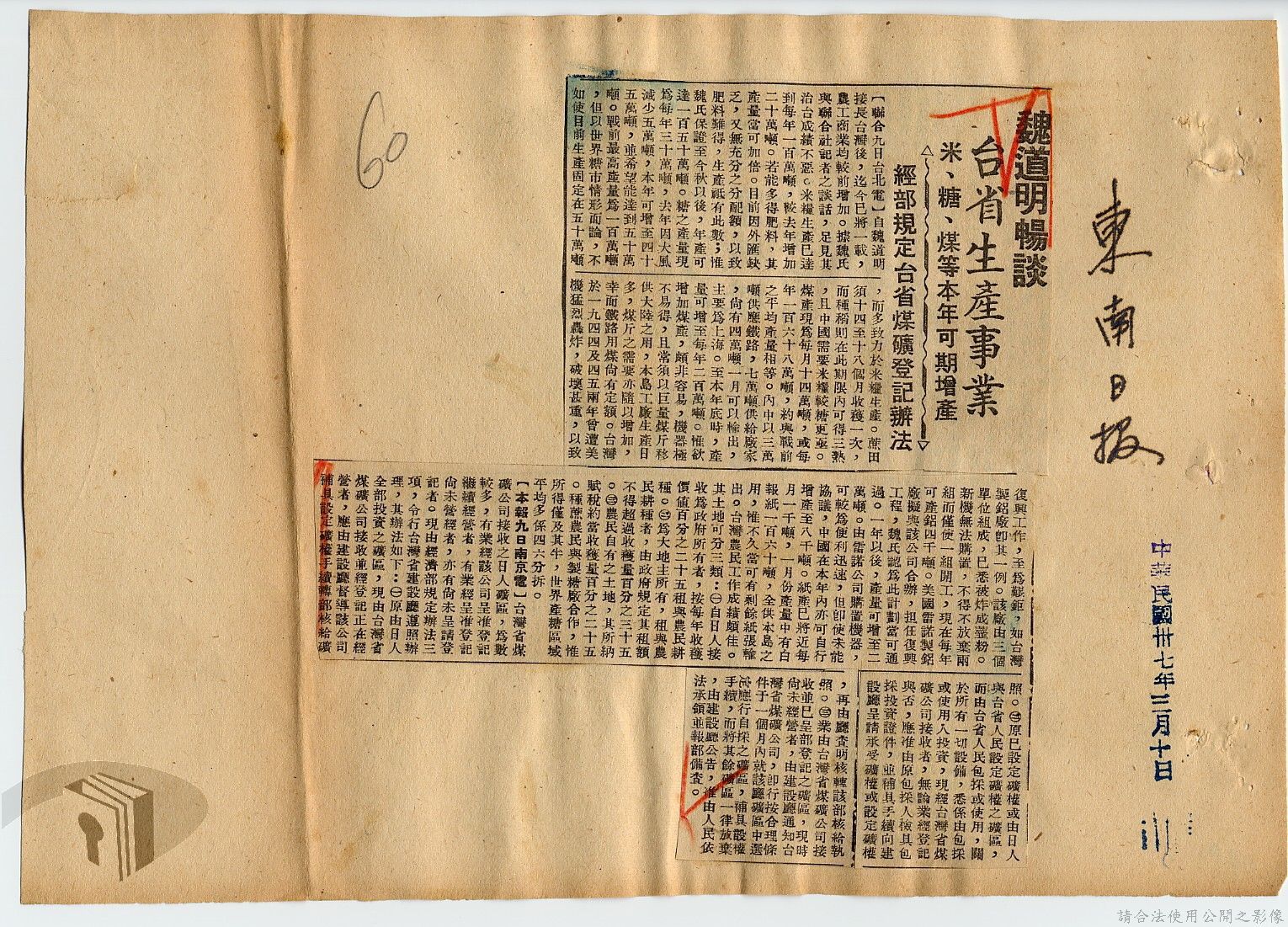 本案為36至37年間,外交部所摘臺灣問題剪報,包括中央日報、大公報、大剛報、和平日報、The China Press等報紙,內容則有關臺省政治、經濟、交通等現狀,以及二二八事件一週年之政治風氣比較、臺灣主權定位及獨立自治運動的相關報導等。