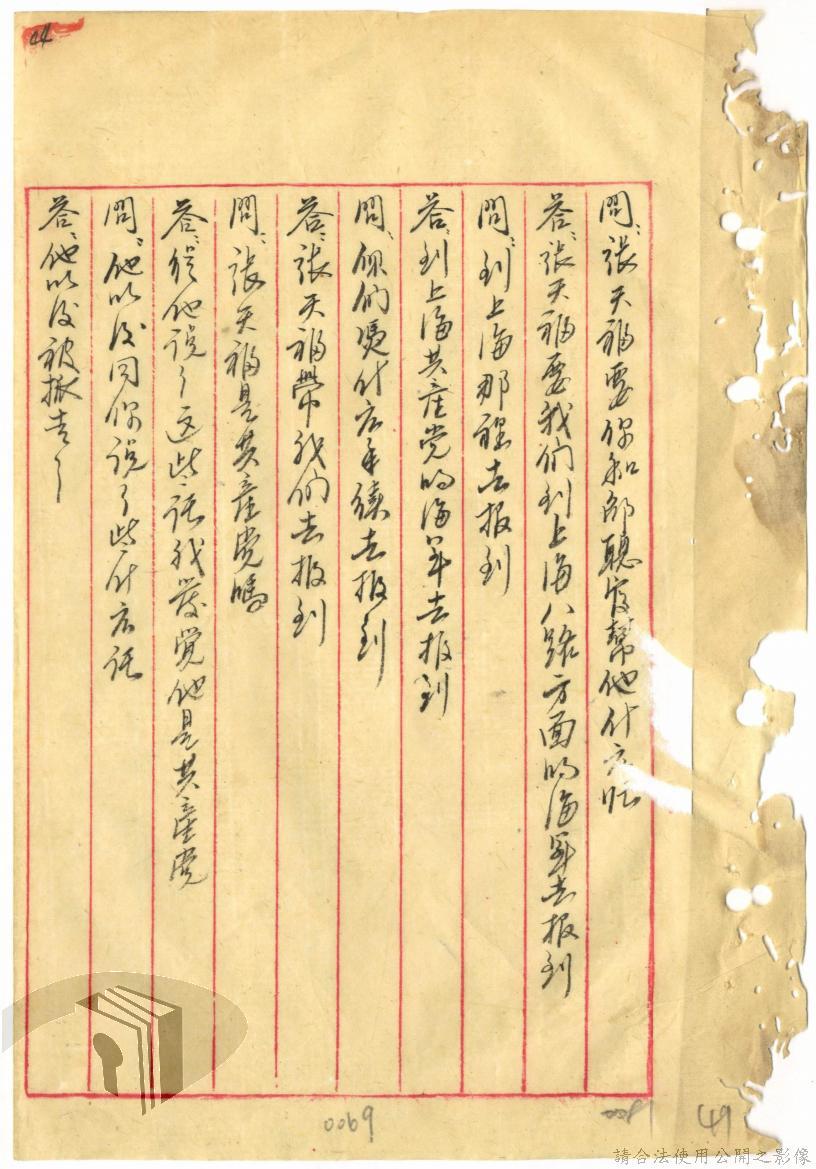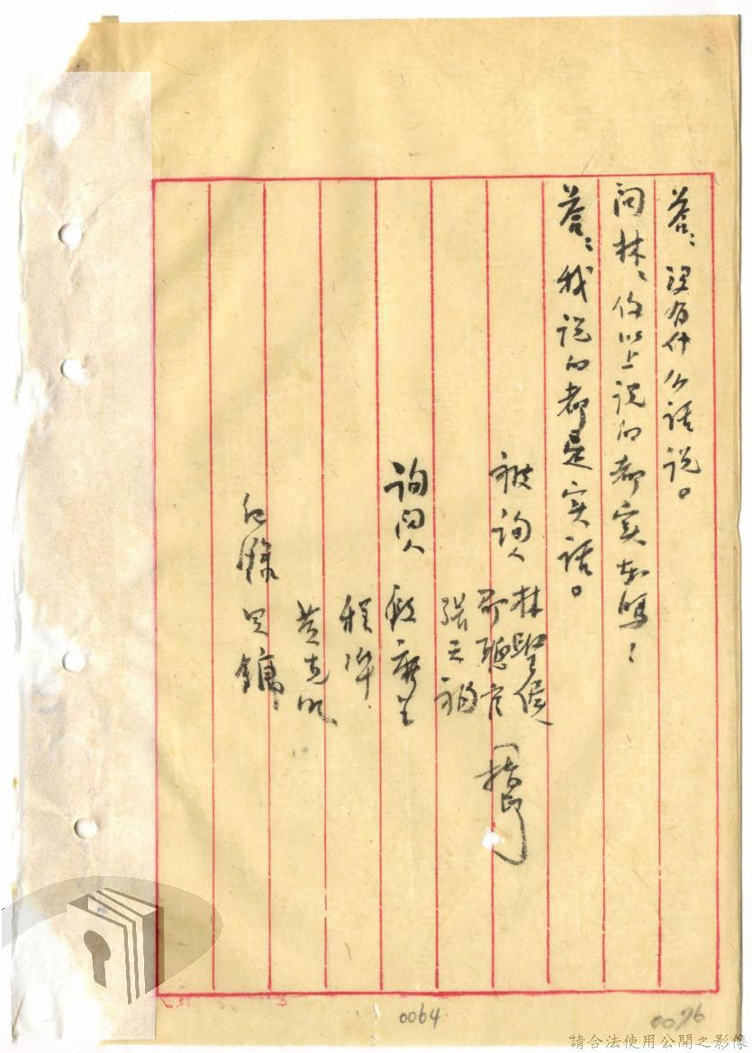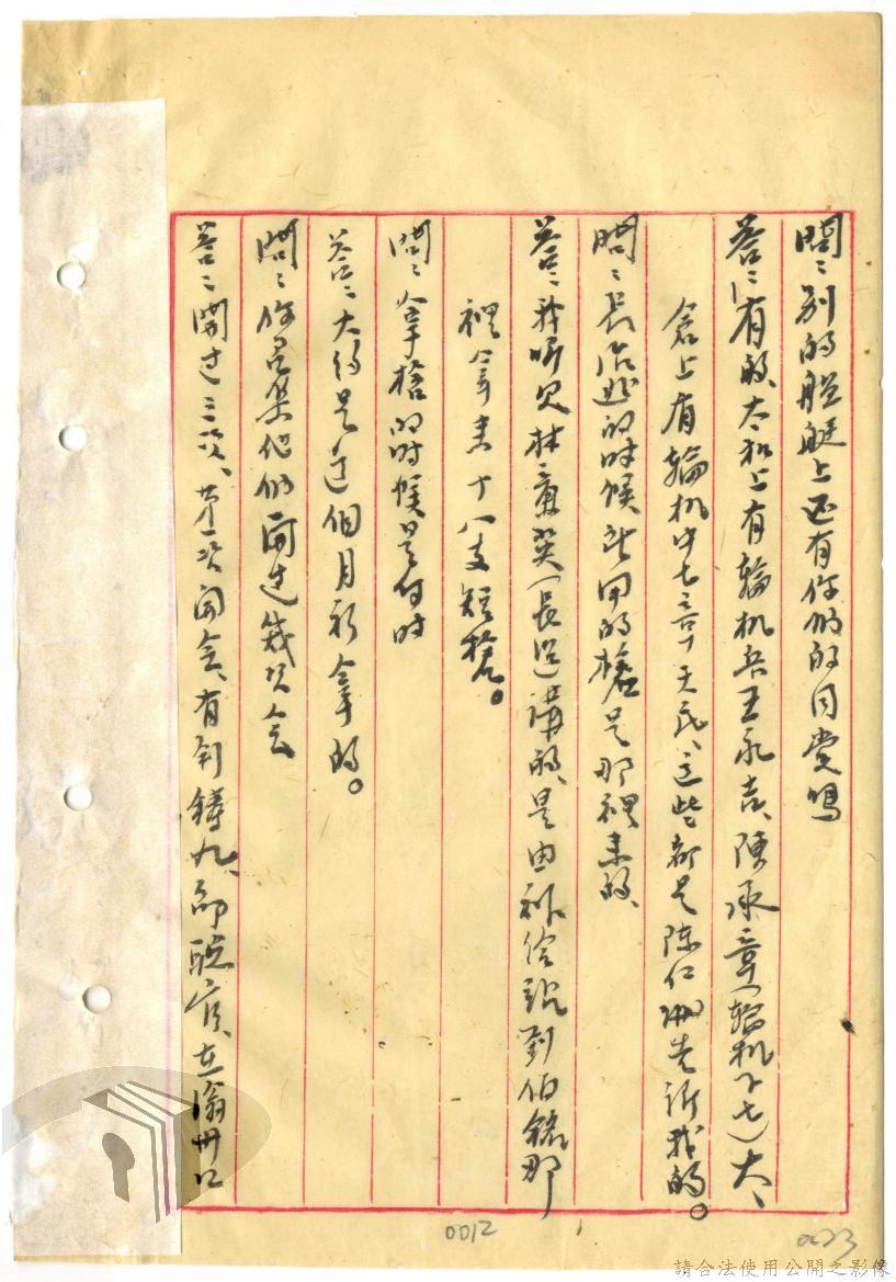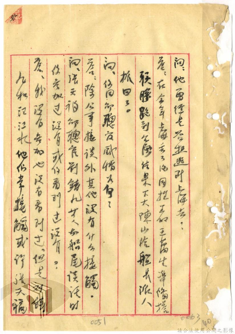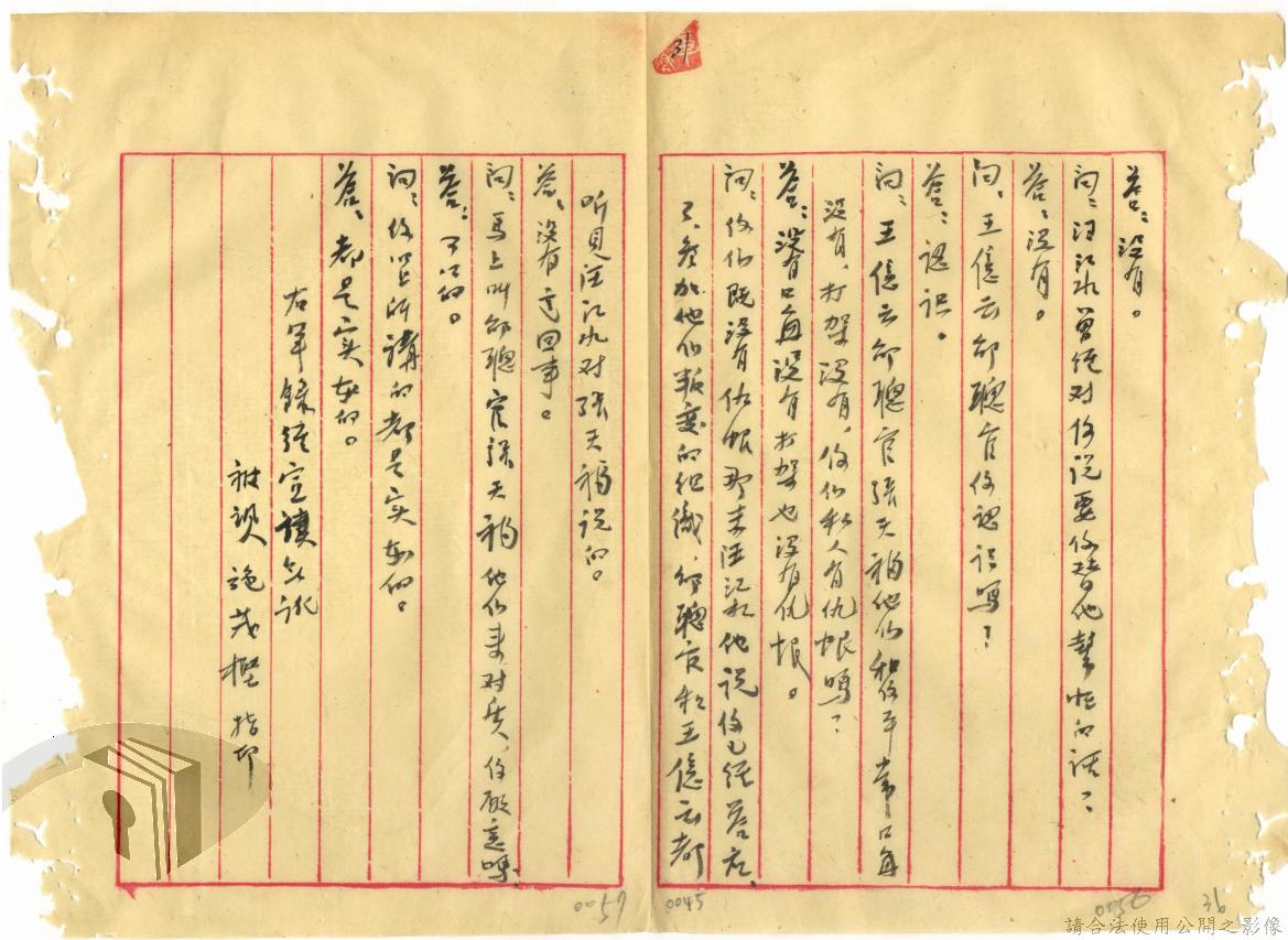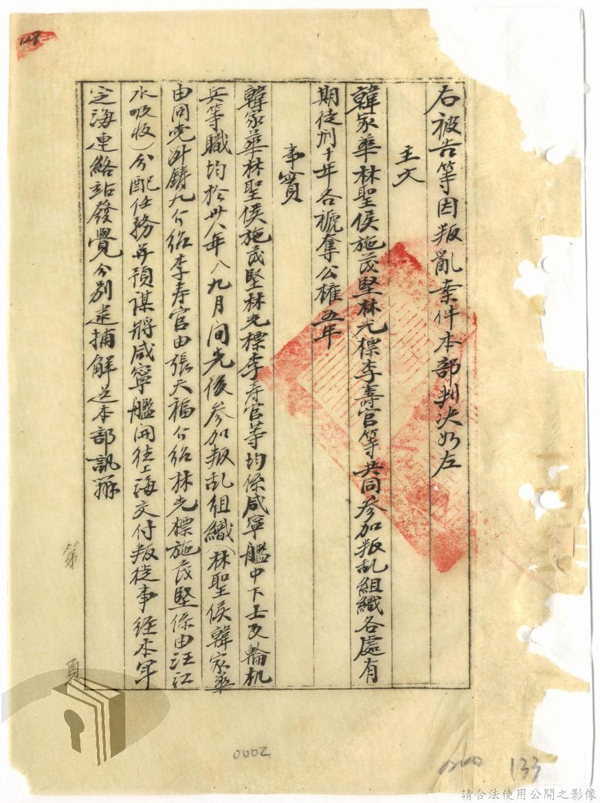 本案為38至39年間,海軍總司令部定海聯絡站、海軍陸戰隊第一師司令部將涉案軍人及相關資料移送第一軍區司令部審理,第一軍區司令部後依照海軍總司令部的指示對部分當事人執行相關手續,並對其他涉案人作出判決。附訊問筆錄、點名單、判決書等文件資料。