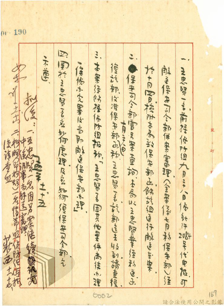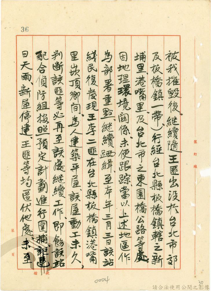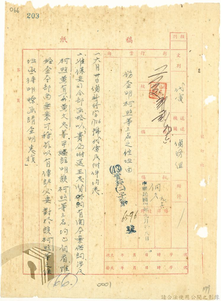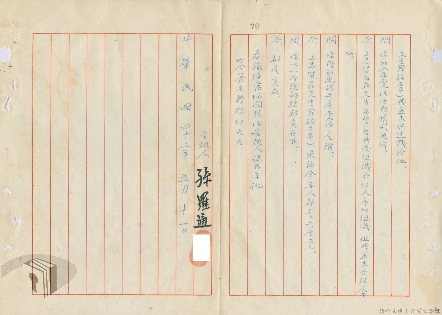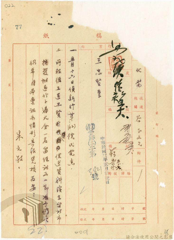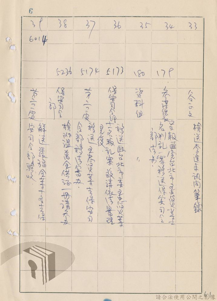 本案為43至47年間,國防部保密局所屬人員為偵辦民眾所涉案件而向上級長官及相關人員報告偵查情形,臺灣省保安司令部亦會同該局及警局人員緝拿嫌疑人,保密局則向總統府機要室資料組、國防部陳報偵辦進度,當事人經該局訊問完畢後,移送保安司令部審判。附訊問筆錄、醫師證明書等文件資料。