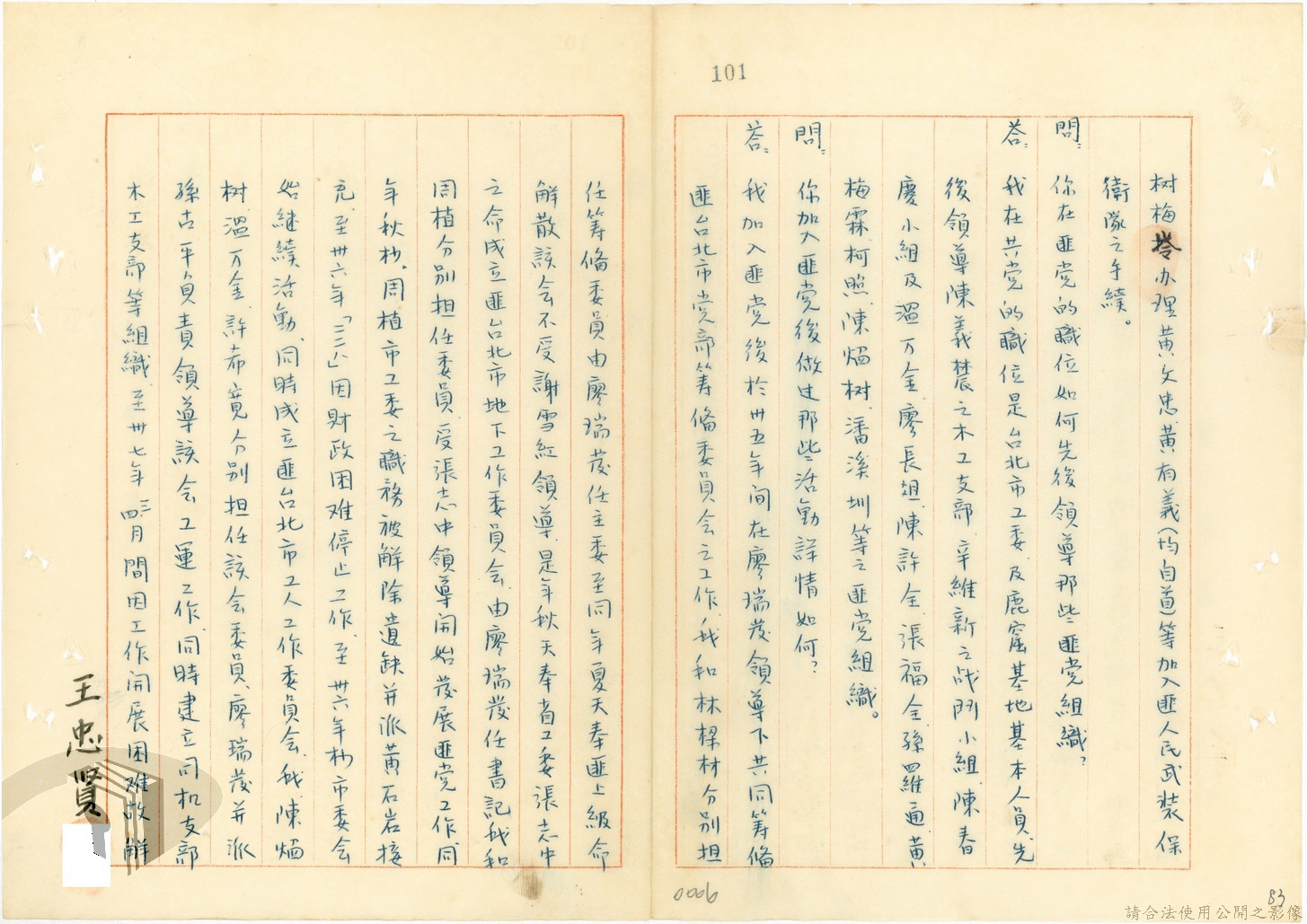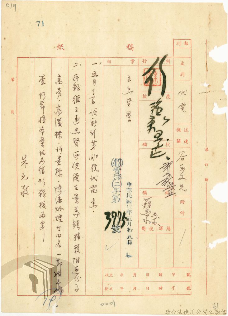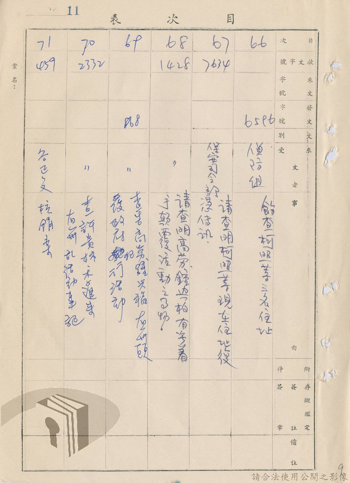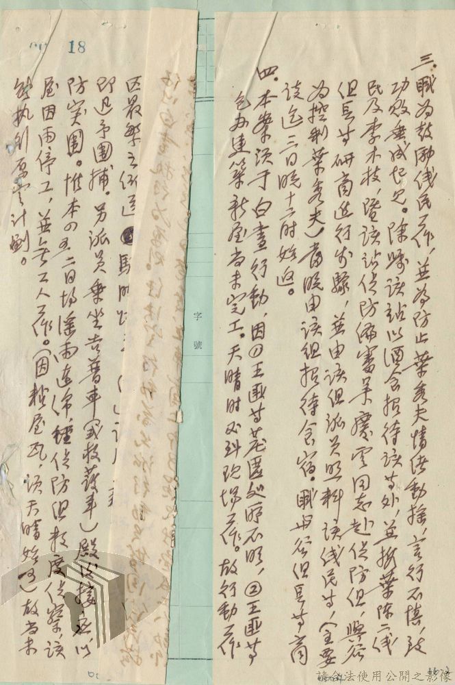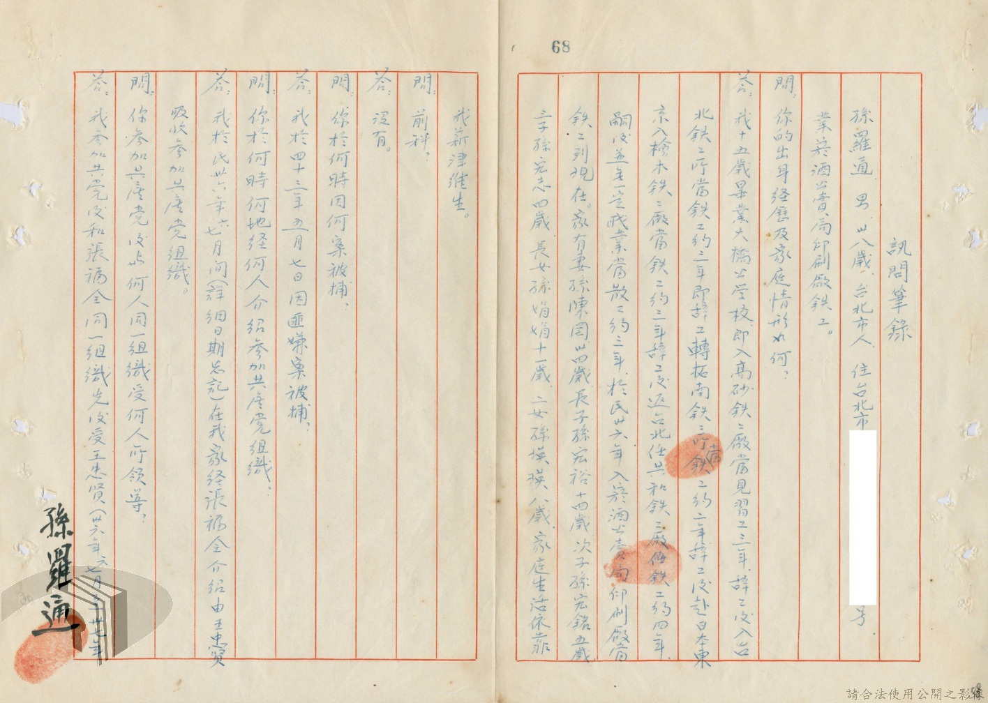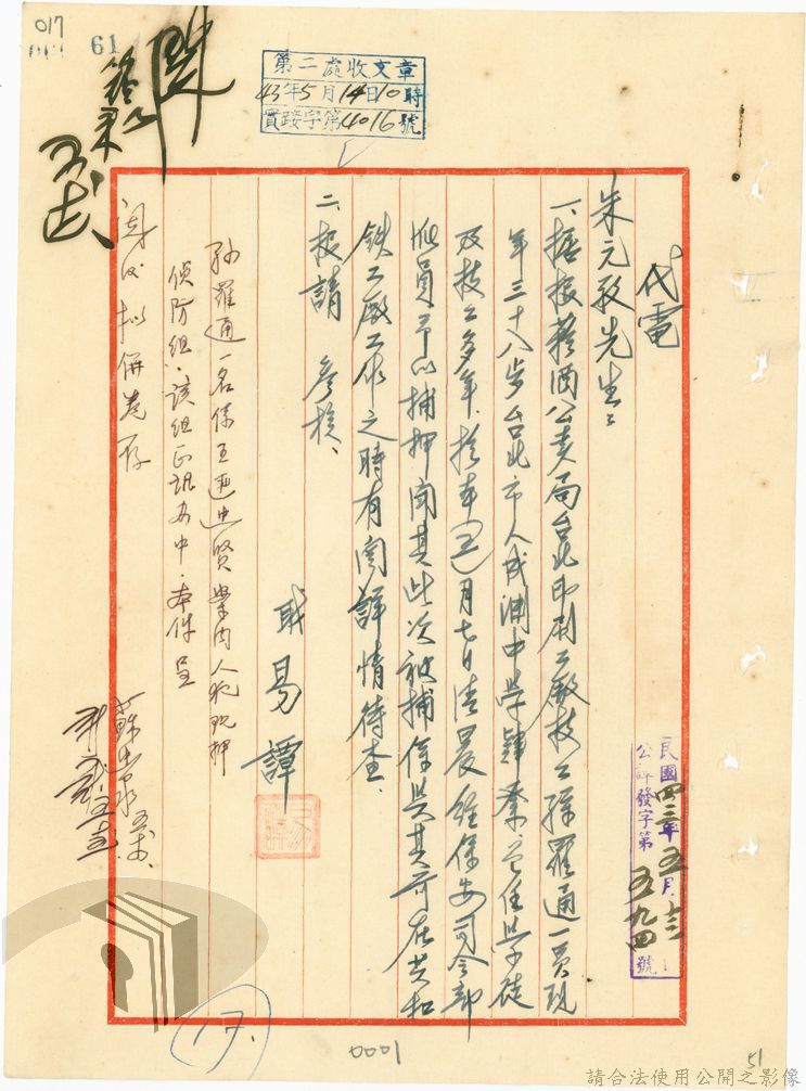 本案為43至47年間,國防部保密局所屬人員為偵辦民眾所涉案件而向上級長官及相關人員報告偵查情形,臺灣省保安司令部亦會同該局及警局人員緝拿嫌疑人,保密局則向總統府機要室資料組、國防部陳報偵辦進度,當事人經該局訊問完畢後,移送保安司令部審判。附訊問筆錄、醫師證明書等文件資料。
