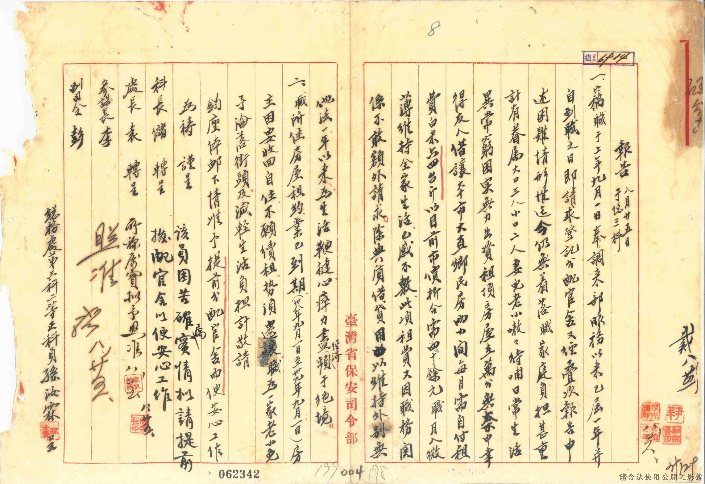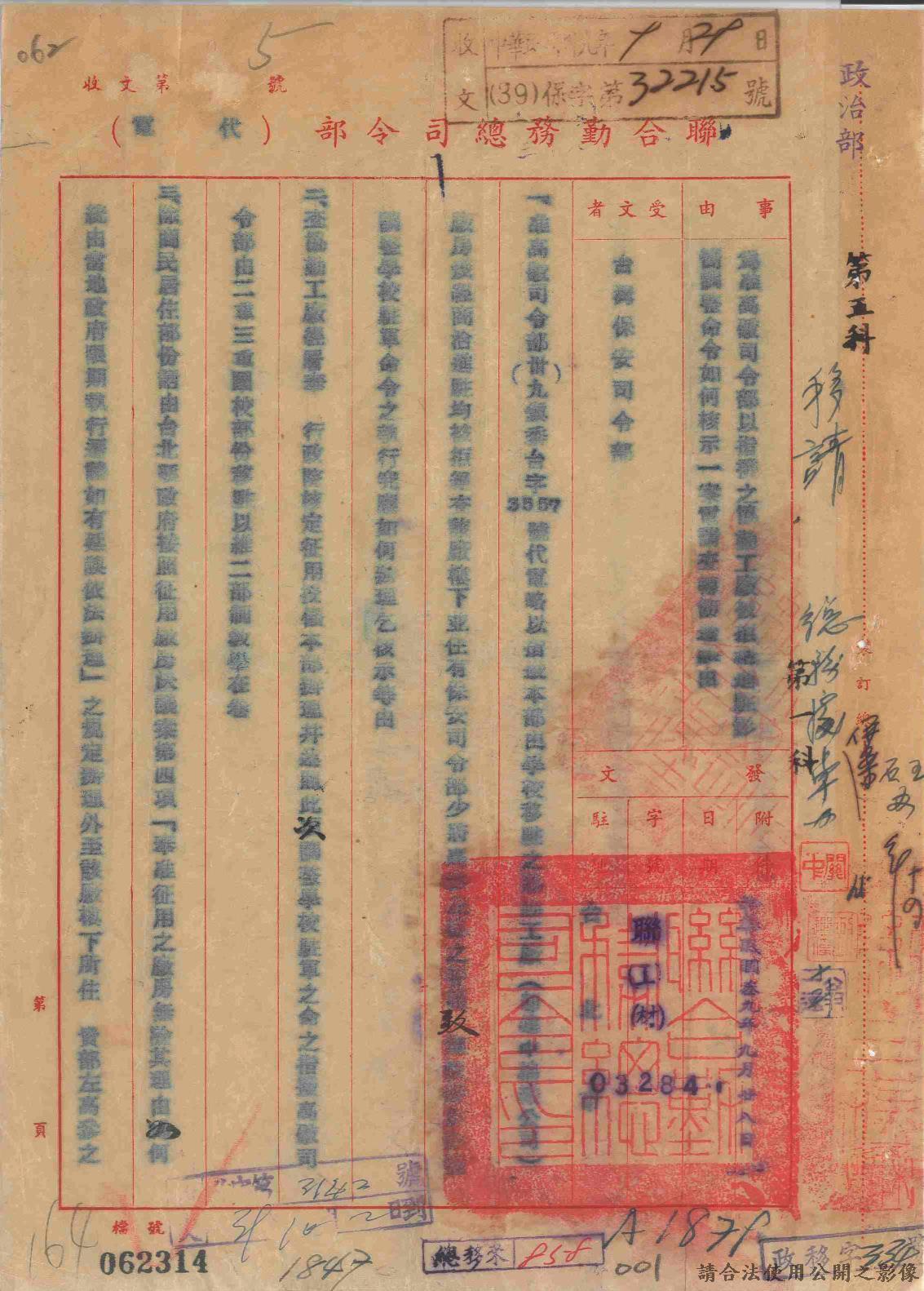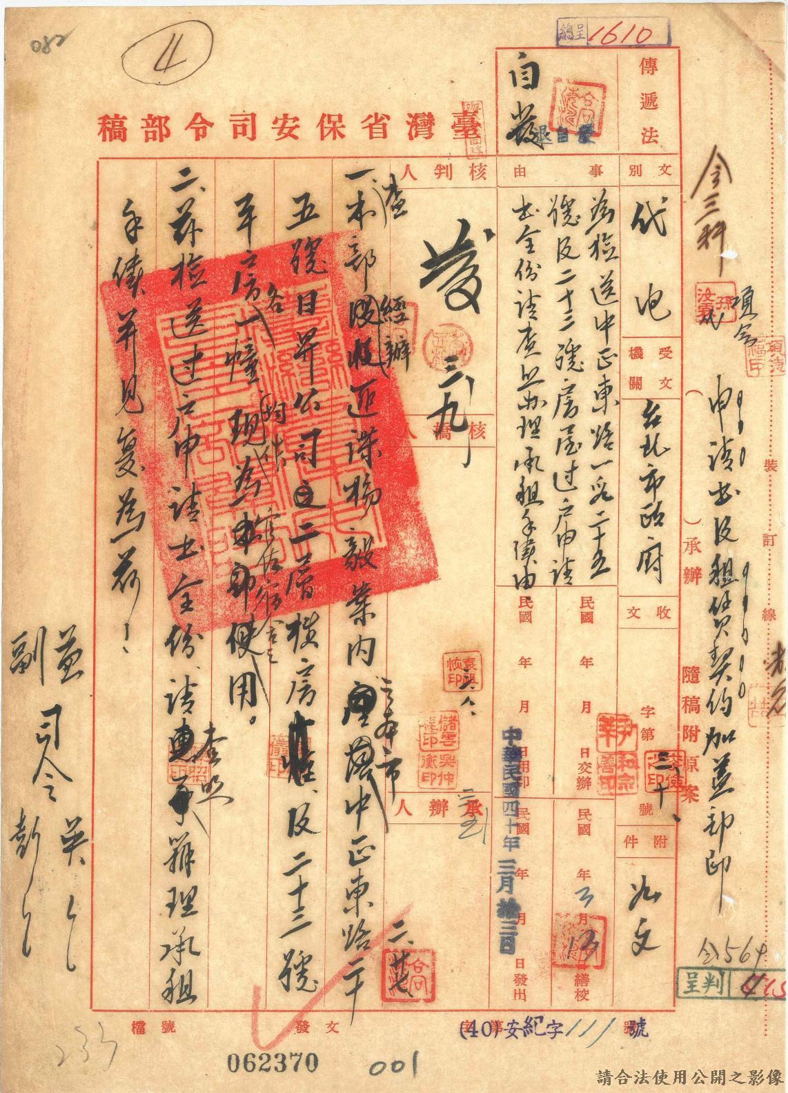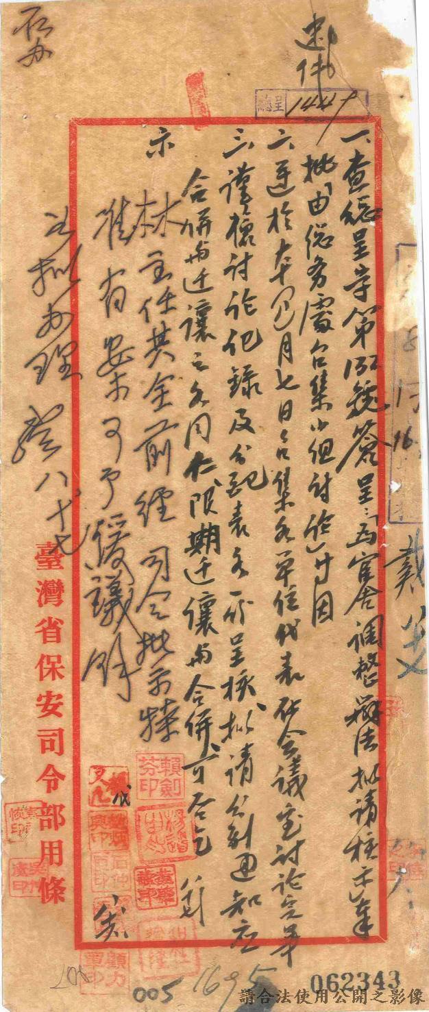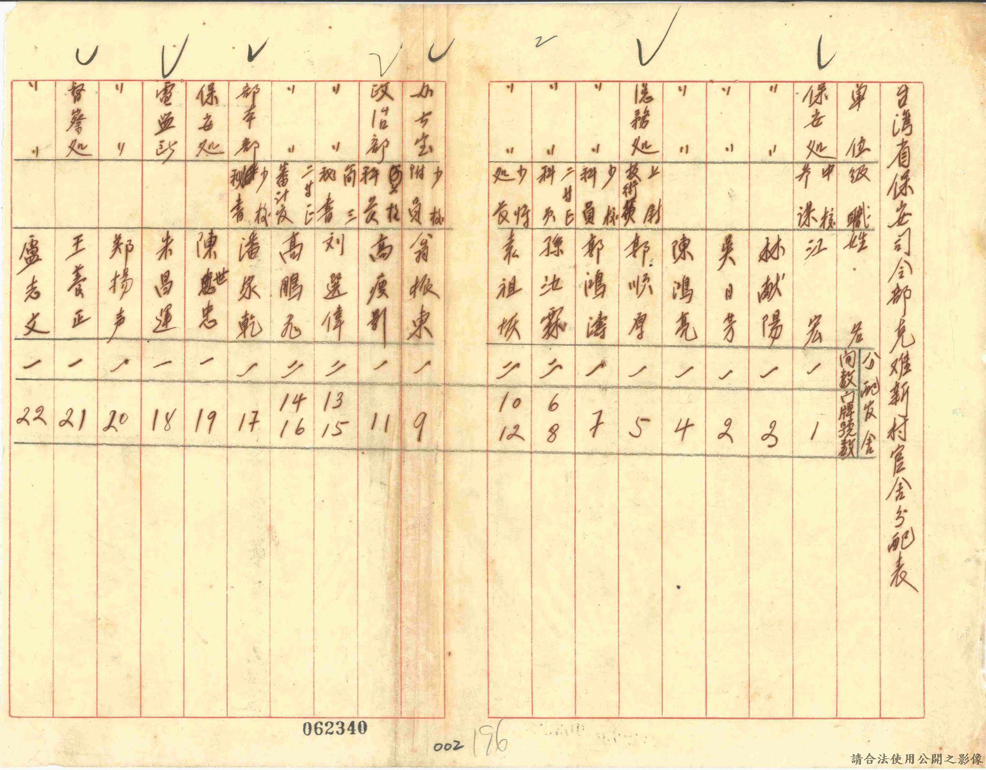 本案為35年間,臺灣省警備總司令部以電報告知所屬勞動訓導營有關先前於澎湖馬公所緝獲的第二中隊隊員,其所涉案件亦已依法送請高雄地方法院檢察處辦理,該營後發電報轉知第二中隊。附訊問筆錄、臺灣省保安司令部職業訓導總隊隊員開補檔案登記表。