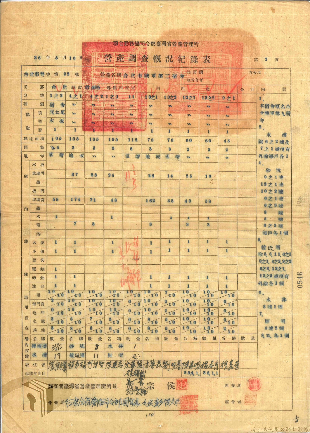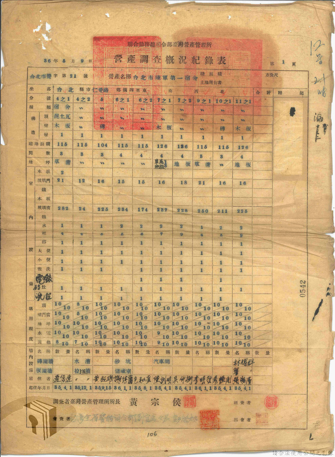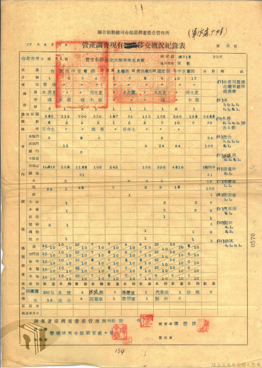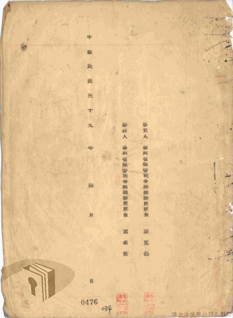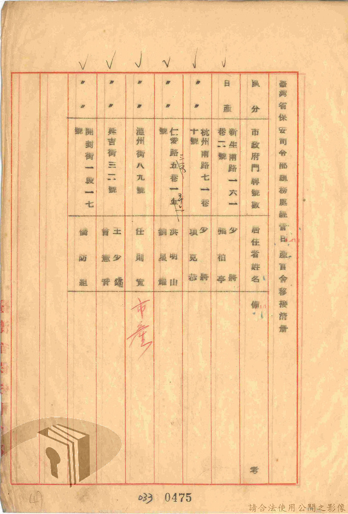 本案為47年間,臺灣省警備總司令部職員居住日產官舍移交冊、臺灣省警備總司令部移交保安司令部官舍清冊、臺灣省警備總司令部移交保安司令部日產官舍清冊、臺灣省保安司令部房地清冊、臺灣警備總司令部固定設施交接清冊等文件資料。