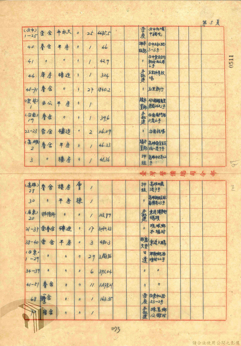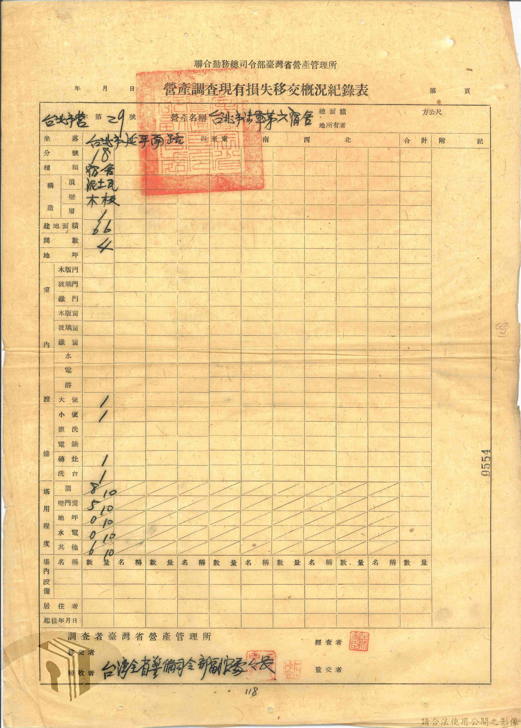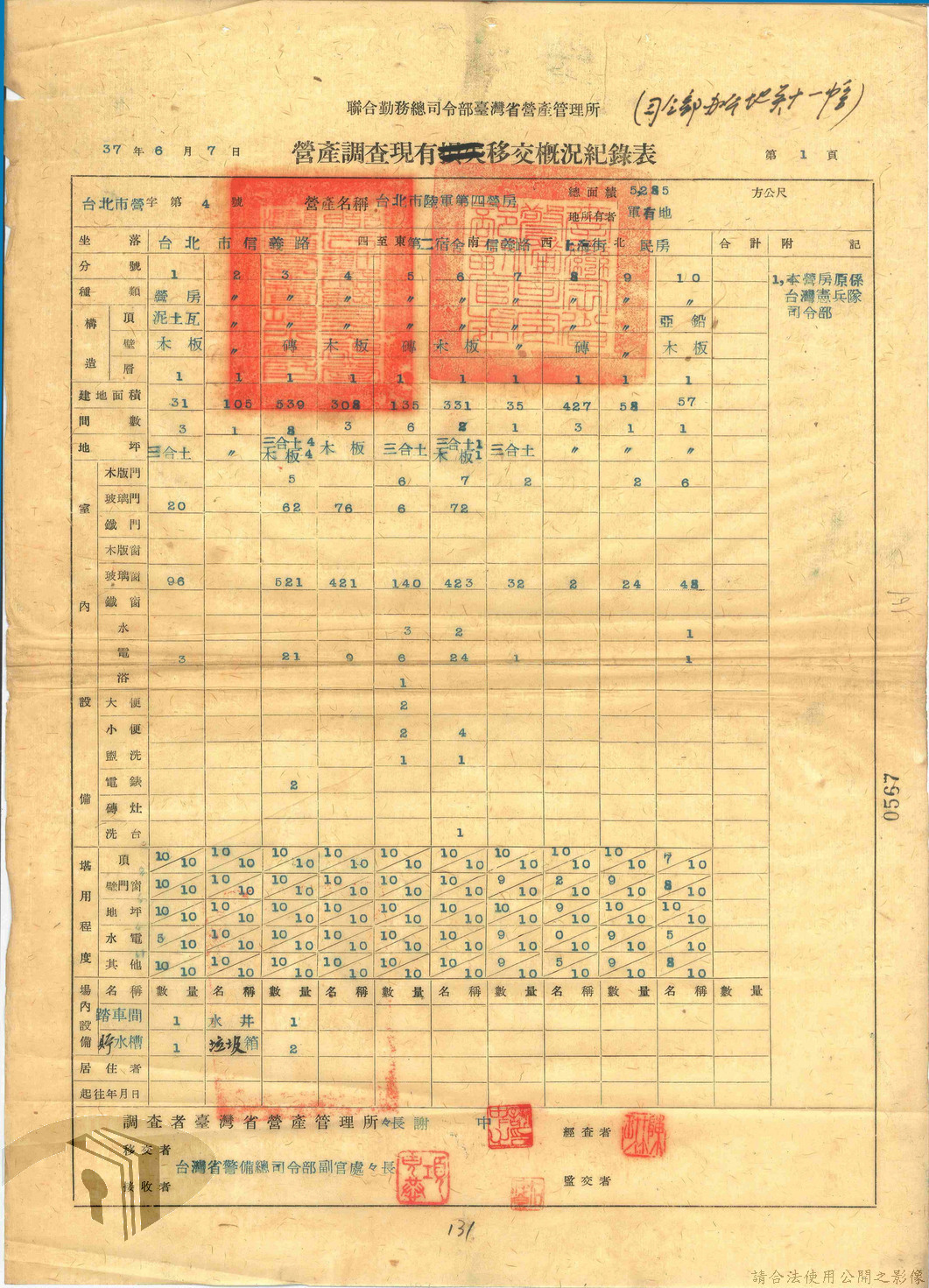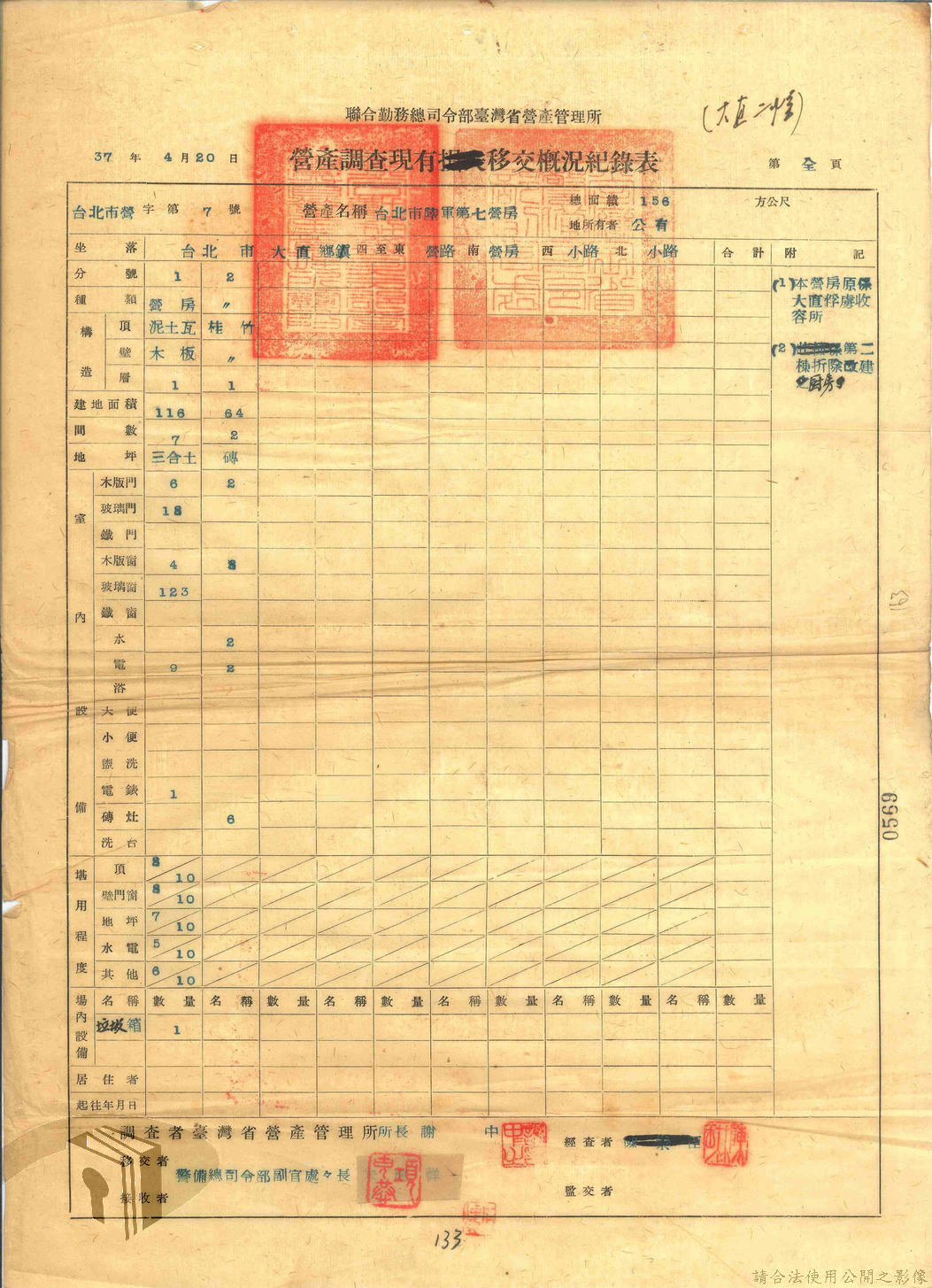 本案為47年間,臺灣省警備總司令部職員居住日產官舍移交冊、臺灣省警備總司令部移交保安司令部官舍清冊、臺灣省警備總司令部移交保安司令部日產官舍清冊、臺灣省保安司令部房地清冊、臺灣警備總司令部固定設施交接清冊等文件資料。