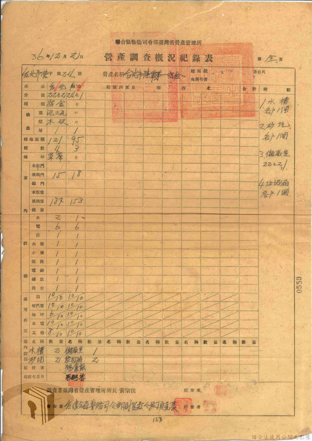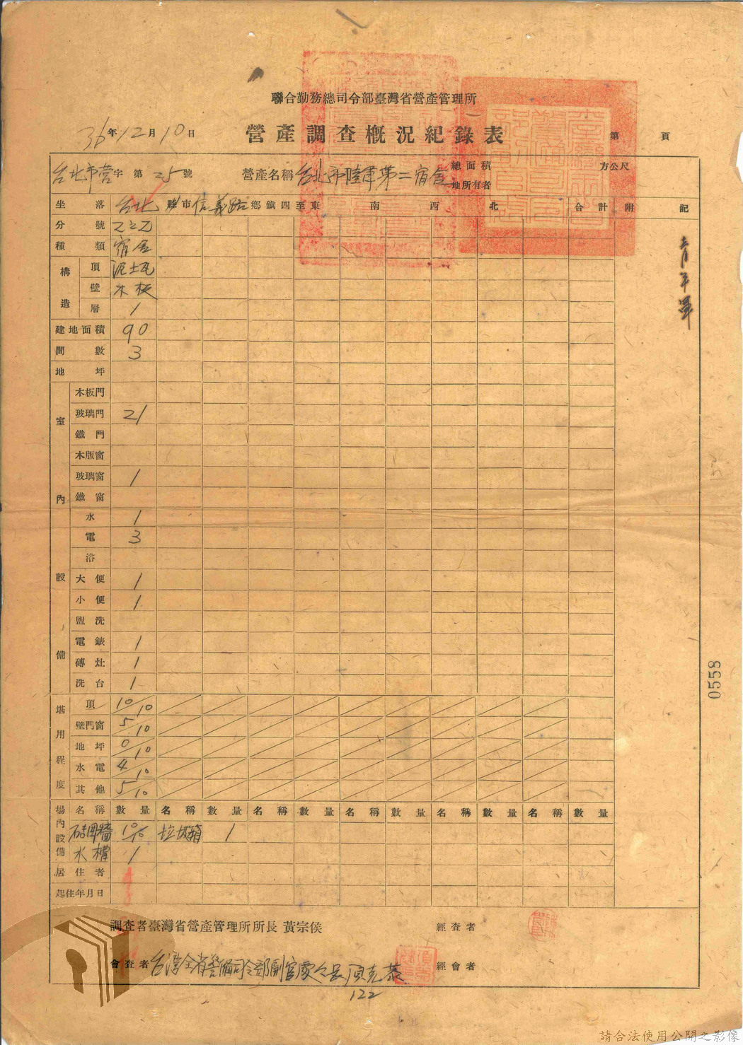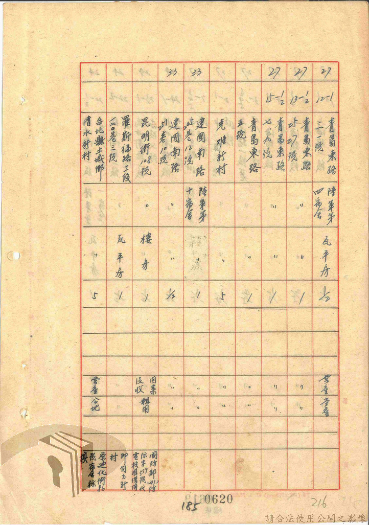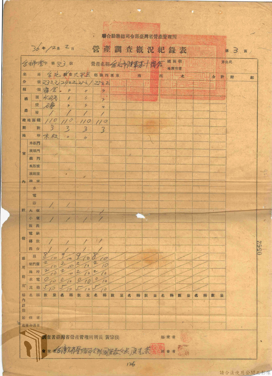 本案為47年間,臺灣省警備總司令部職員居住日產官舍移交冊、臺灣省警備總司令部移交保安司令部官舍清冊、臺灣省警備總司令部移交保安司令部日產官舍清冊、臺灣省保安司令部房地清冊、臺灣警備總司令部固定設施交接清冊等文件資料。