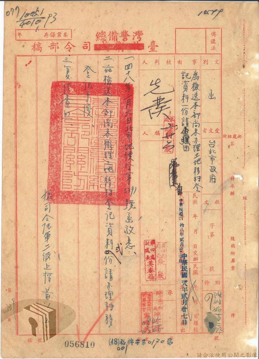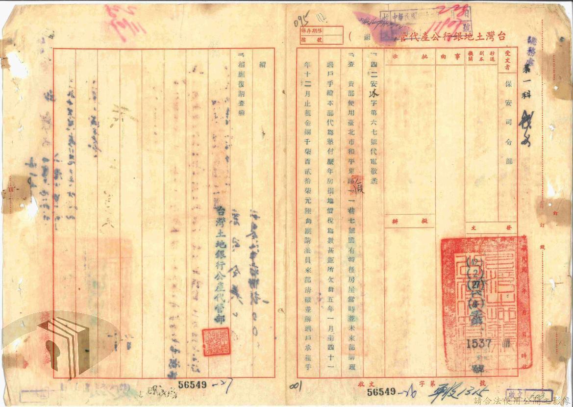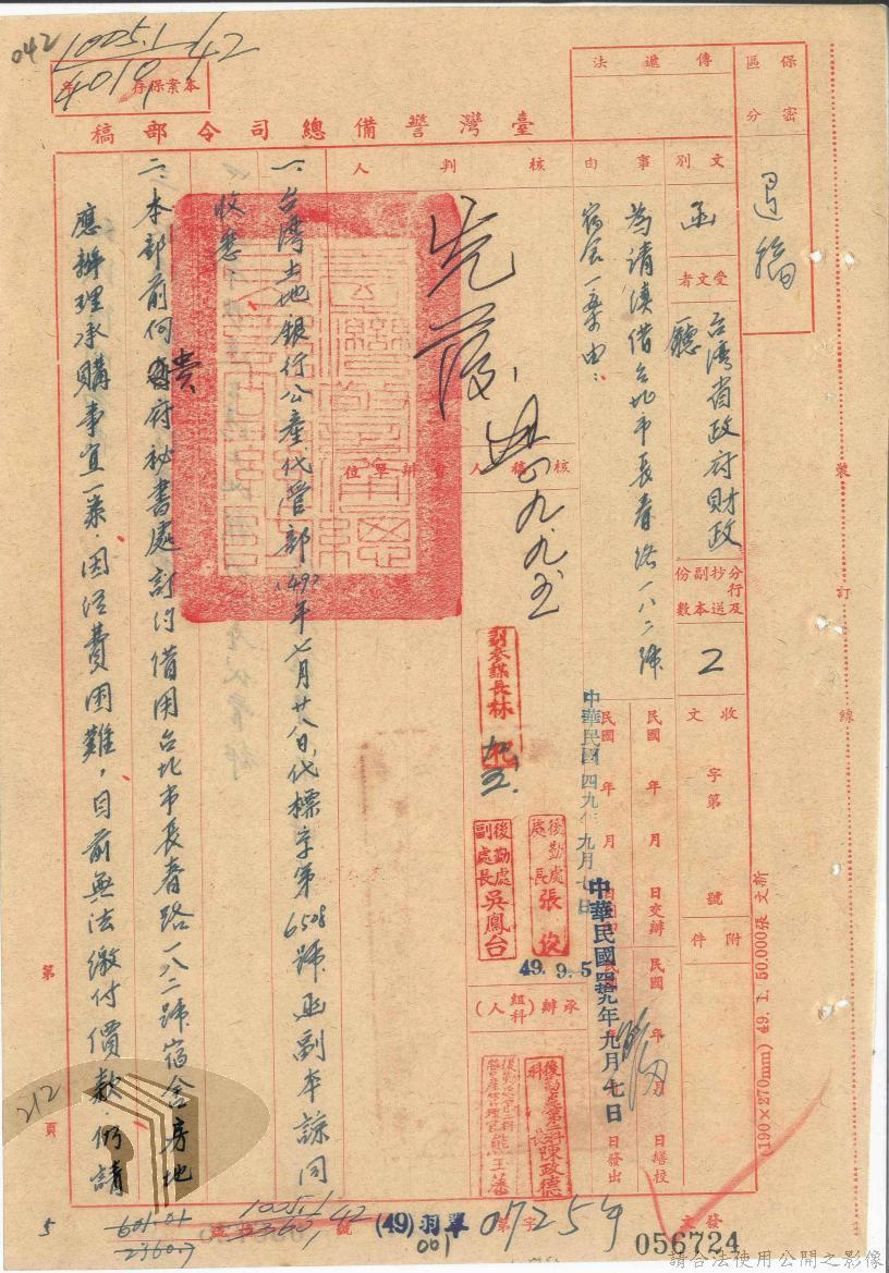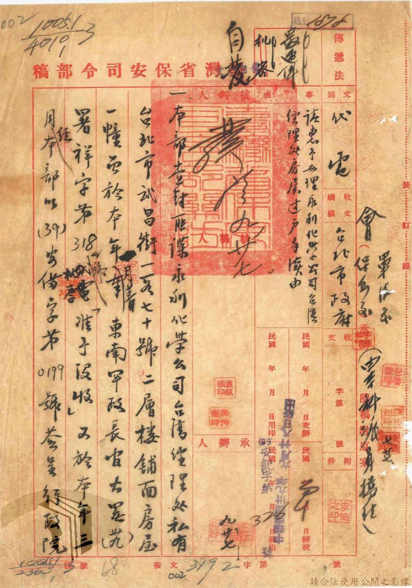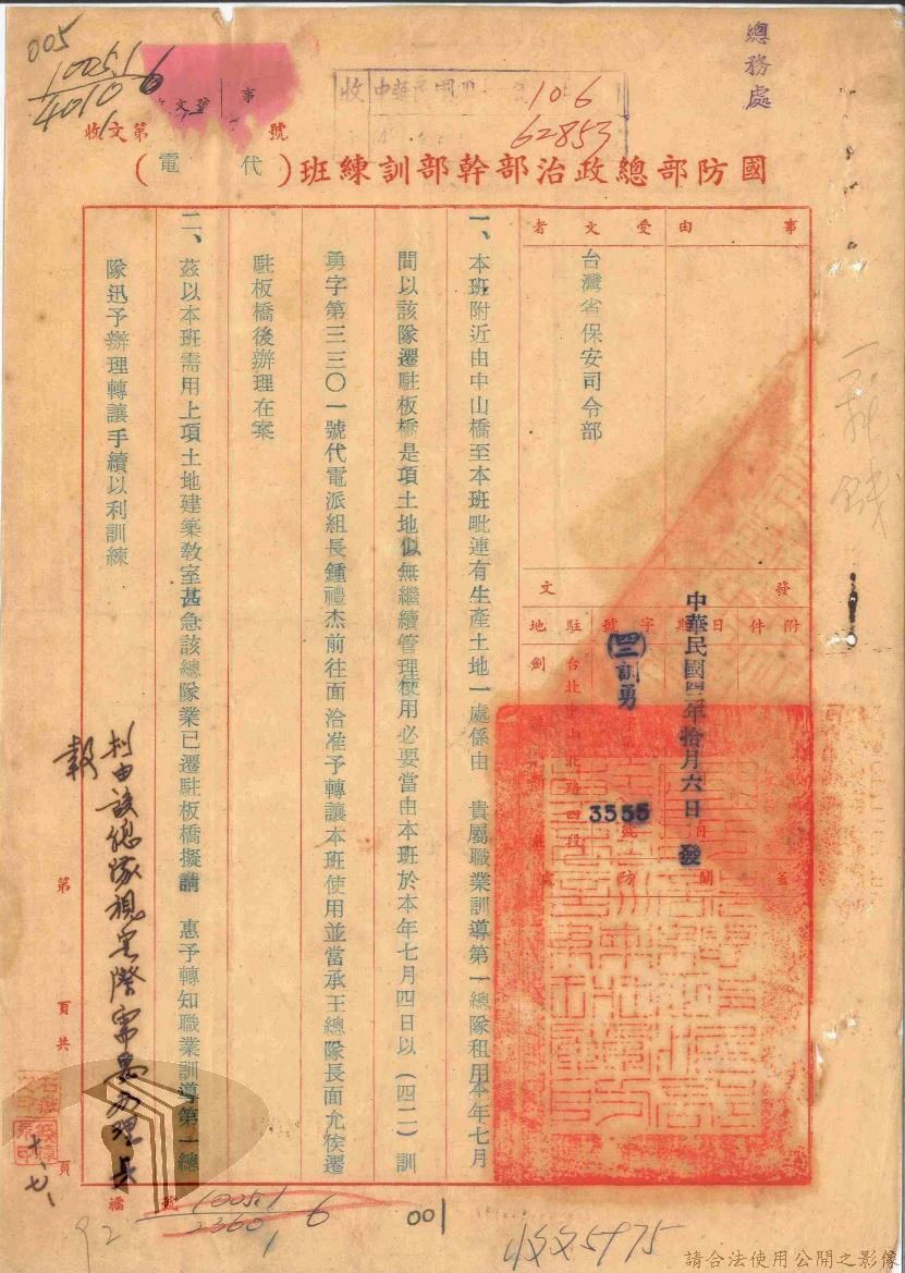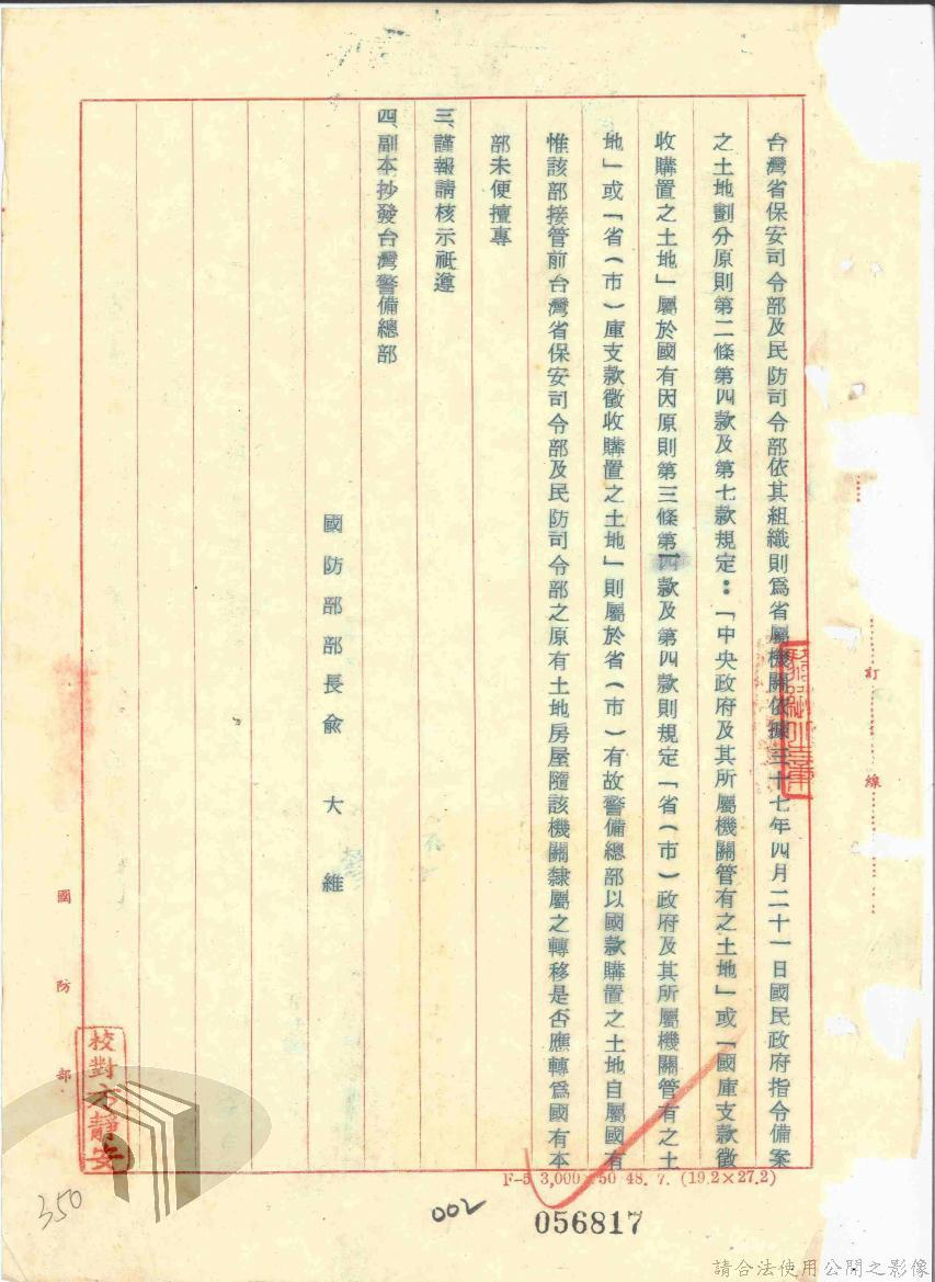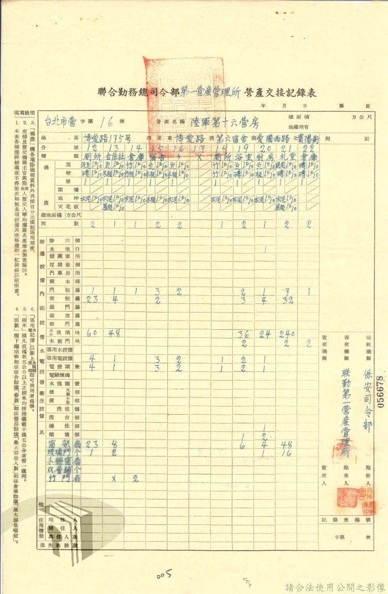 本案為38至49年間,有關國防部後備司令部〈前台灣警備總司令部〉所有台北市內房屋土地使用情況,與軍管區司令部、聯勤總部、永利化學公司、台灣金屬品冶製公會、台北市工務局等單位出售、購買、借用、移交等事宜。