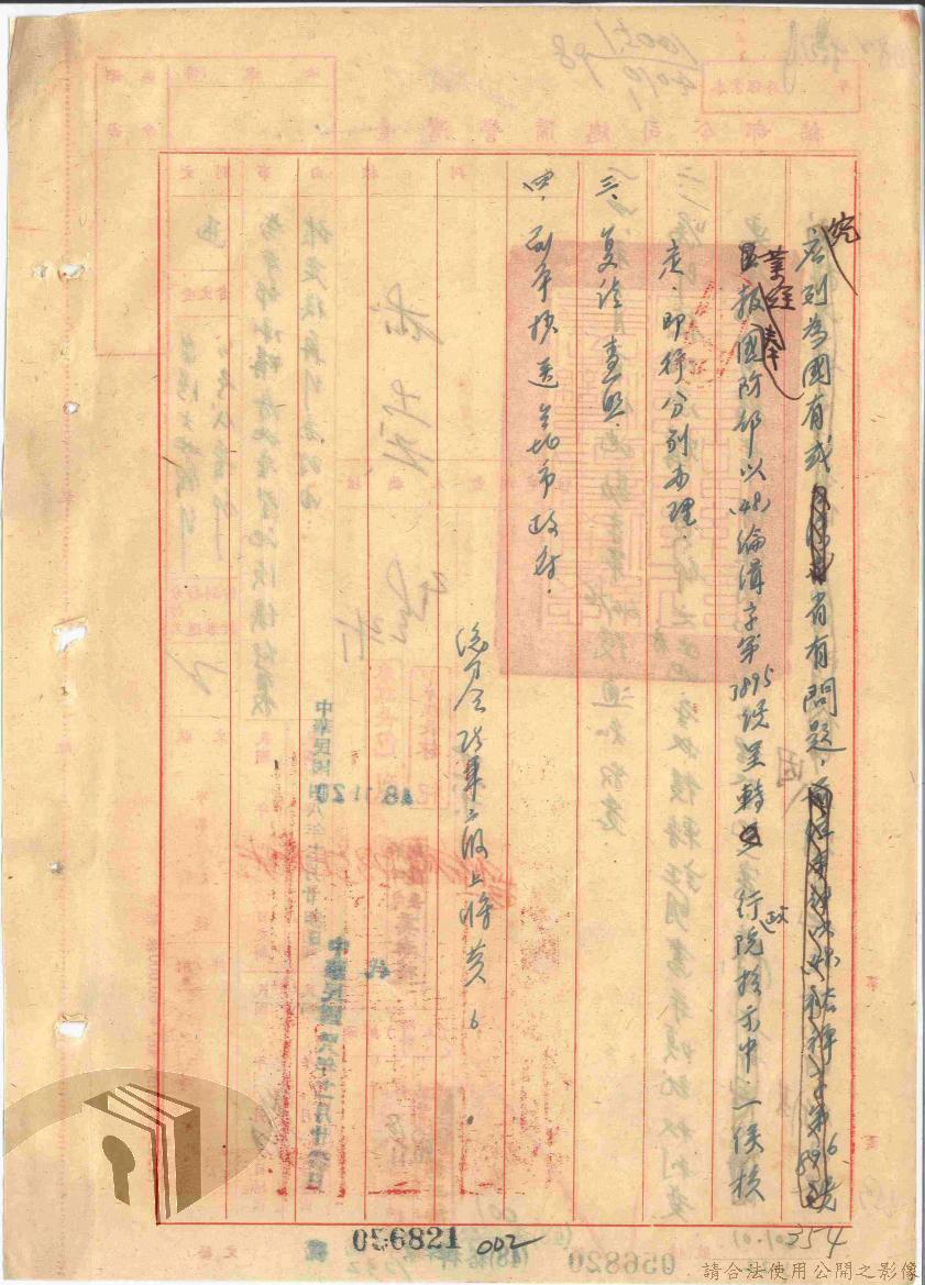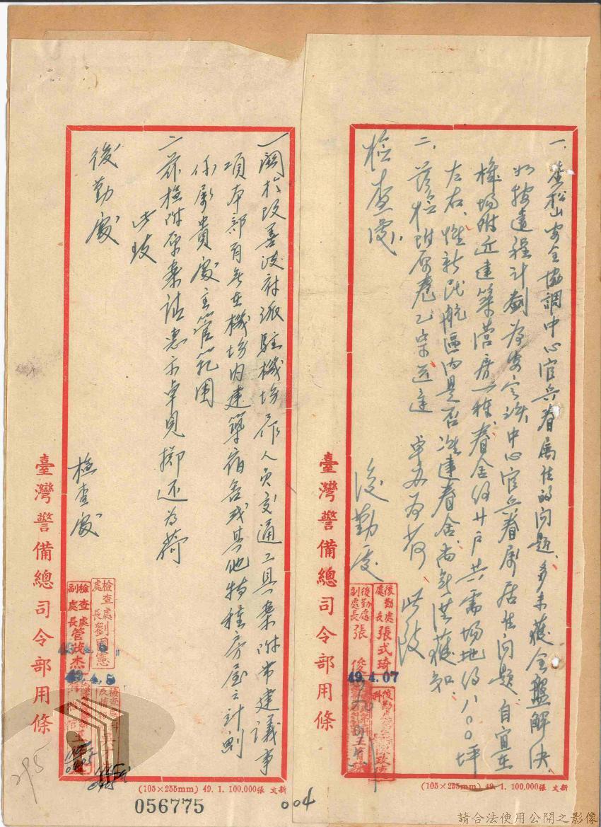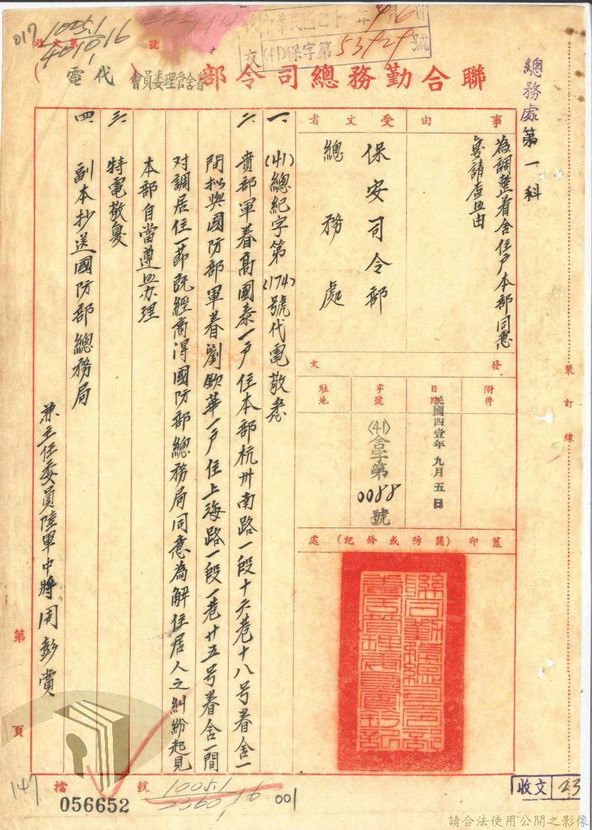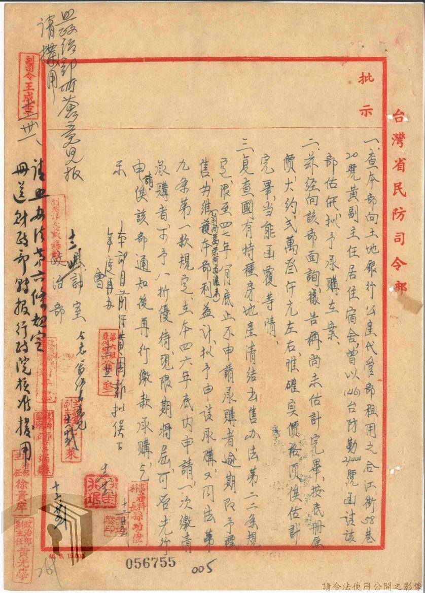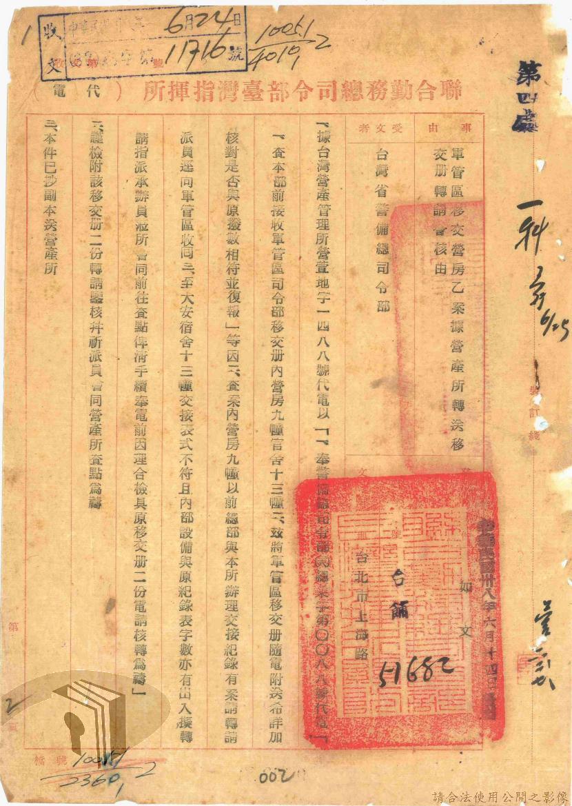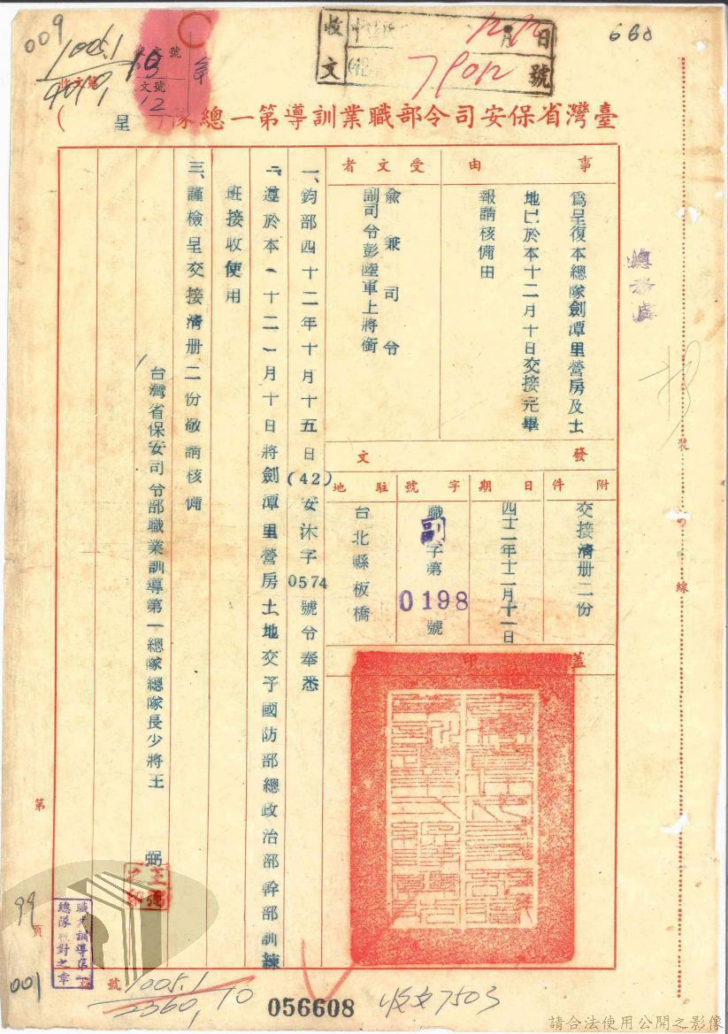 本案為38至49年間,有關國防部後備司令部〈前台灣警備總司令部〉所有台北市內房屋土地使用情況,與軍管區司令部、聯勤總部、永利化學公司、台灣金屬品冶製公會、台北市工務局等單位出售、購買、借用、移交等事宜。