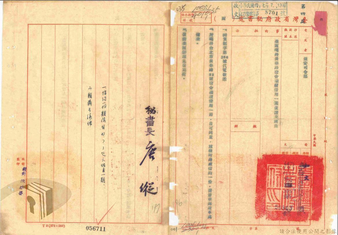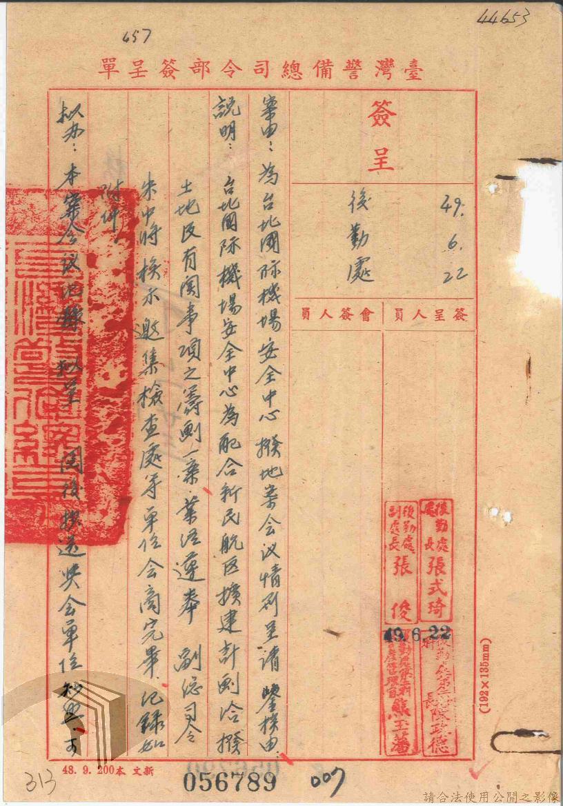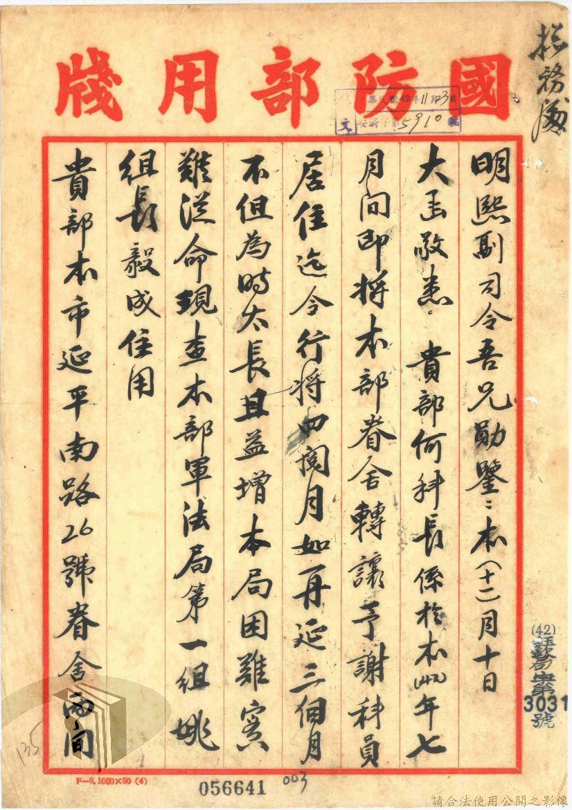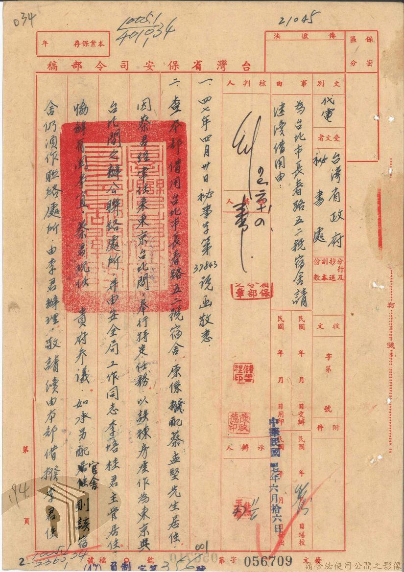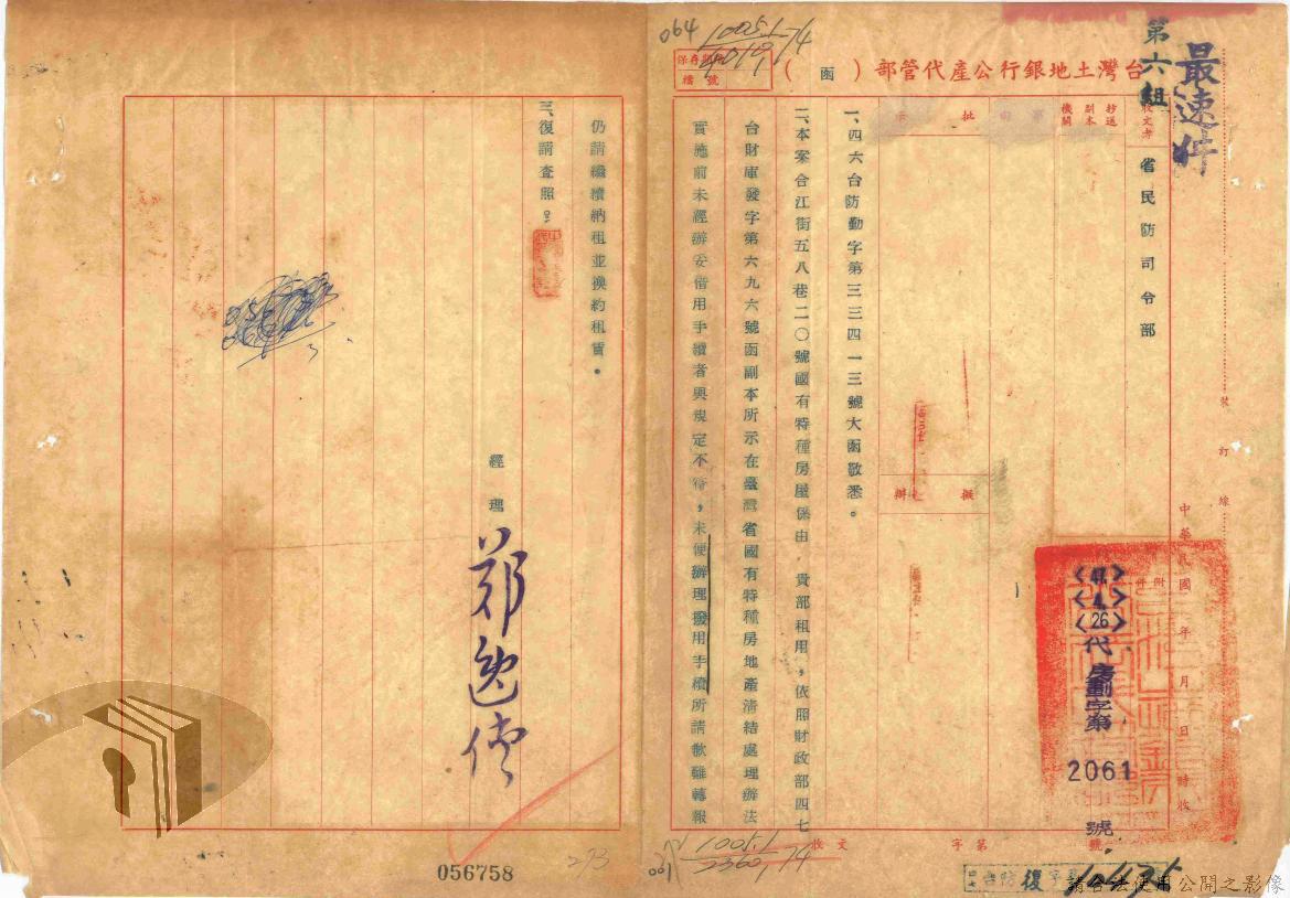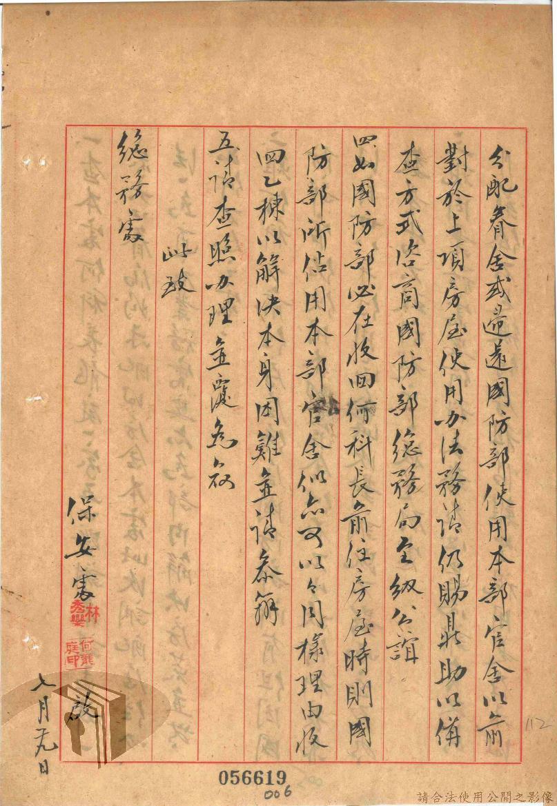 本案為38至49年間,有關國防部後備司令部〈前台灣警備總司令部〉所有台北市內房屋土地使用情況,與軍管區司令部、聯勤總部、永利化學公司、台灣金屬品冶製公會、台北市工務局等單位出售、購買、借用、移交等事宜。
