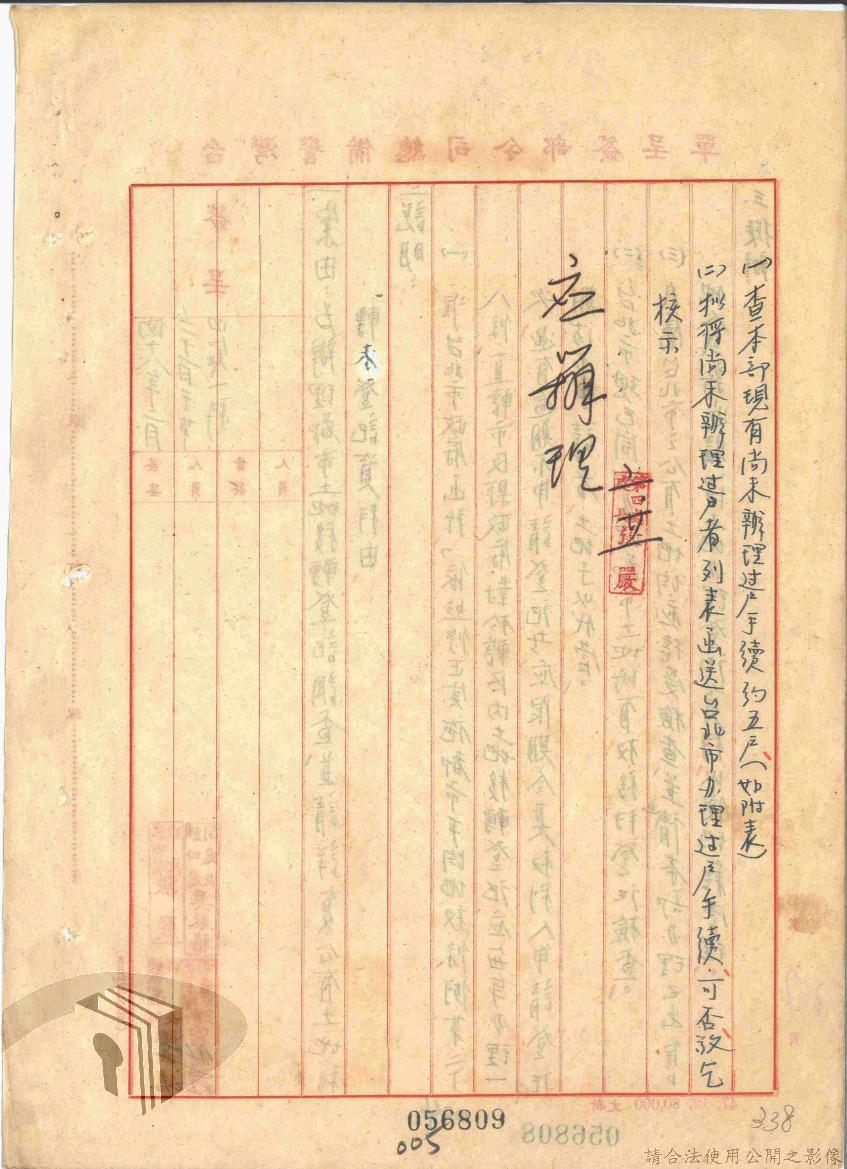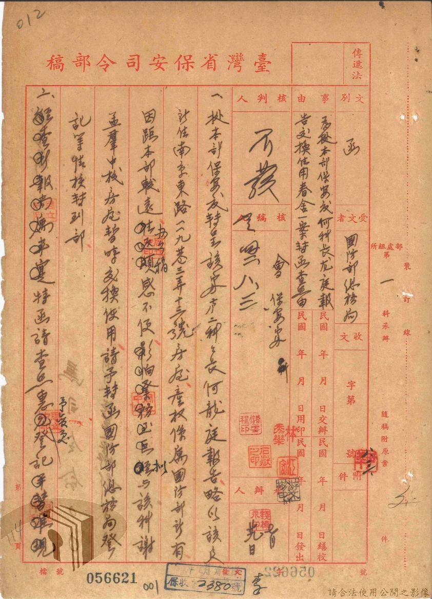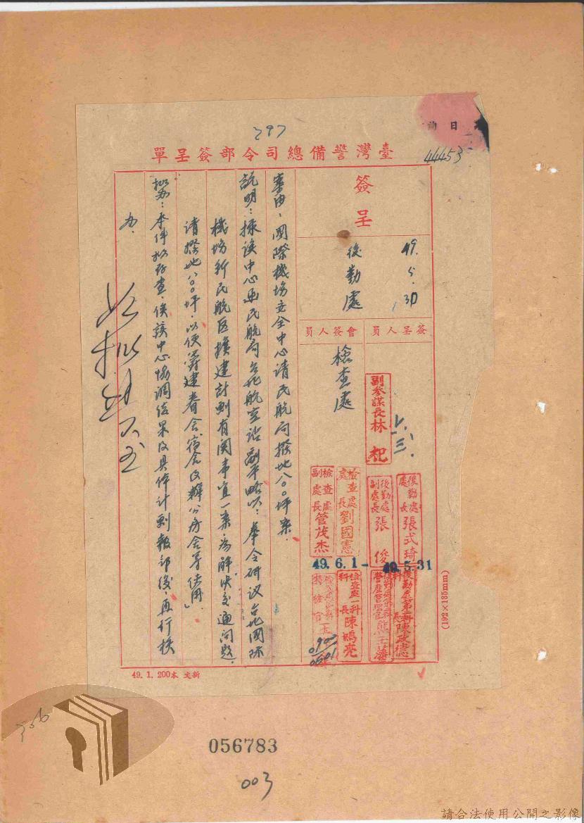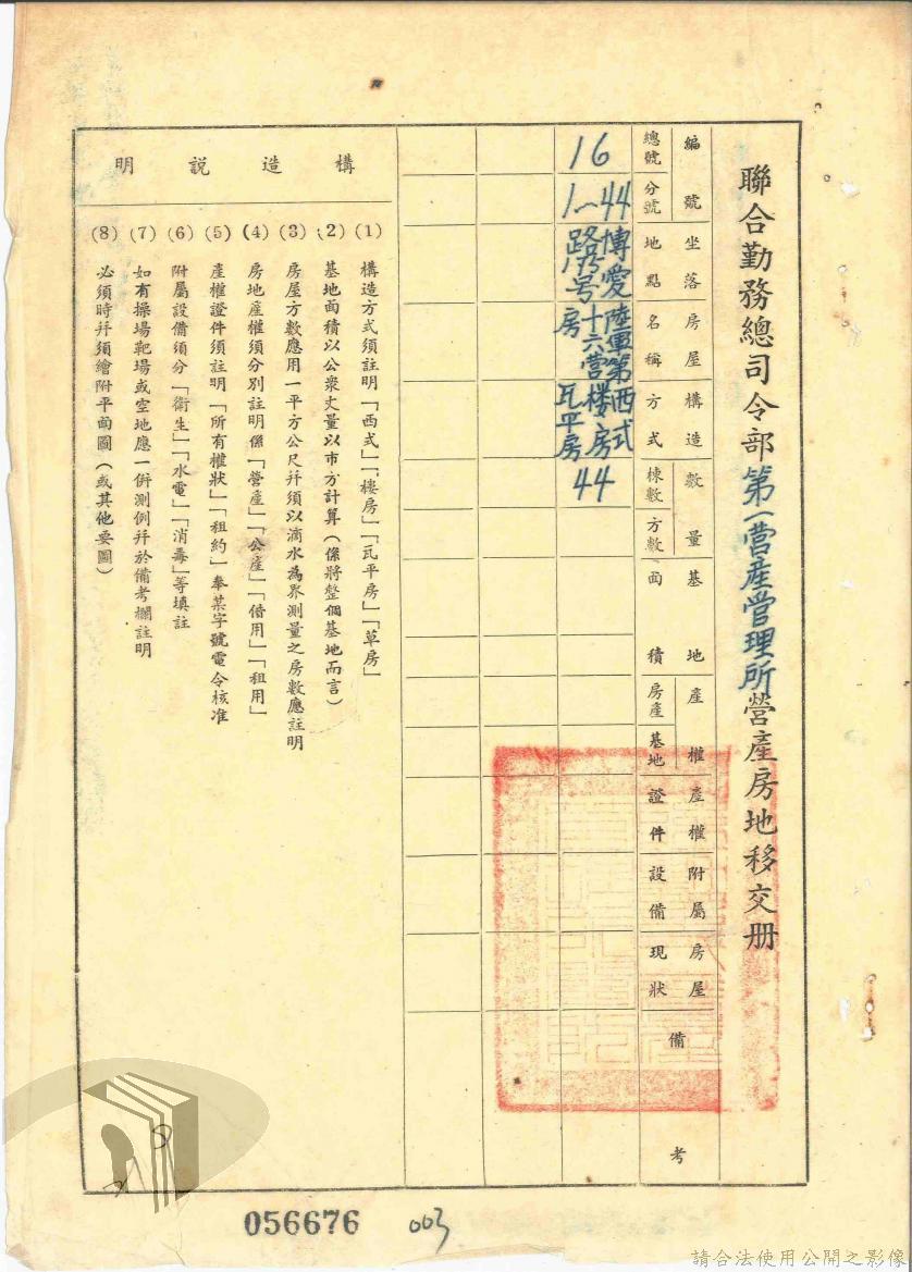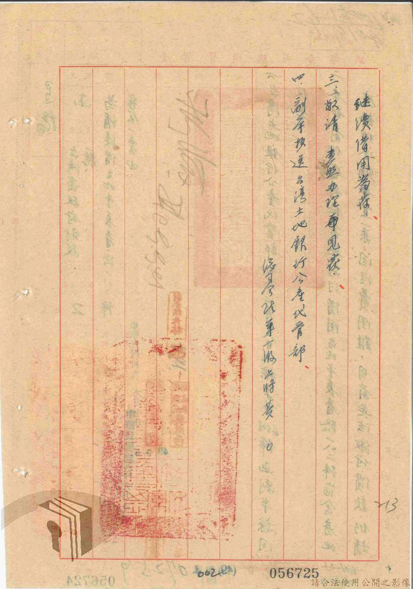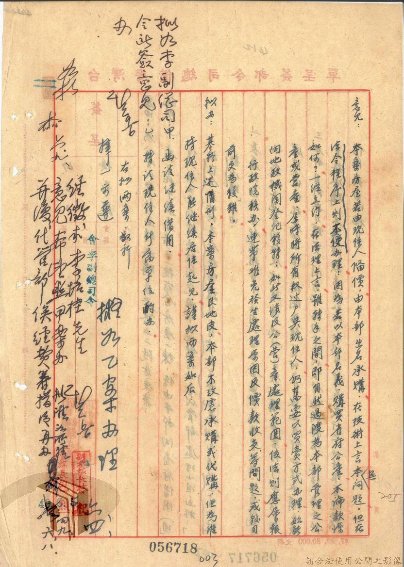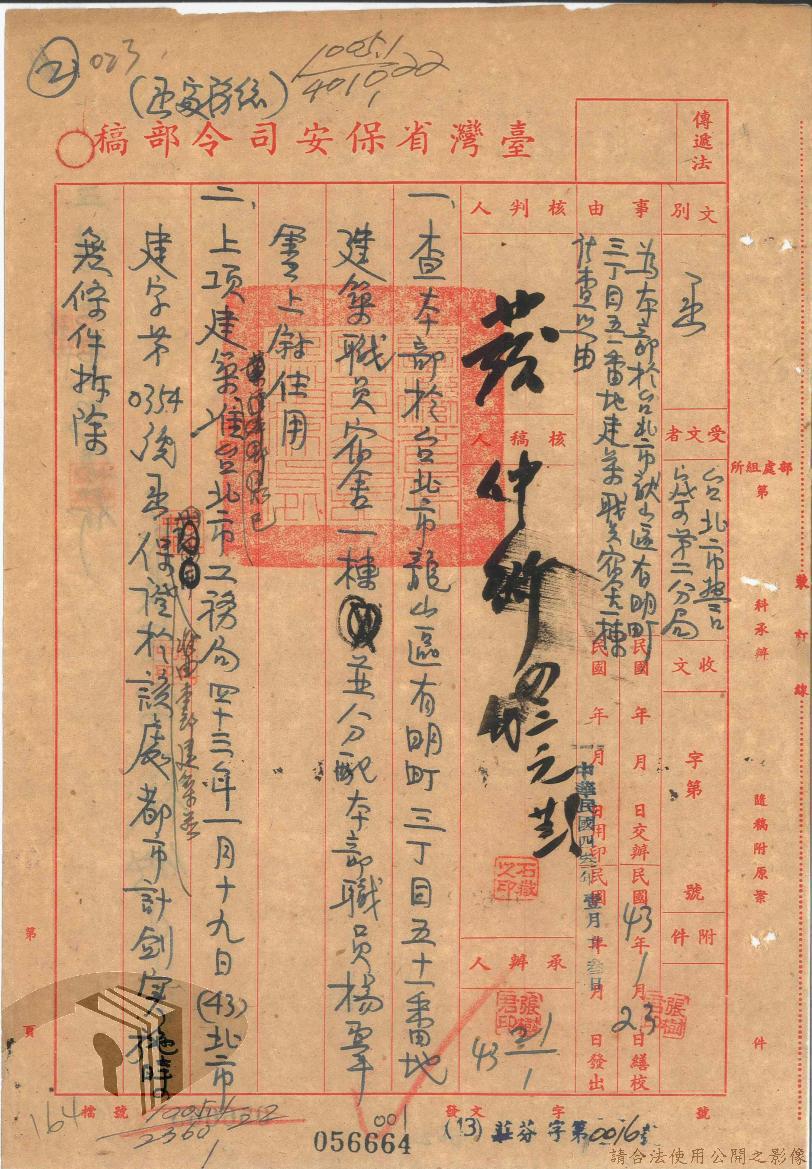 本案為38至49年間,有關國防部後備司令部〈前台灣警備總司令部〉所有台北市內房屋土地使用情況,與軍管區司令部、聯勤總部、永利化學公司、台灣金屬品冶製公會、台北市工務局等單位出售、購買、借用、移交等事宜。