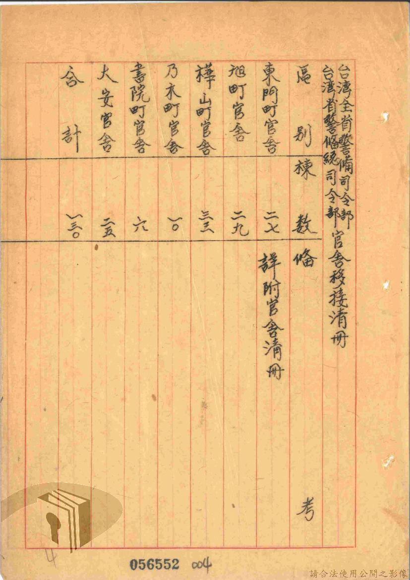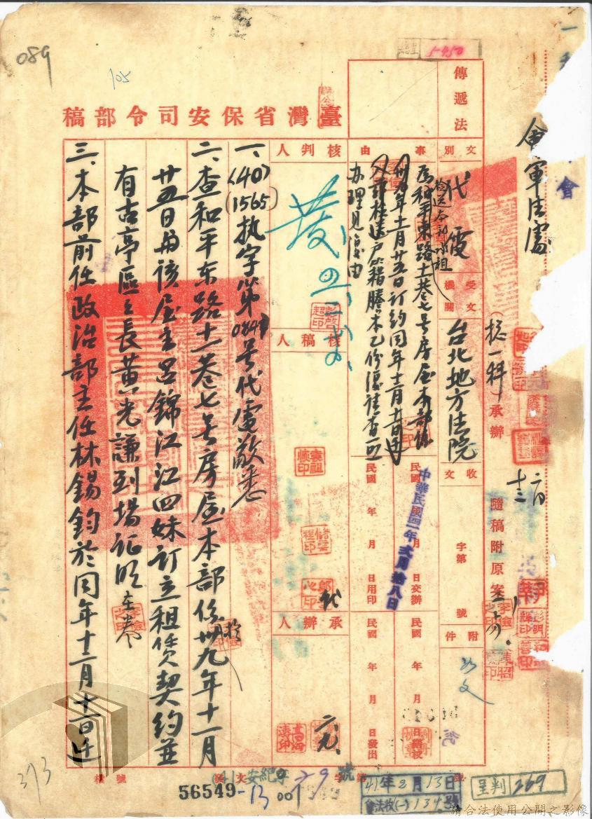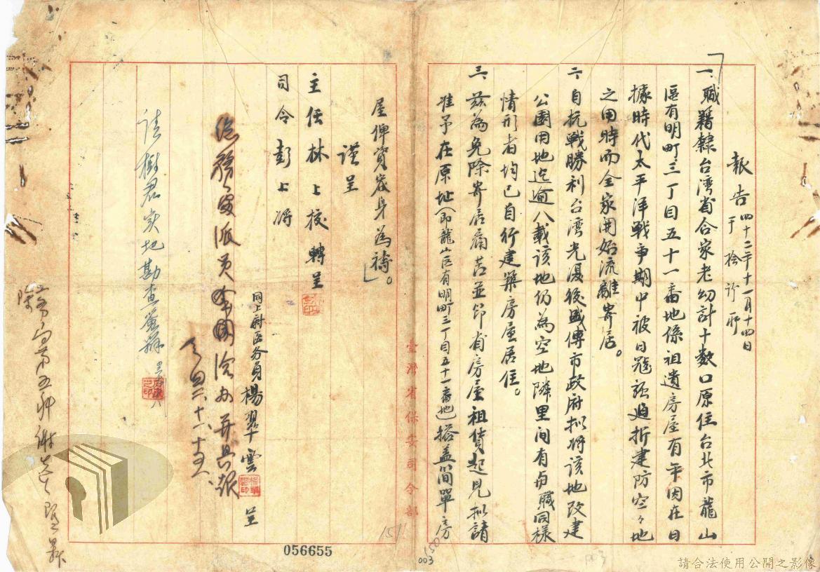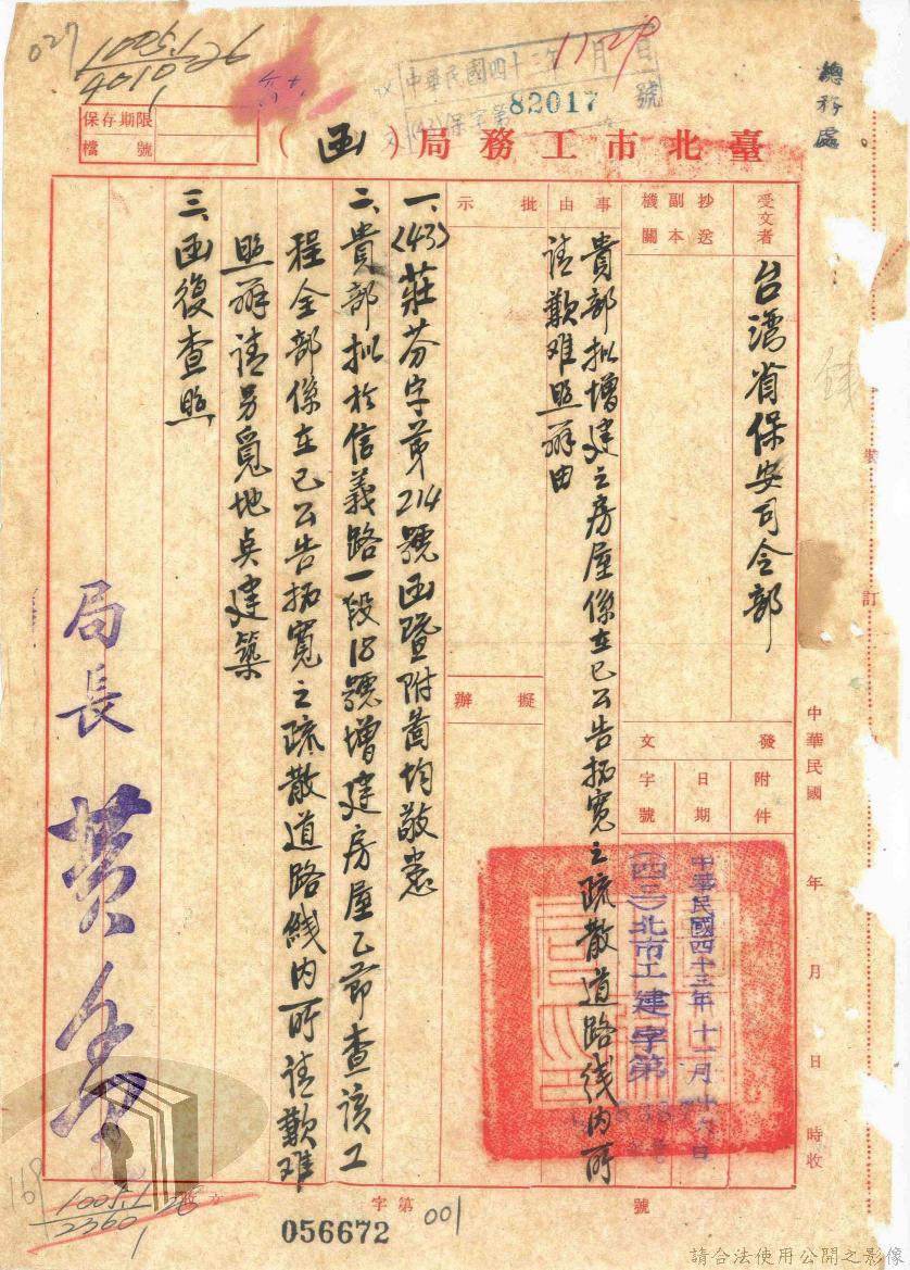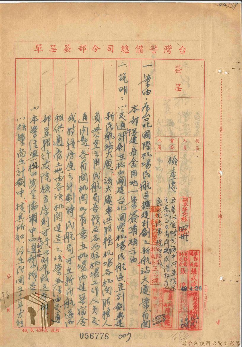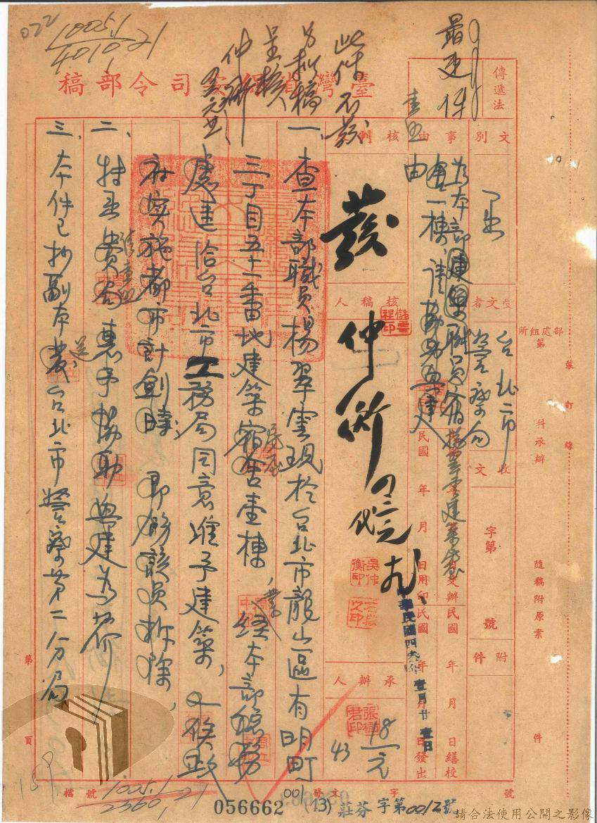 本案為38至49年間,有關國防部後備司令部〈前台灣警備總司令部〉所有台北市內房屋土地使用情況,與軍管區司令部、聯勤總部、永利化學公司、台灣金屬品冶製公會、台北市工務局等單位出售、購買、借用、移交等事宜。