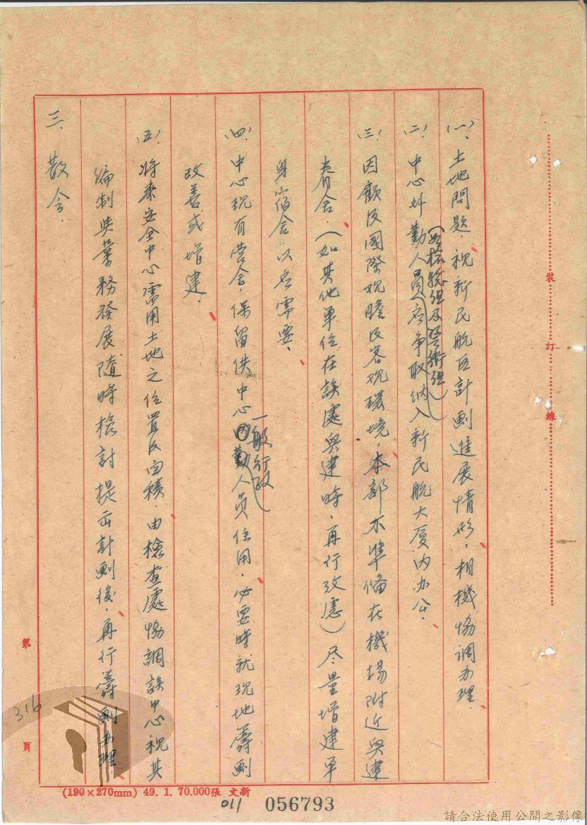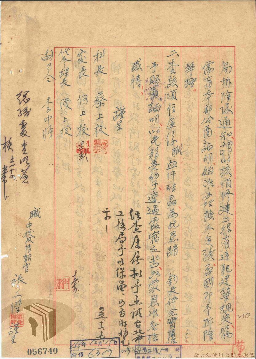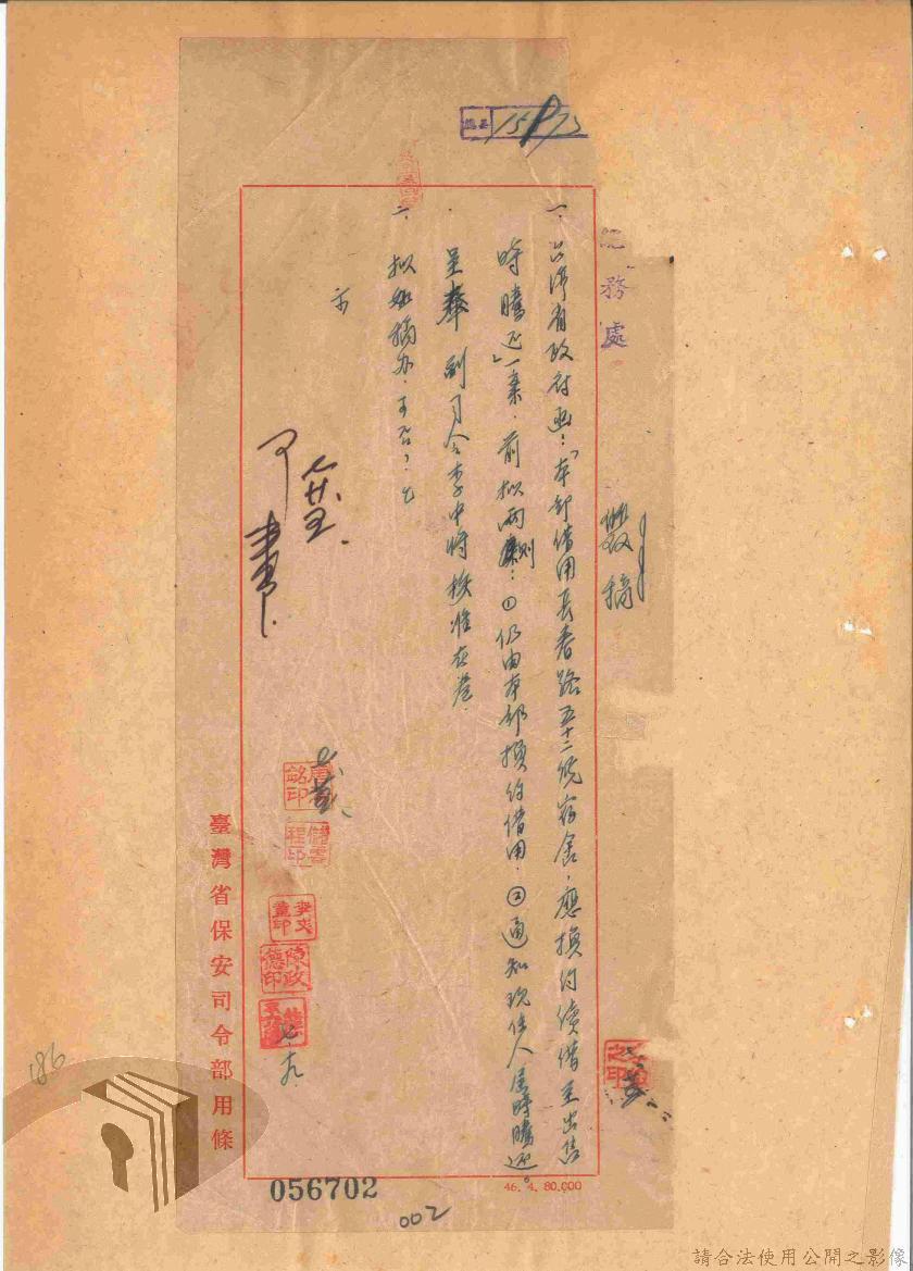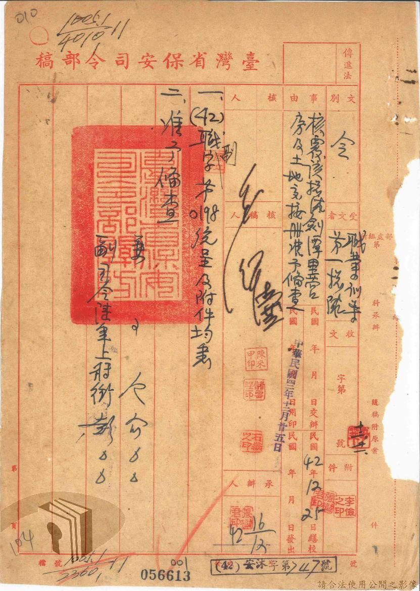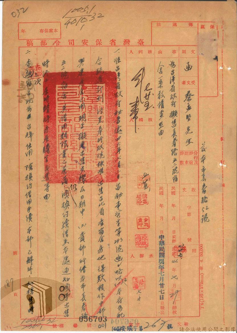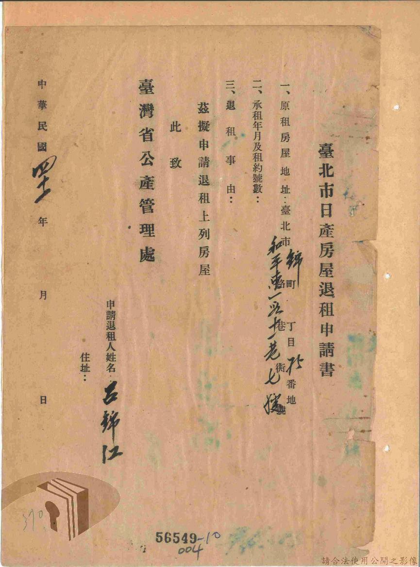 本案為38至49年間,有關國防部後備司令部〈前台灣警備總司令部〉所有台北市內房屋土地使用情況,與軍管區司令部、聯勤總部、永利化學公司、台灣金屬品冶製公會、台北市工務局等單位出售、購買、借用、移交等事宜。