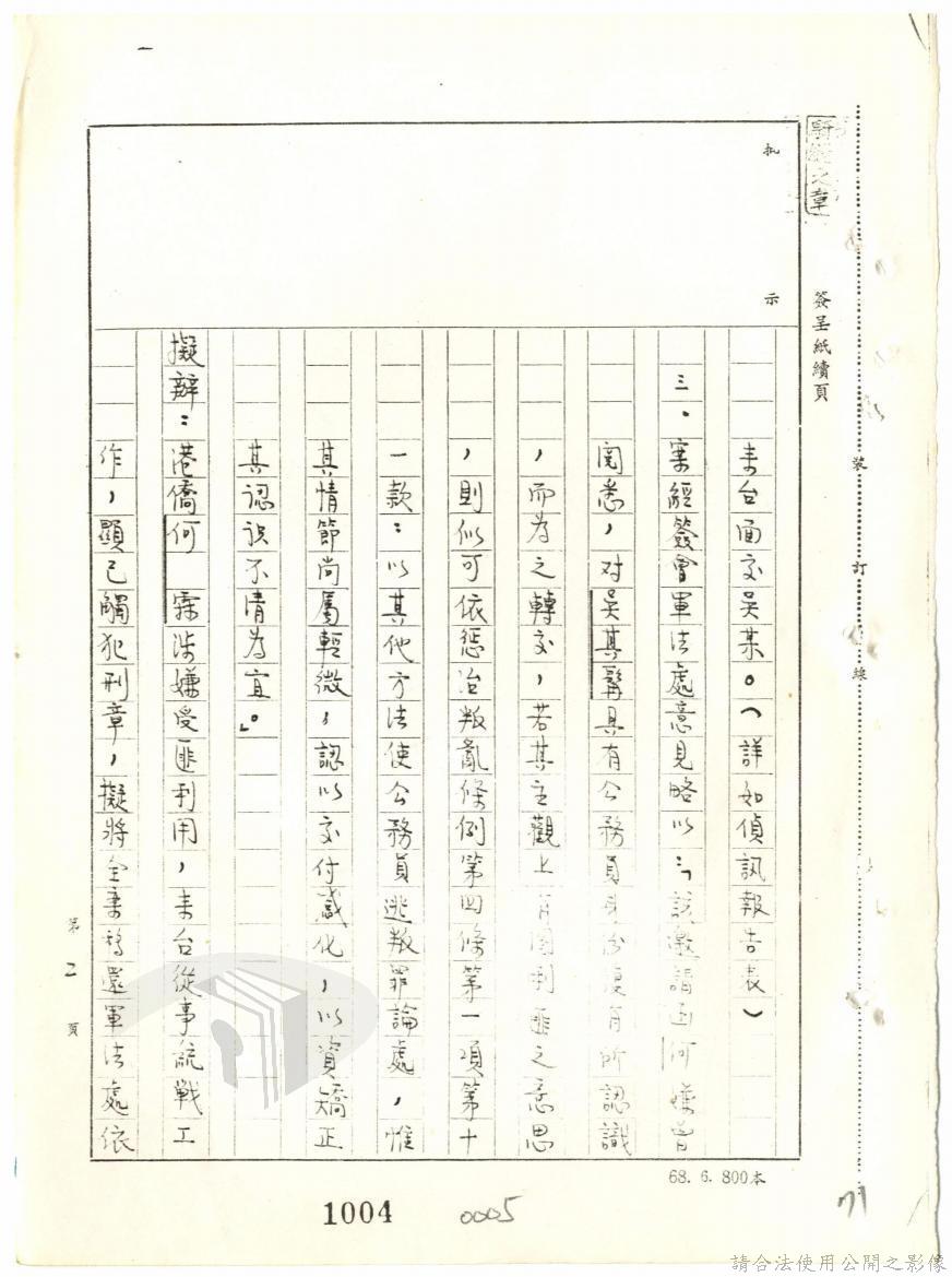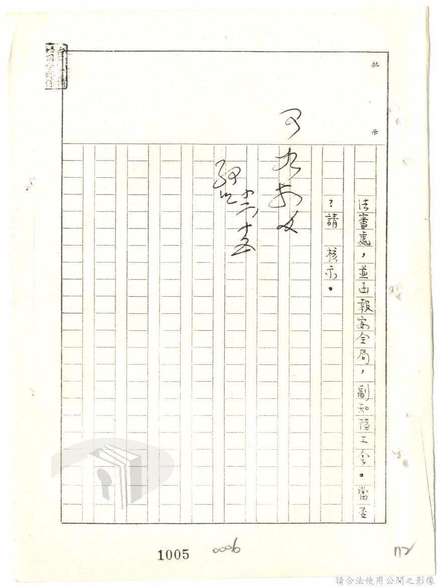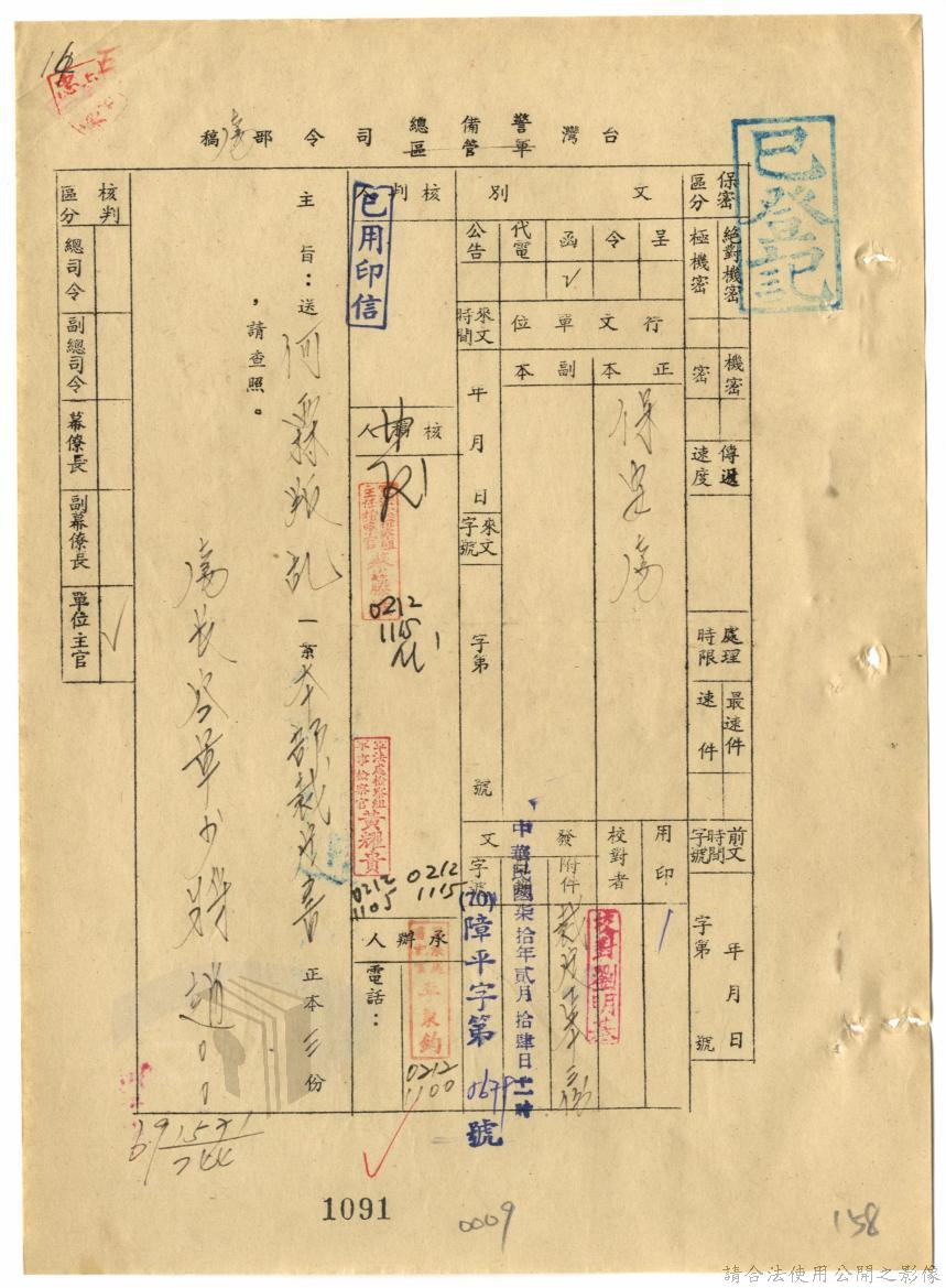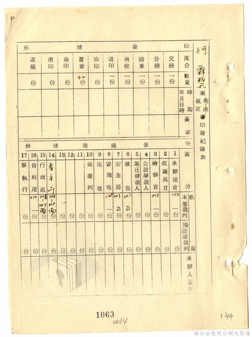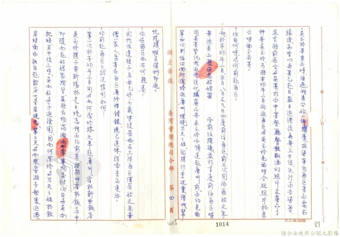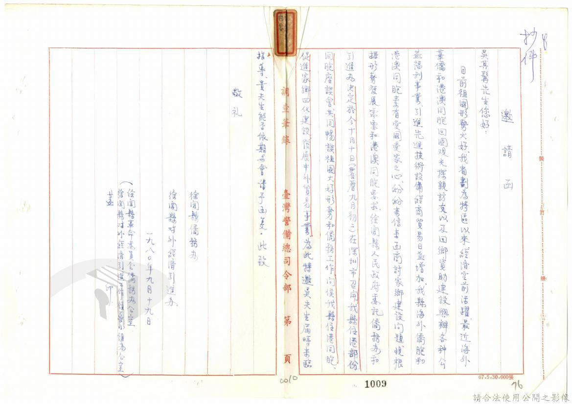 本案為69至72年間,臺灣警備總司令部保安處將華僑涉案相關資料移送臺灣警備總司令部審判,該部裁定予以交付感化,後臺灣警備總司令部仁愛教育實驗所因為該員感化期滿將其考核資料檢送臺灣警備總司令部報請結訓保釋,經警總審查考核後同意結訓。附筆錄、證人結文、書信、偵訊報告表、新生考核表、裁定書等文件資料。