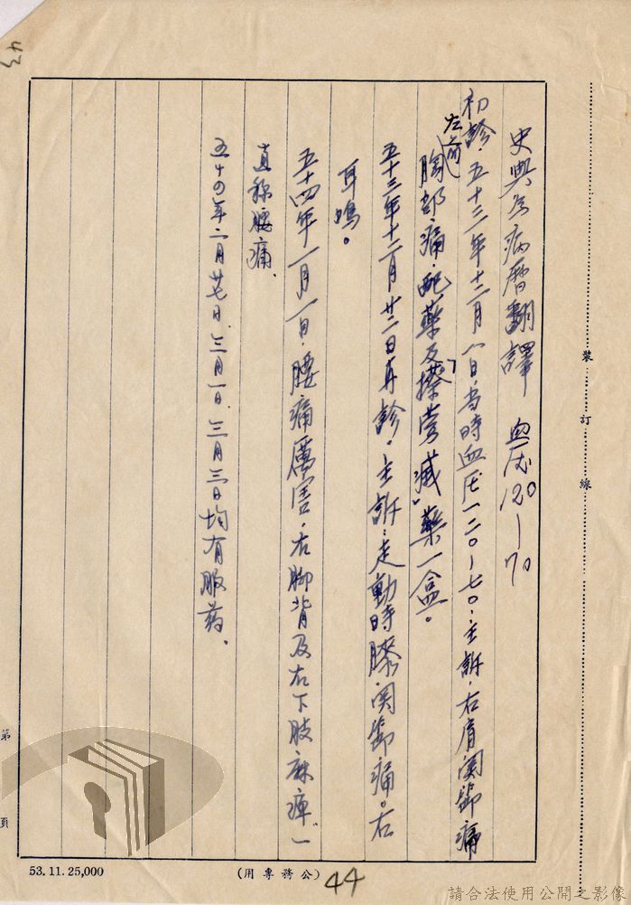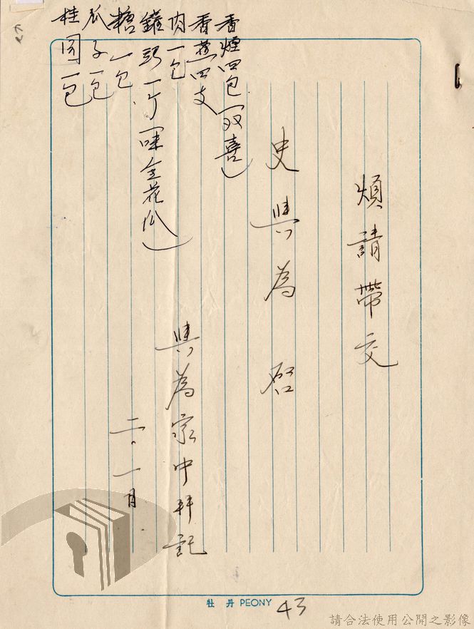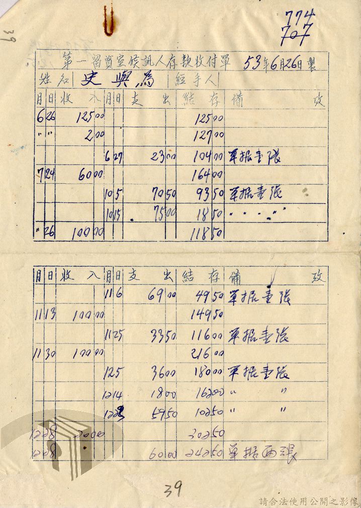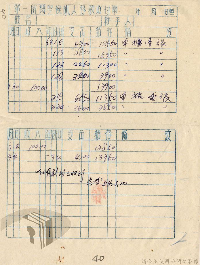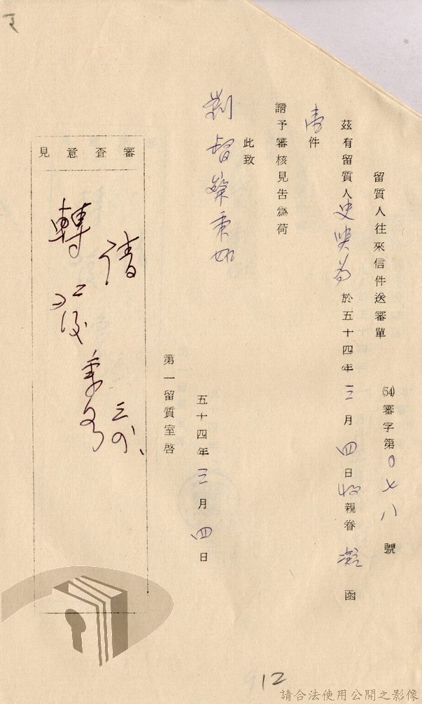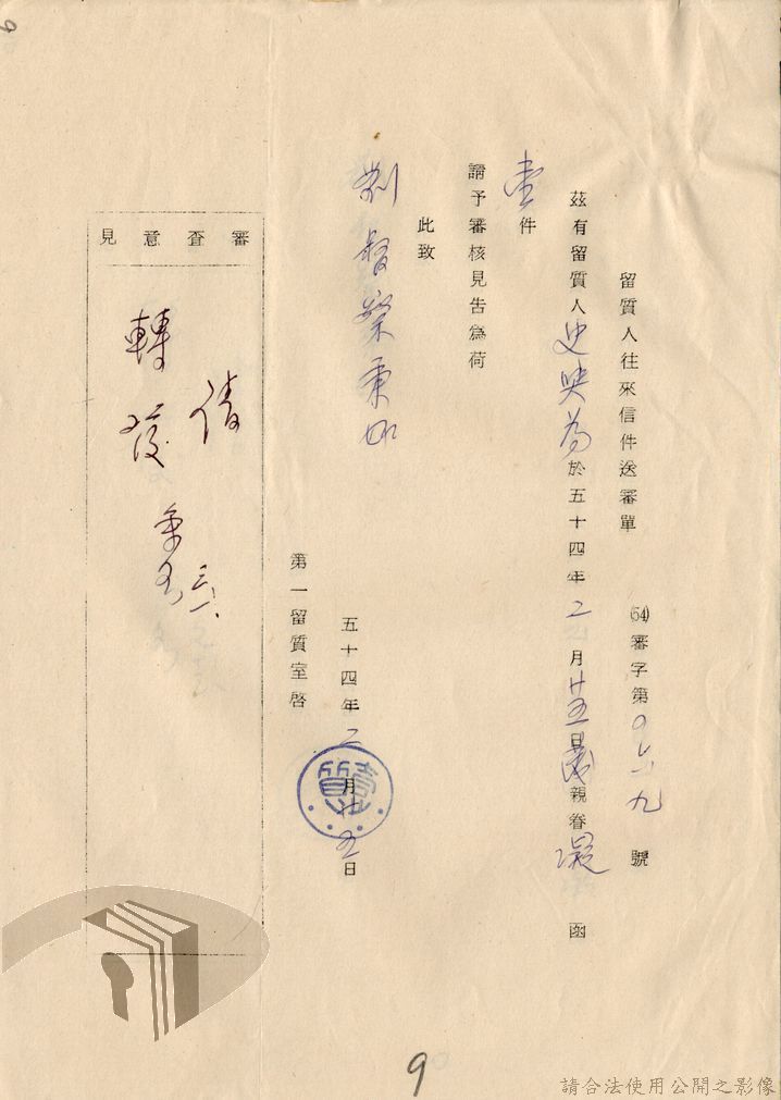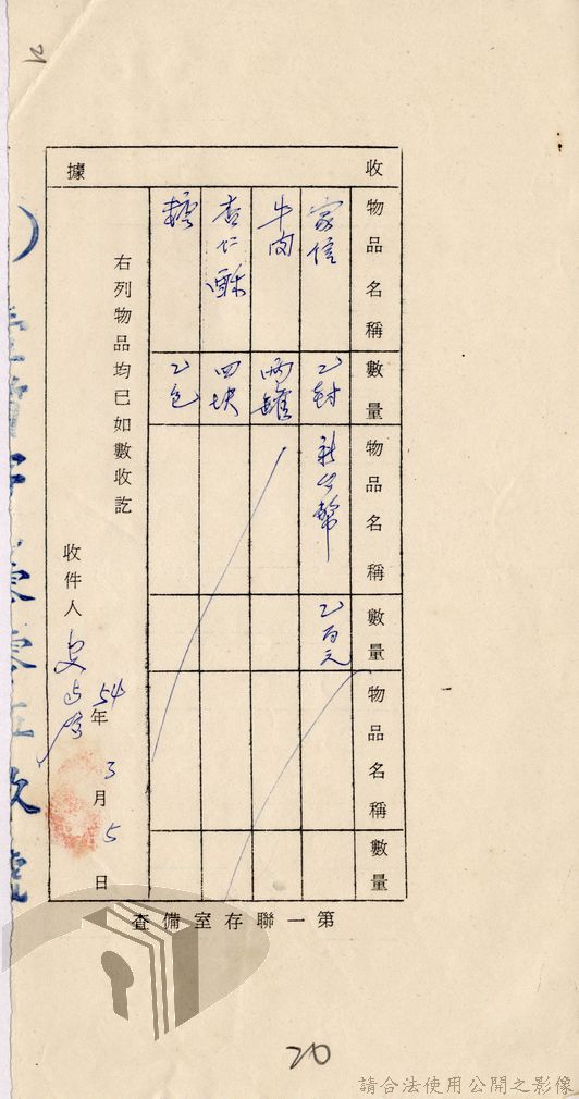 本案為53至54年間,司法行政部調查局留質室被留質人資料袋,內有身份名籍卡、指紋卡片、通知單、收支登記簿、收付單、意見表、財物收發保管簿及名籍登記表,登記表載有被留質人之編號、姓名、性別、年齡、籍貫、通訊處、身份證字號、職務、黨派歸屬及經歷等欄位資料;財物收發保管簿載有被留質人之財物名稱等欄位資料。