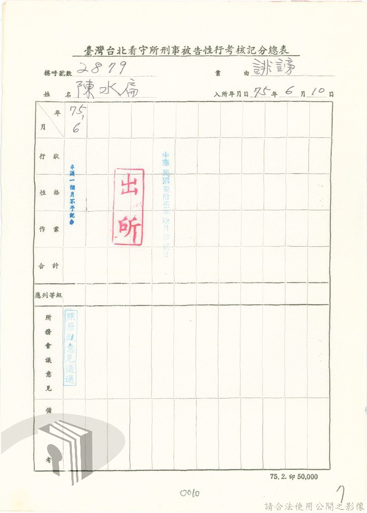 本案為75年間,臺灣臺北地方法院檢察處通知臺灣臺北地方法院看守所立即將被告提交至警帶處候訊。附刑事被告身份簿、刑事被告人相表、臺灣臺北地方法院檢察處檢察官押票、被告紋身紀錄表、被告通信對象調查表、被告收發書信登記簿等文件資料。