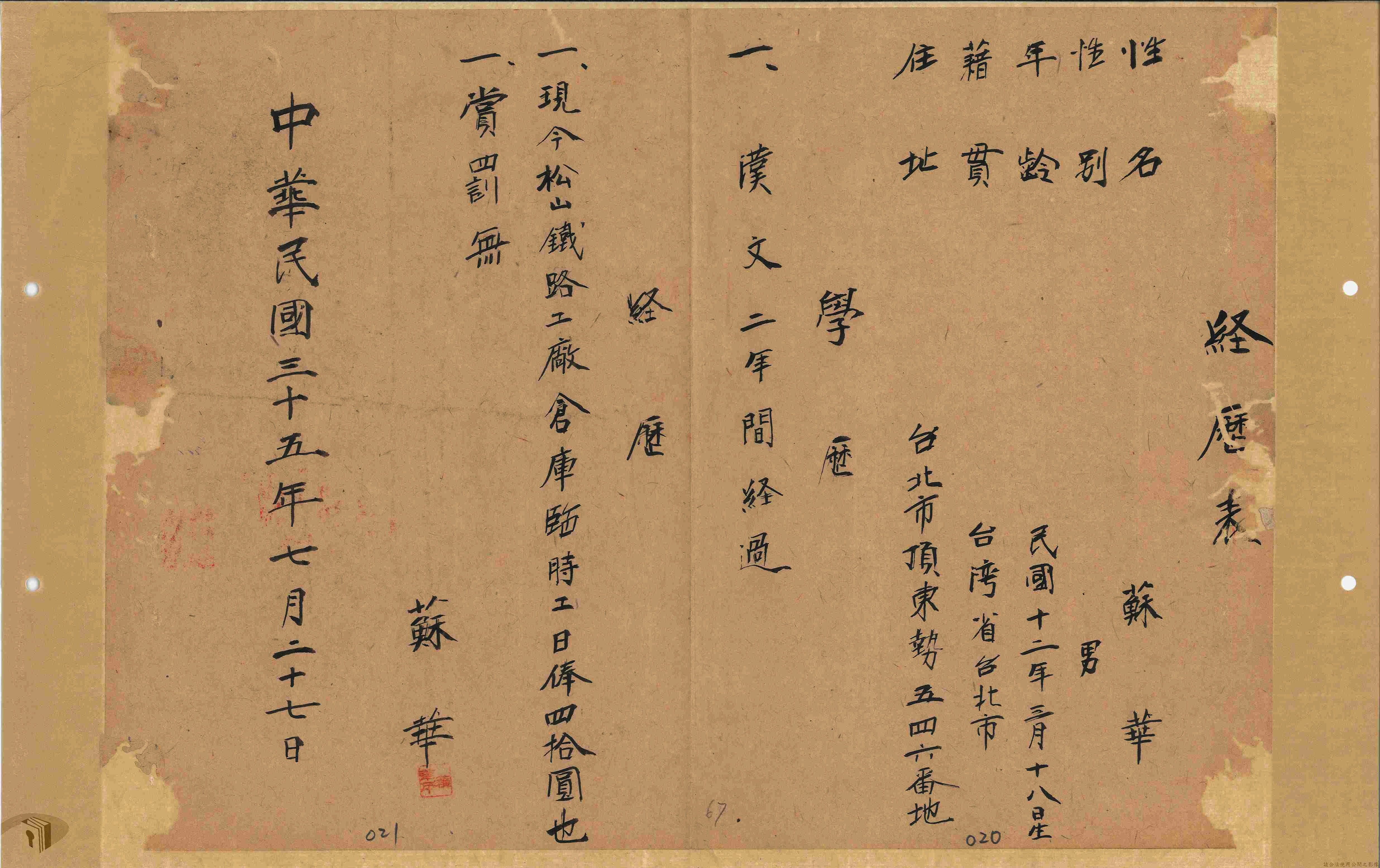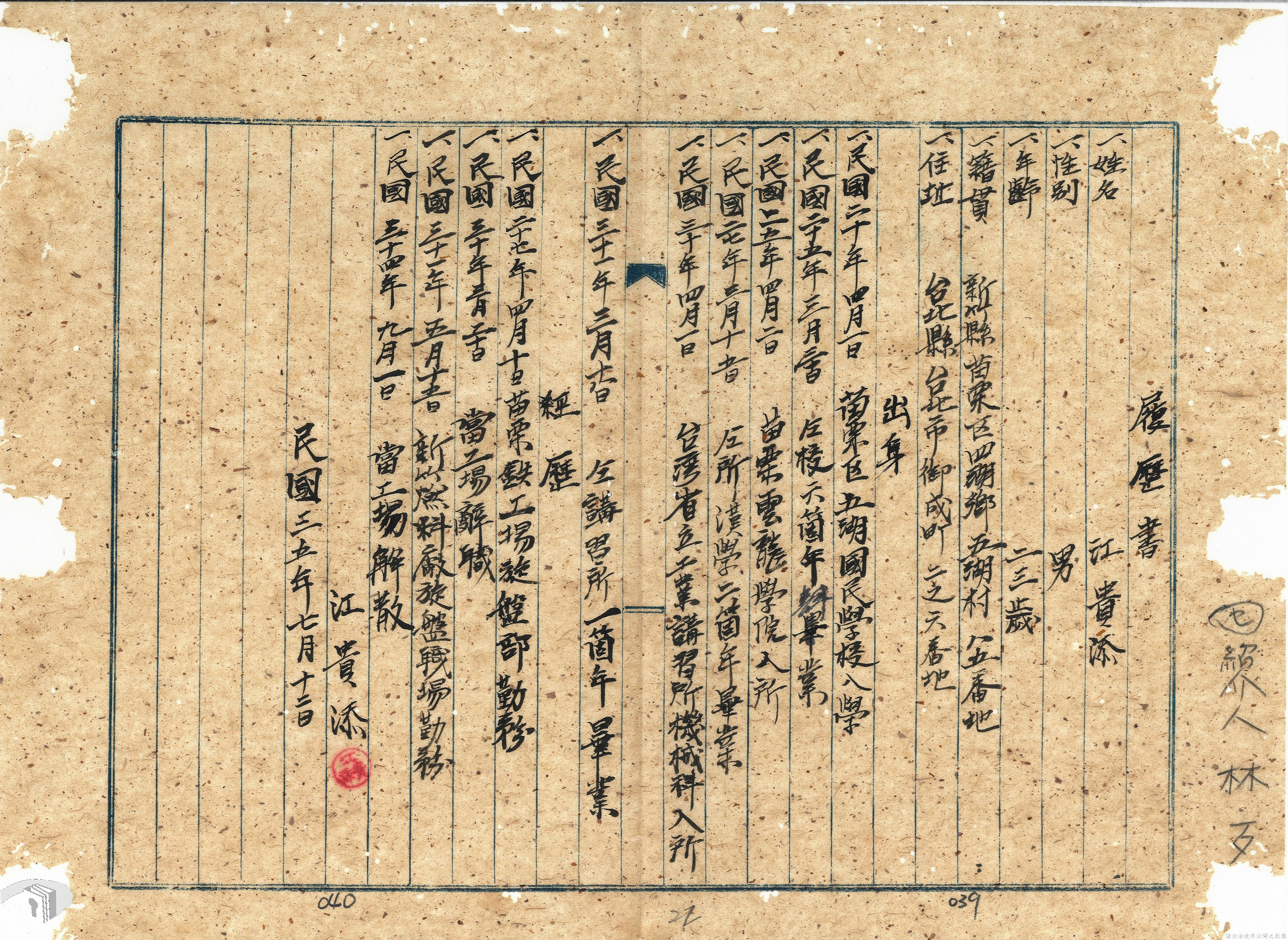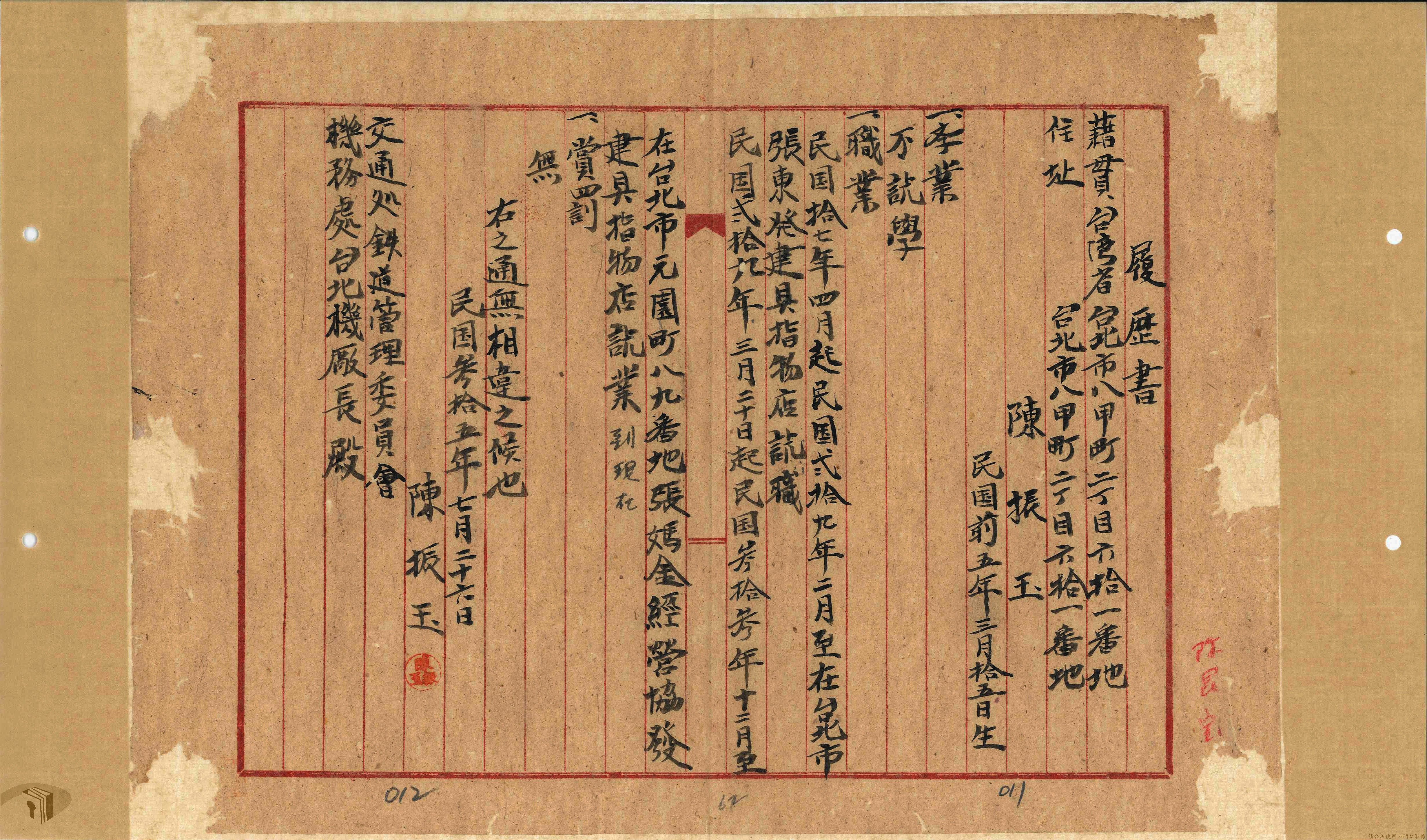 本案為35至36年間,臺灣省鐵路管理委員會通知臺北機廠辦理人員職位異動相關事宜,其中部分人員被任命為臺北機廠旋盤職場旋盤工、臺北機廠客車職場木工、臺北機廠客車職場雜務手等職。附履歷表、錄用技工名冊等文件資料。