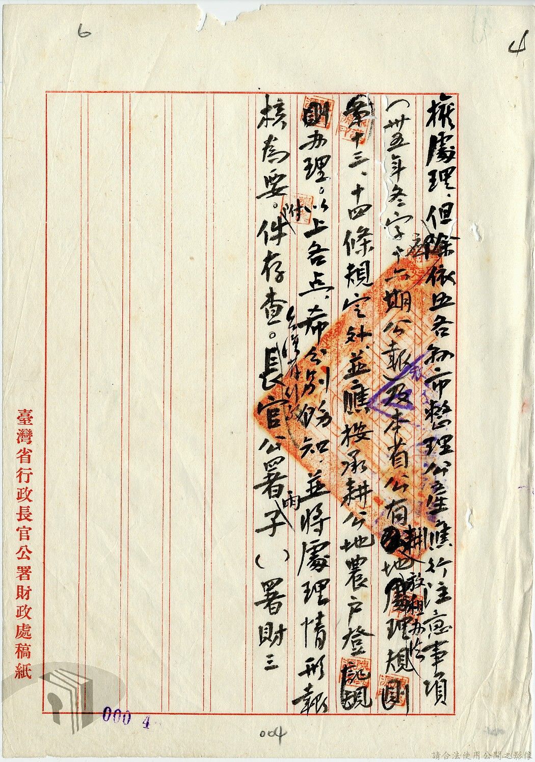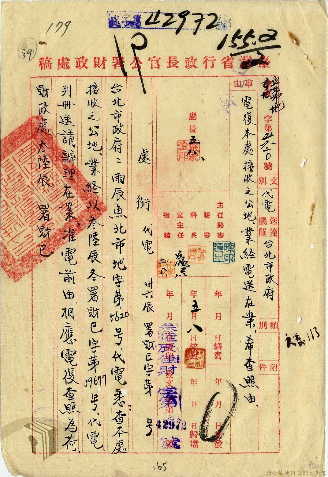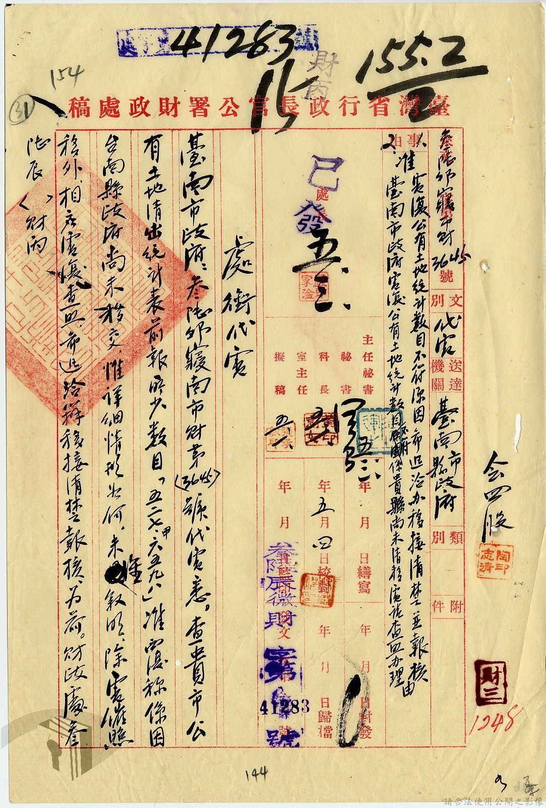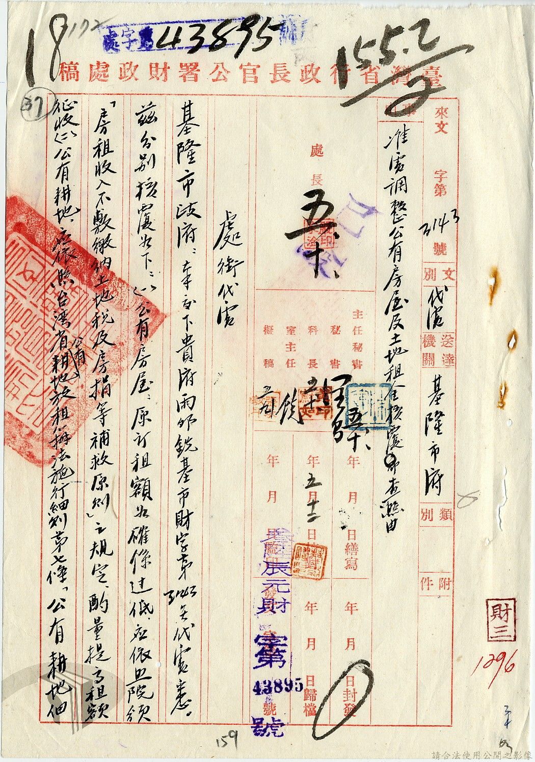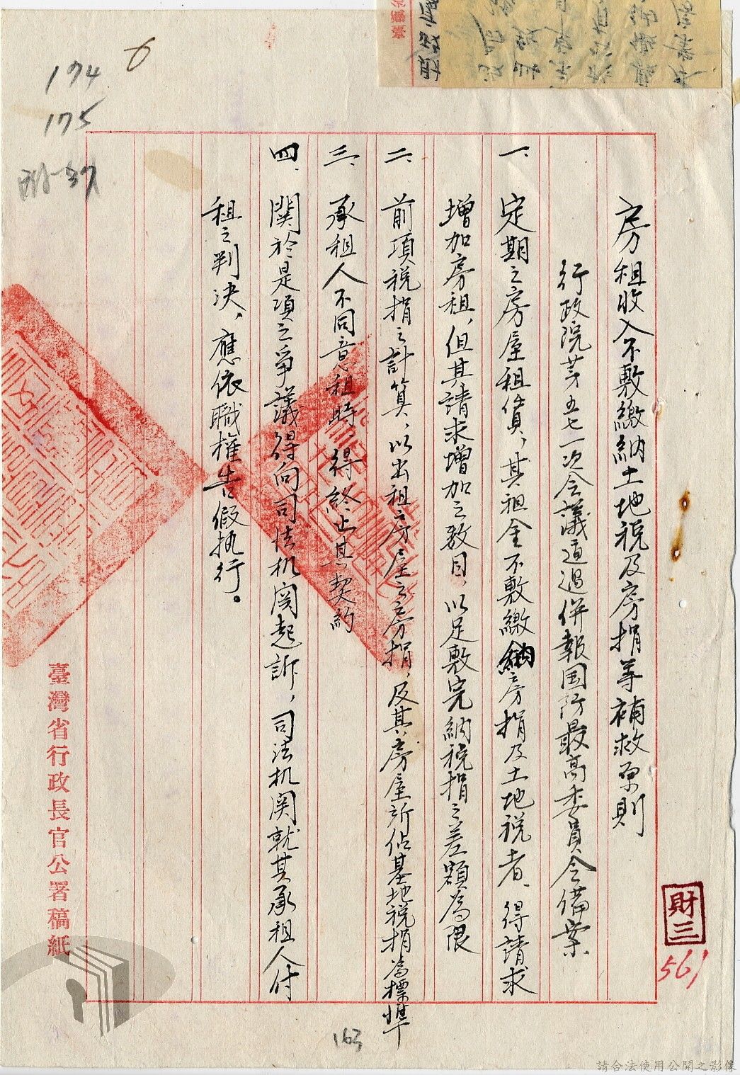 本案為35至36年間,臺灣省行政長官公署處理各縣市公有土地放租承購、土地產權登記等工作情形;行政長官公署受理花蓮縣玉里鎮民因包租公有地與佃農產生之糾紛;臺南縣參議會建議行政長官公署將各鄉鎮公有土地劃歸鄉鎮以裕財政,公署回覆依照36年度財政劃分辦法,應劃歸鄉鎮處理等。