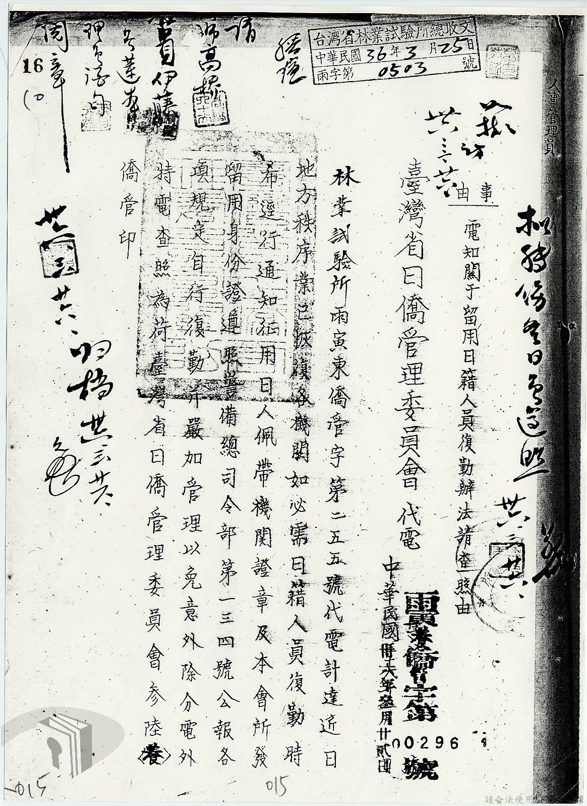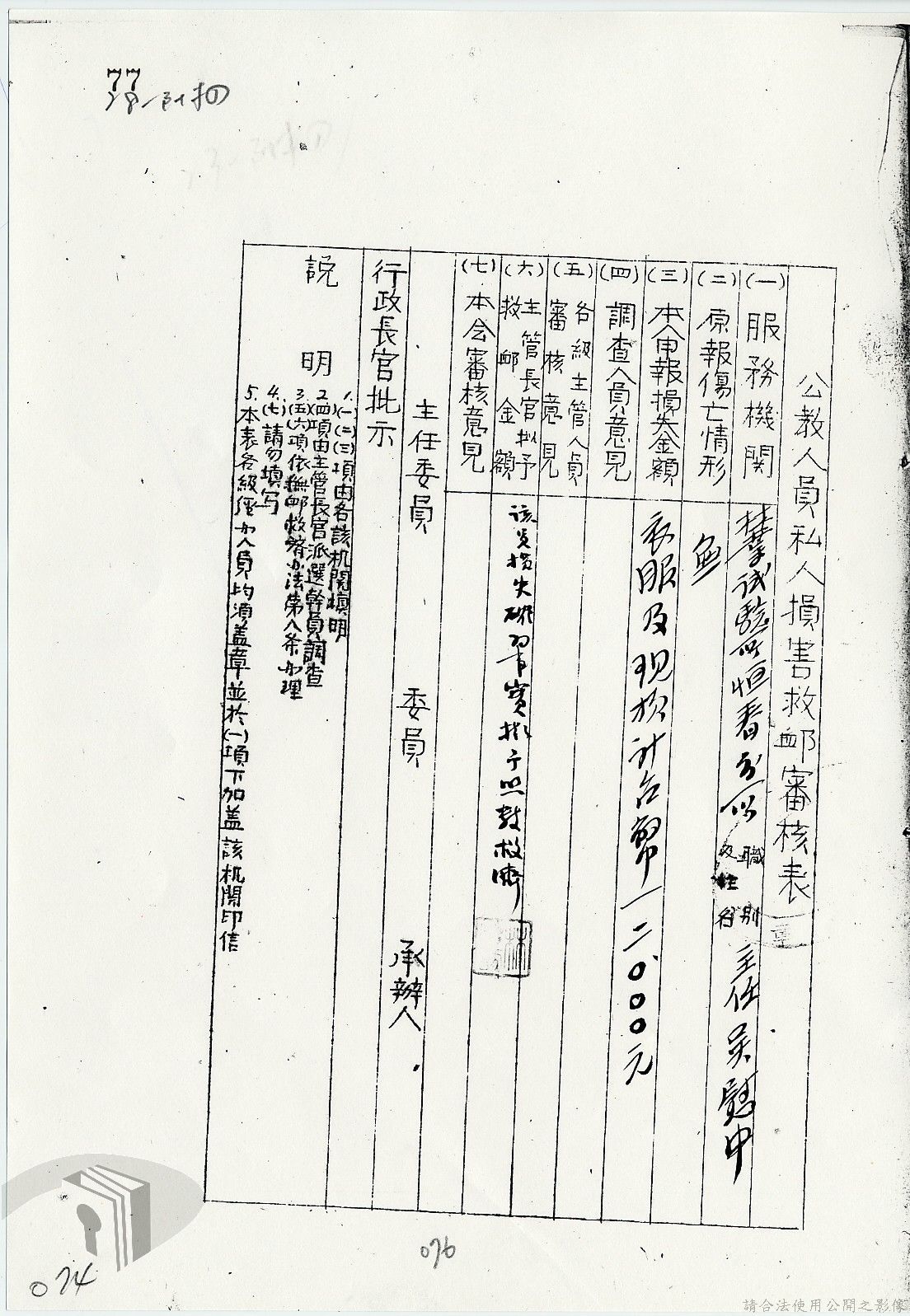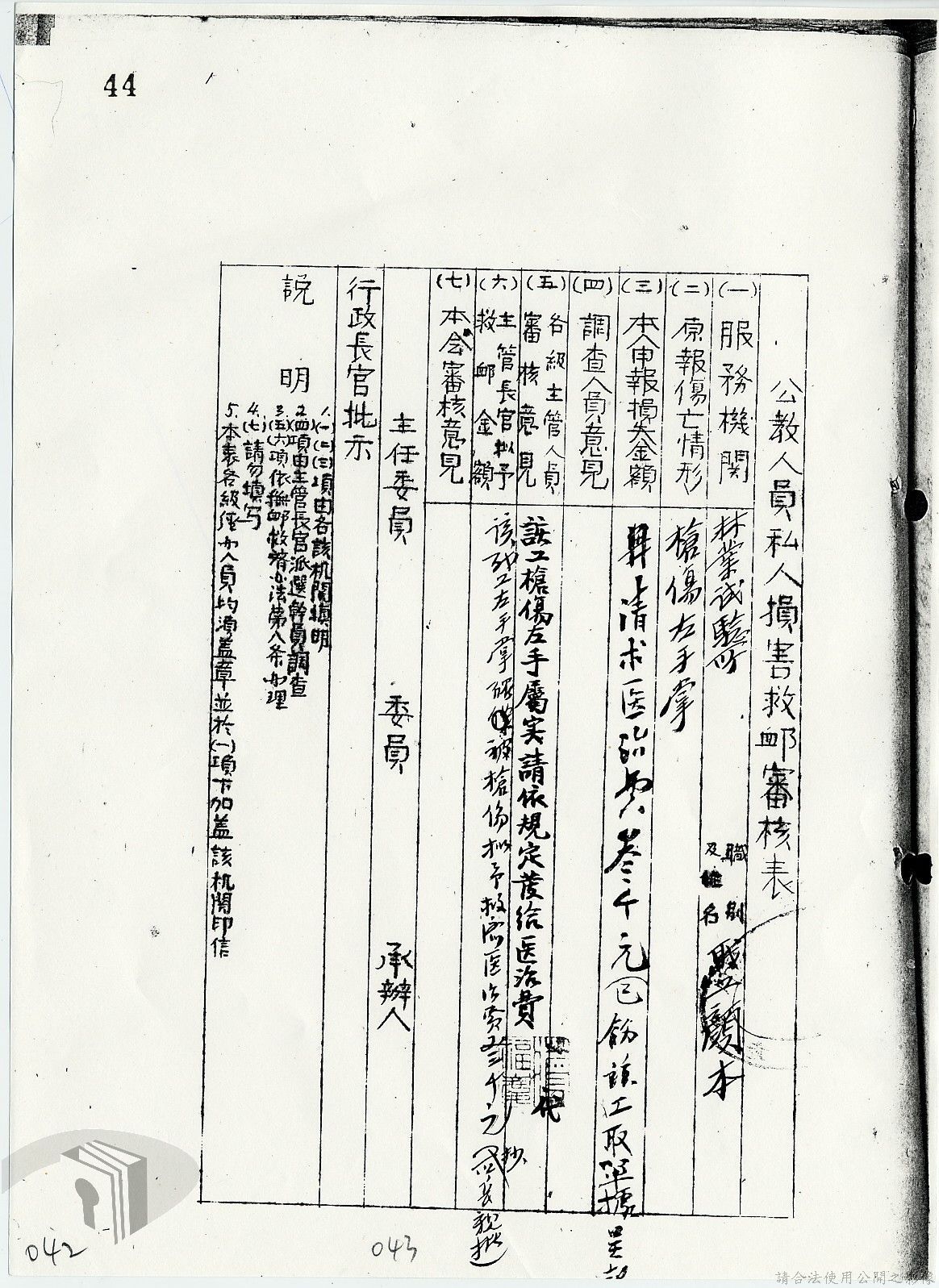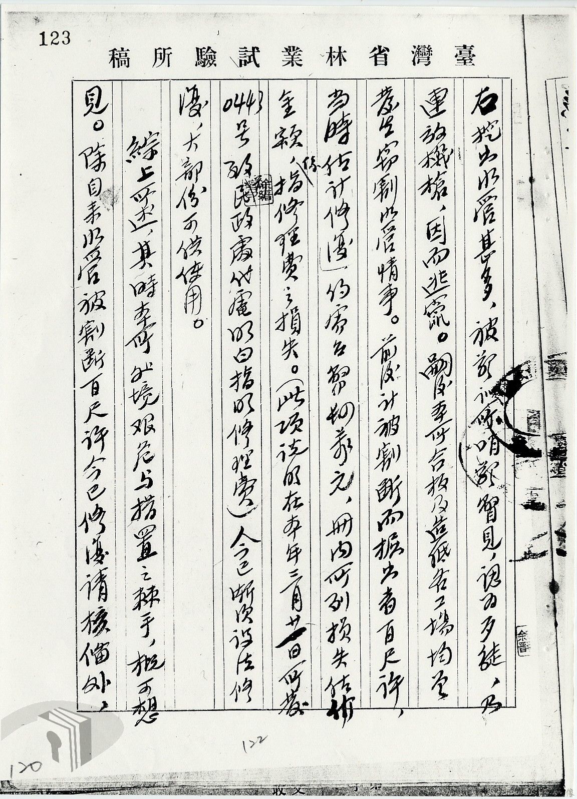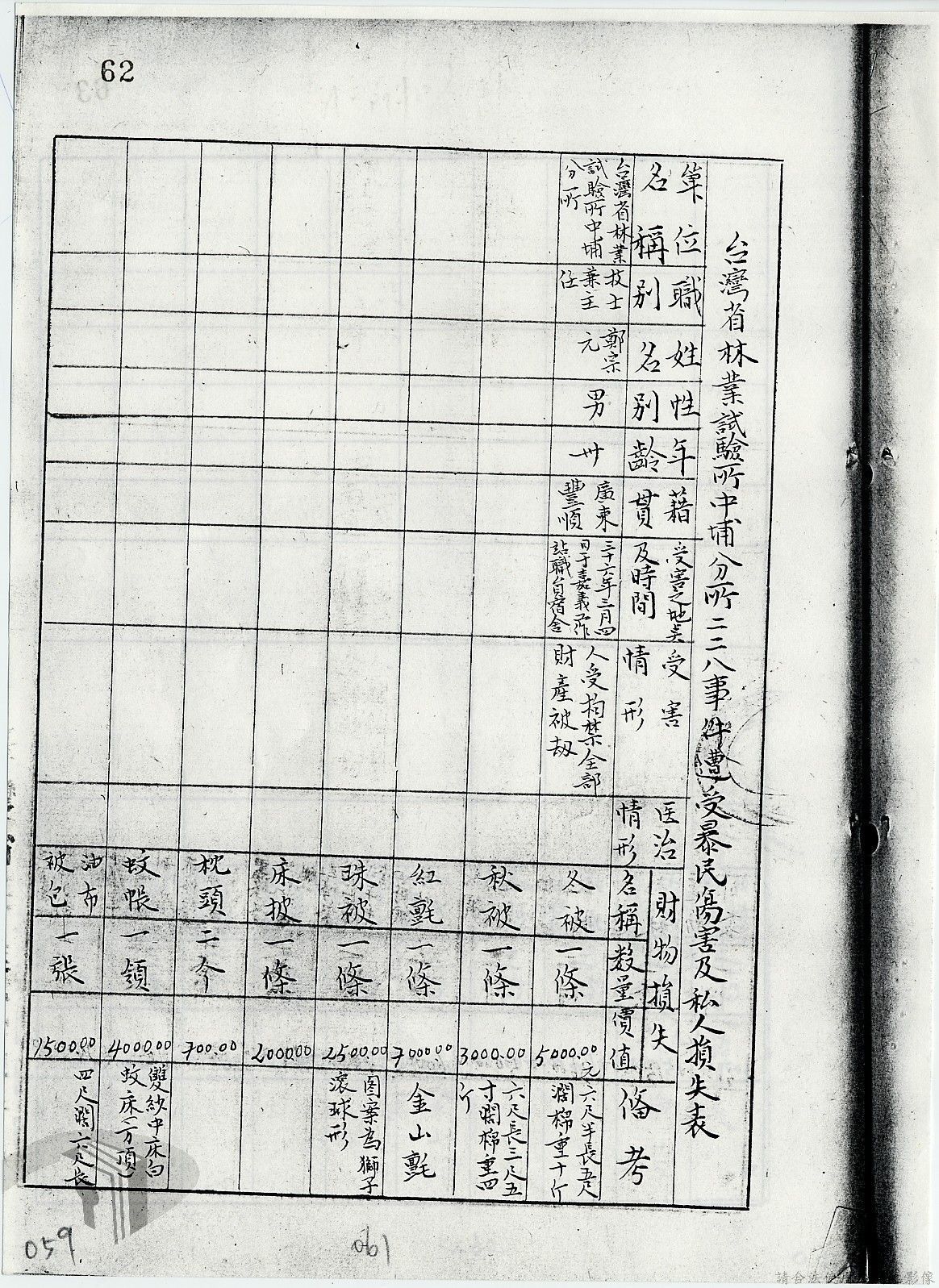 本案為36年間,臺灣省林業試驗所於二二八事件後,所屬各分所向林業所陳報所署人員傷亡撫恤、財產損失核銷以及有功人員獎勵等情形;林業試驗所於事件期間轉發公署處理政策,並要求各分所回報狀況,太麻里、恆春、中埔等各分所回報人員械彈損失情況、林木盜伐情況並檢送公物公產損失調查清冊予林業試驗所等。