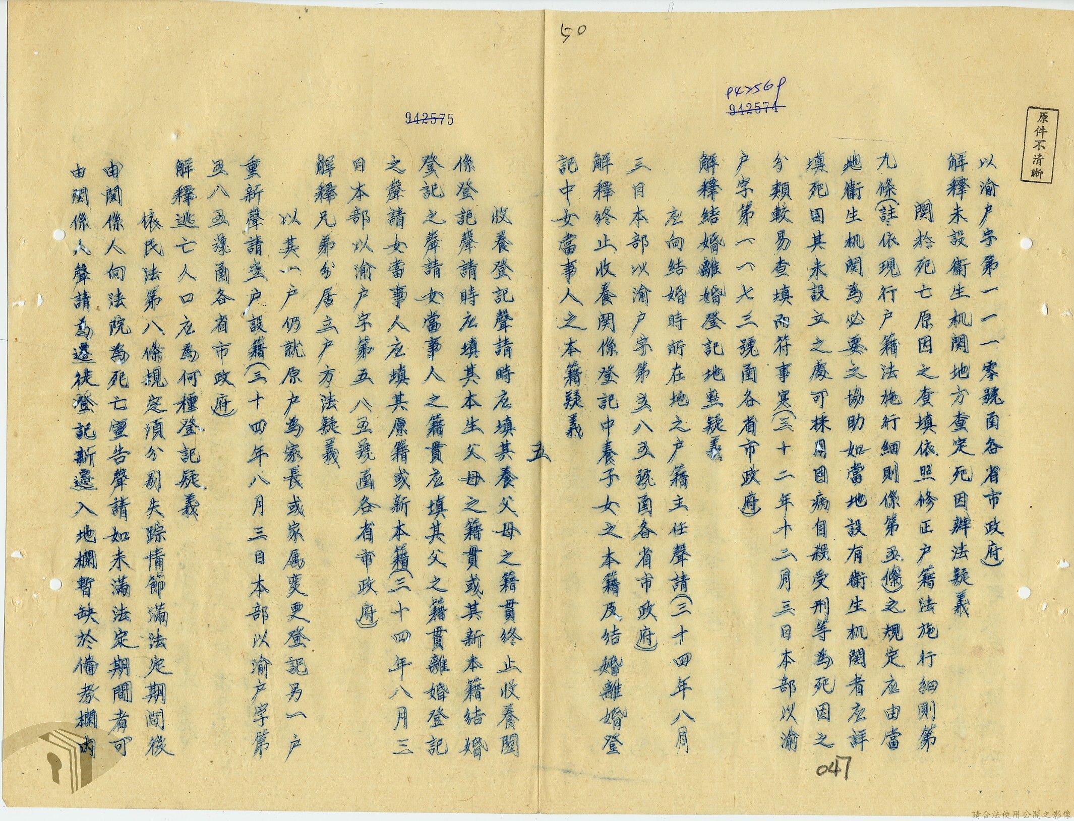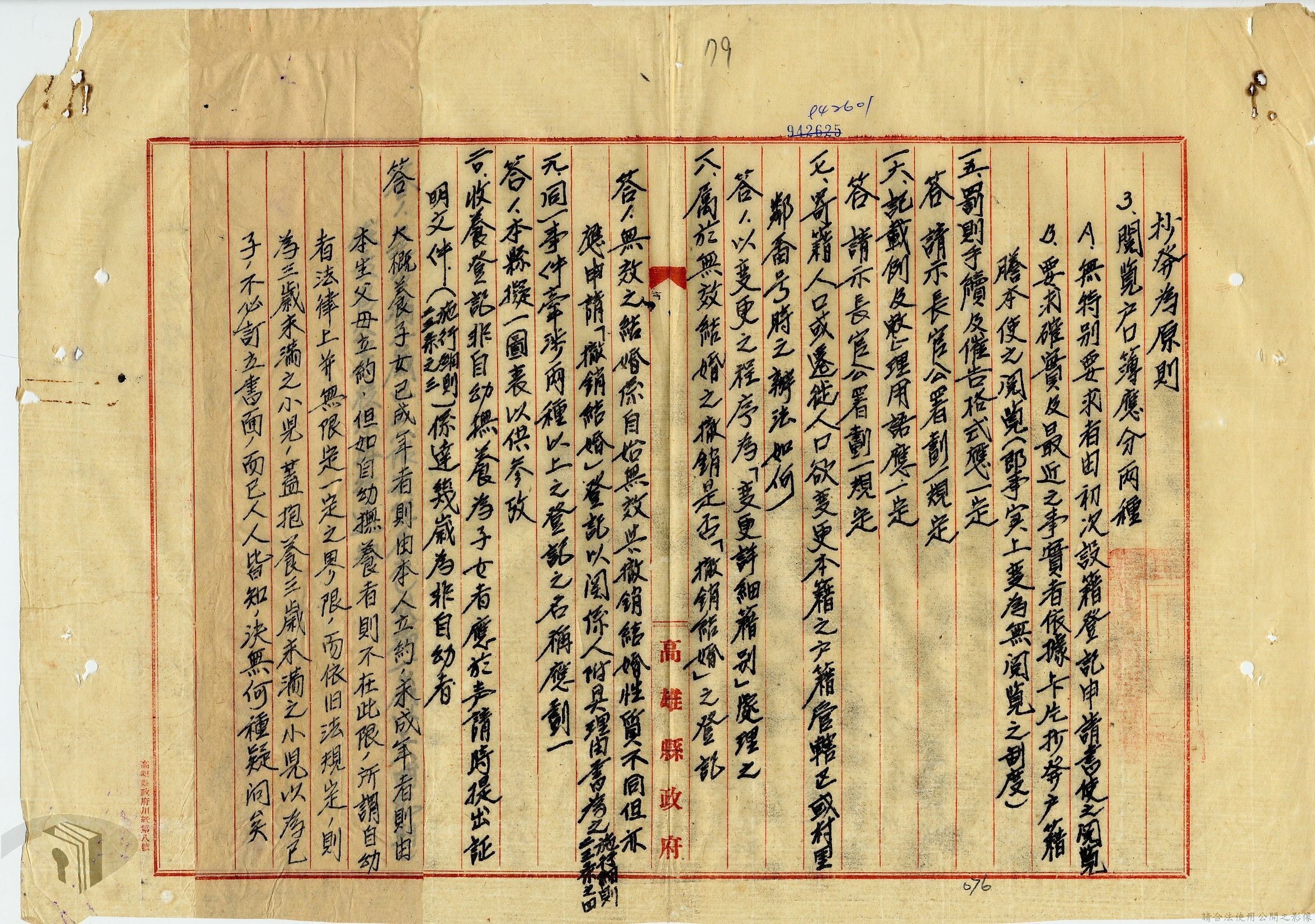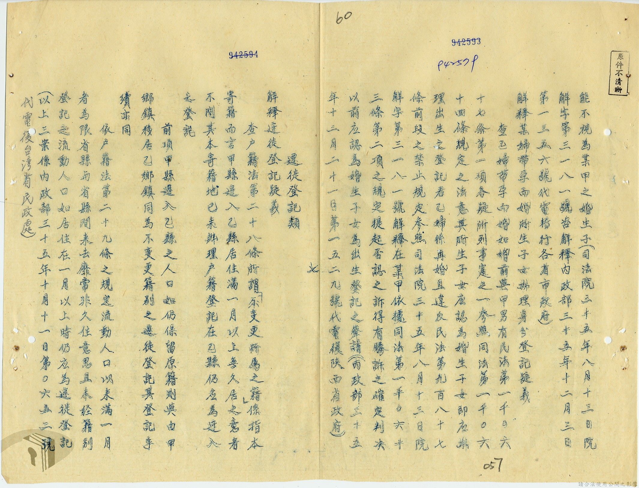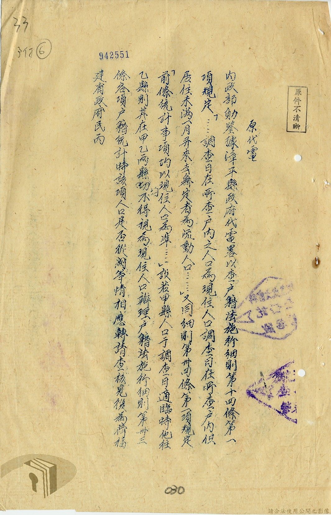 本案為36年間,臺灣省行政長官公署辦理戶籍登記清查工作經過以及所頒行之各項相關法令;長官公署處理各縣市辦理戶籍登記之疑義,包括出生年月日修改、父子姓氏不合、日本姓名改正等,公署分行予以答復或請示內政部核示之,並抄發戶籍法疑義解釋第一、二輯給各縣市政府查照;二二八事件發生後,公署及警備司令部執行清鄉計劃,並頒發臨時清查戶口實施辦法及聯保切結書格式給二十一師司令部。