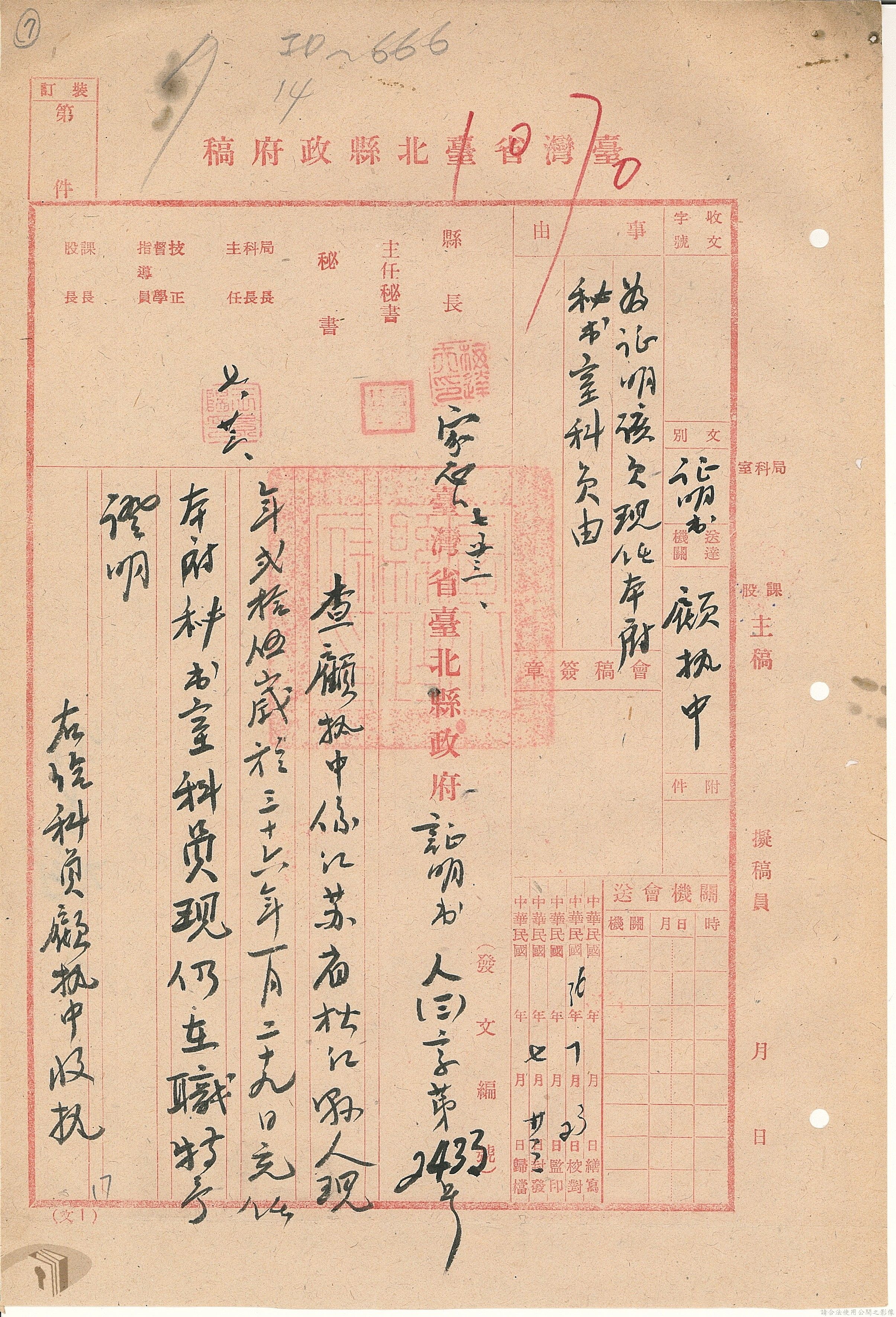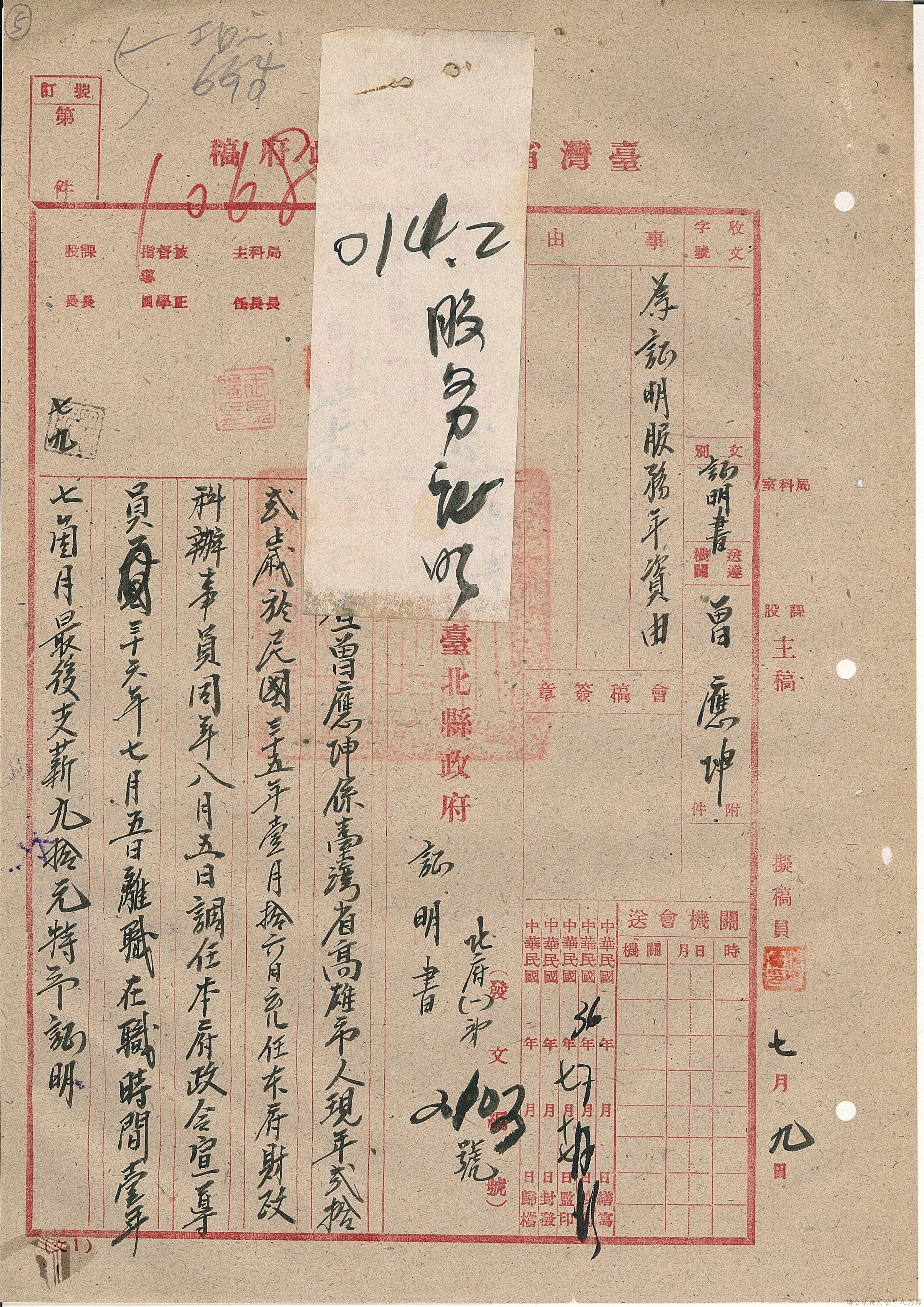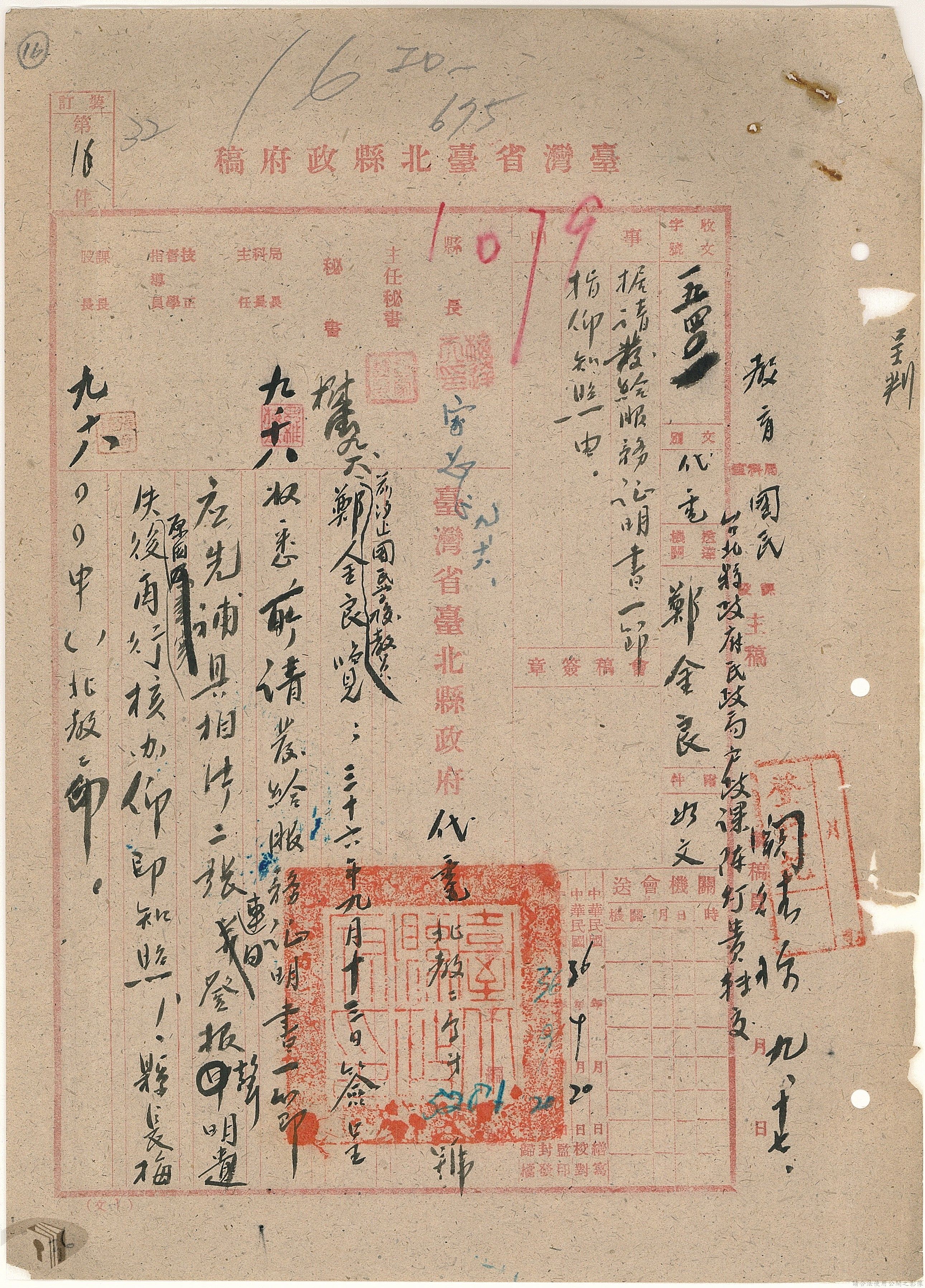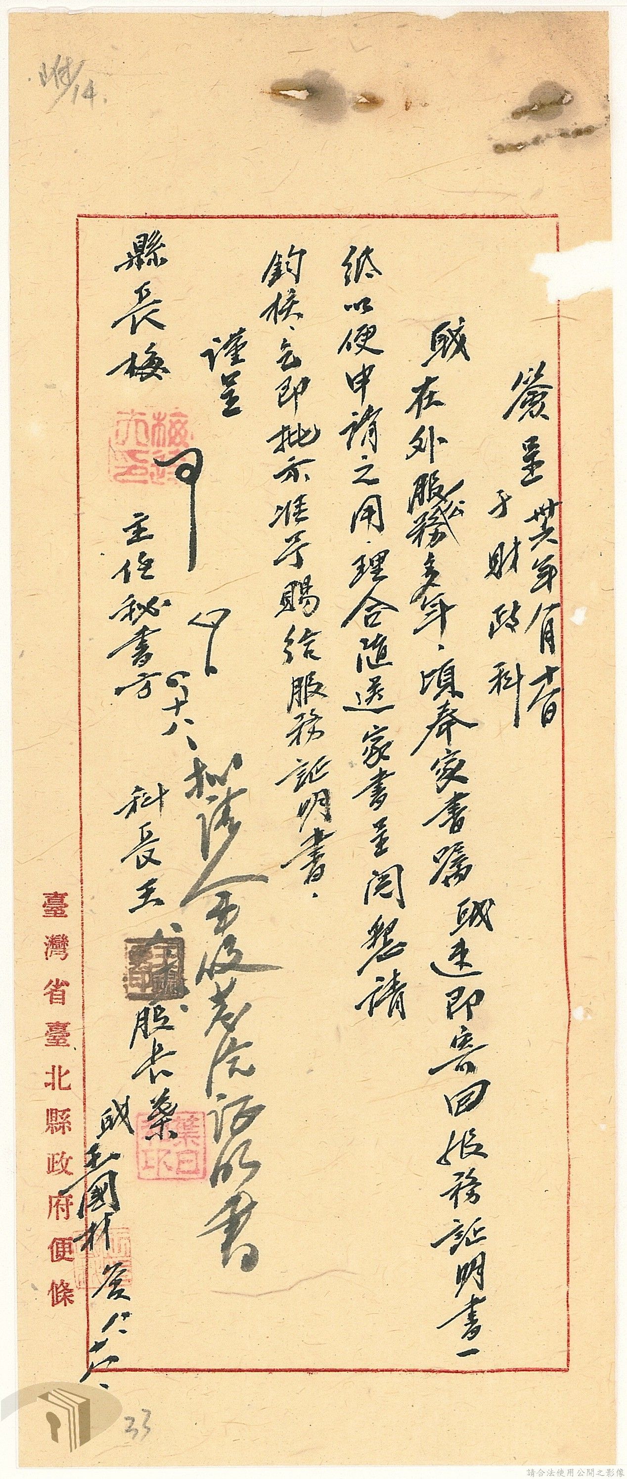 本案為36年間,臺北縣立金山第一國民學校及臺北縣政府所屬職員等人陳請縣政府同意發給各項證明書,該府同意將證明書發給當事人,以及發電報告知金山第一國民學校不便發給服務證書。附服務證件明細表、資歷證件損失明細表等文件資料。