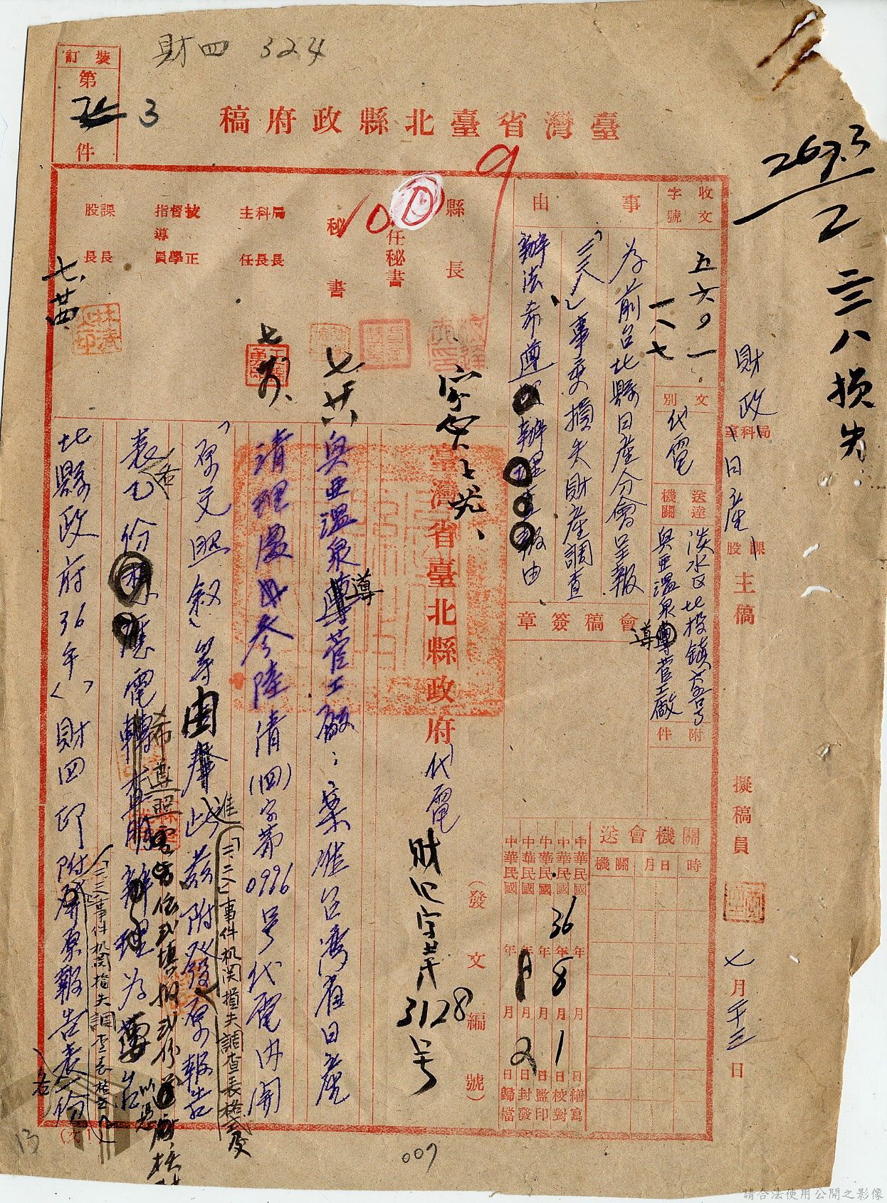 本案為36年間,臺北縣政府處理各機關陳報之二二八事變財物票照損失,包括稅捐稽徵處陳送的事件損失財物找回清冊、票照暨文卷損失清冊等;縣府發電報請興亞溫泉導管工廠、臺灣棉業公司及各鄉鎮公所陳報二二八事變損失財產調查報告、彙交舊存之日、德、意等國影片等。