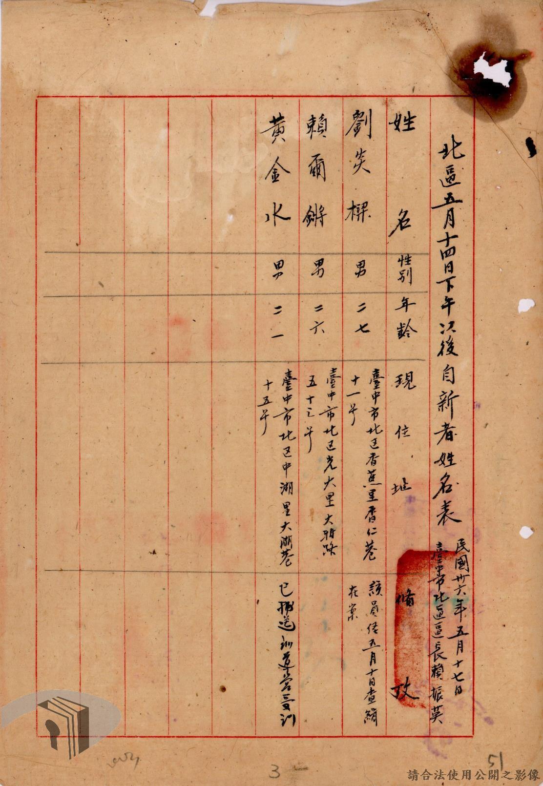 辦理暴動份子自新卷
