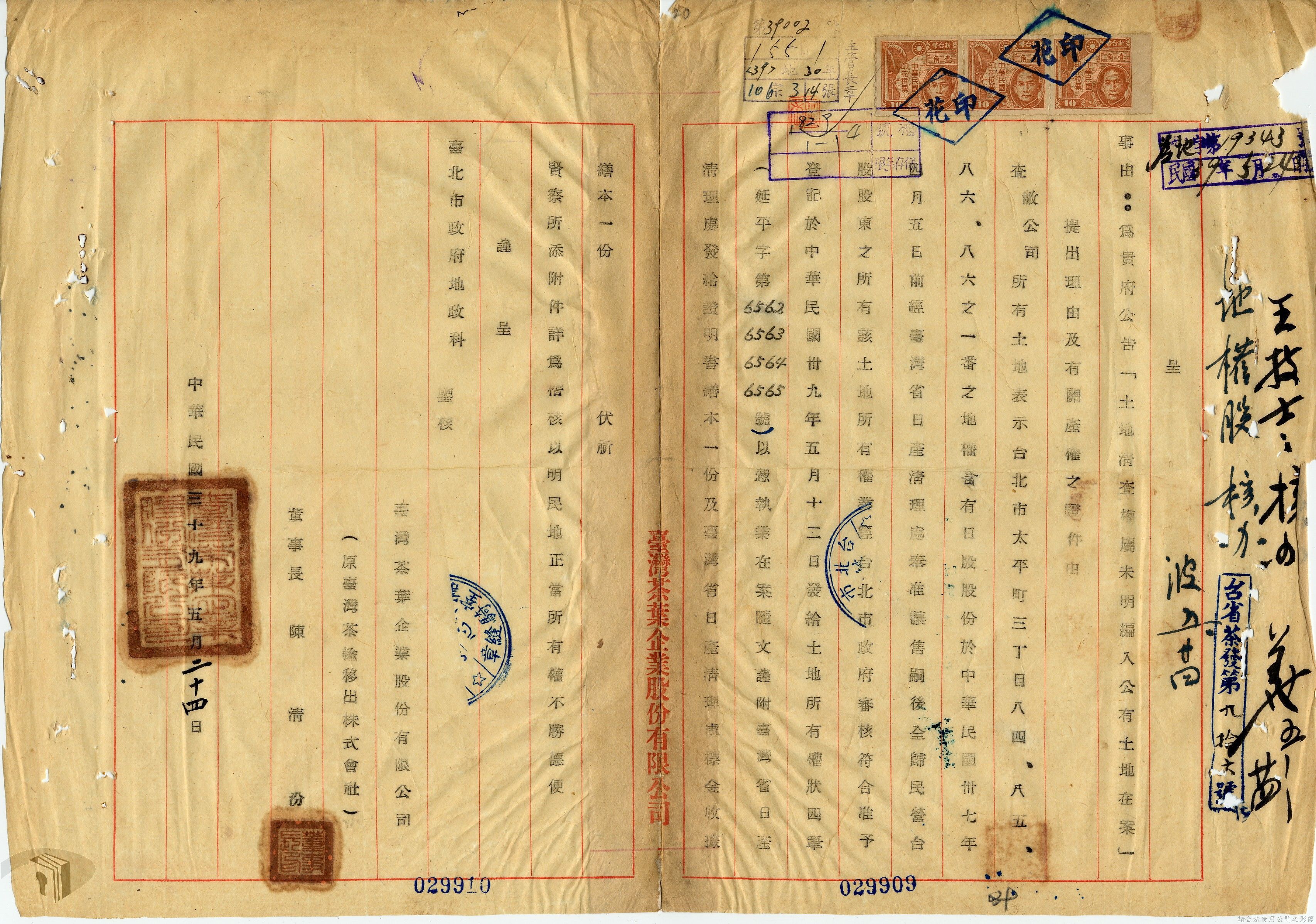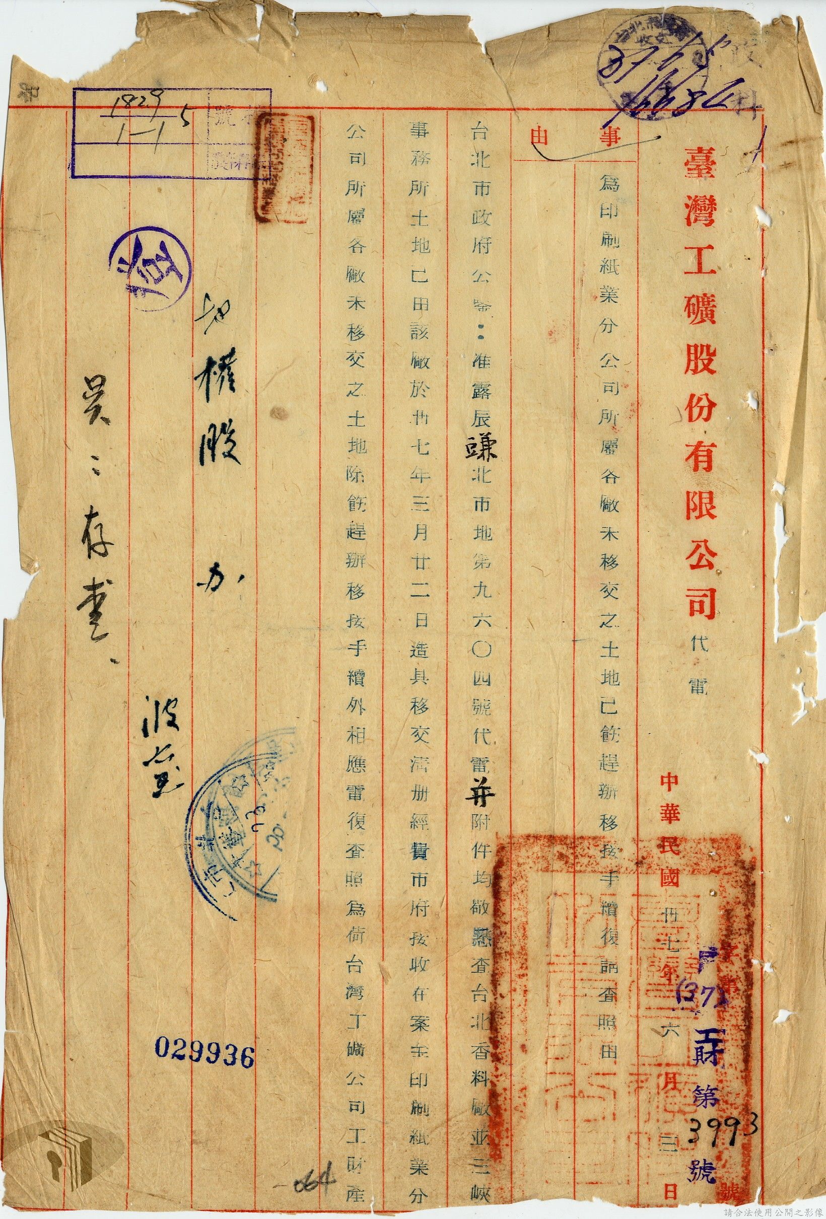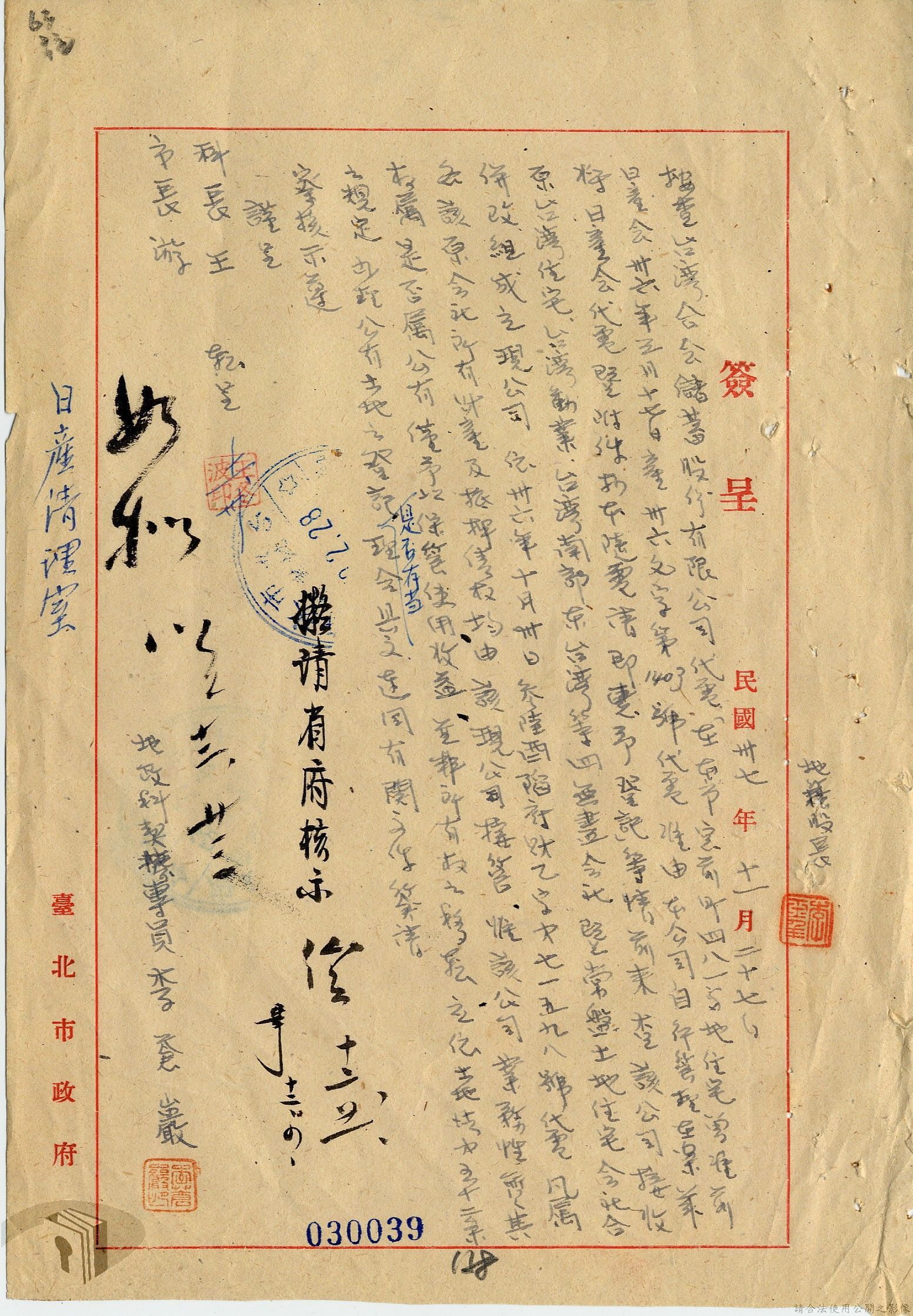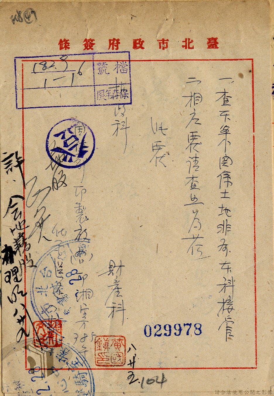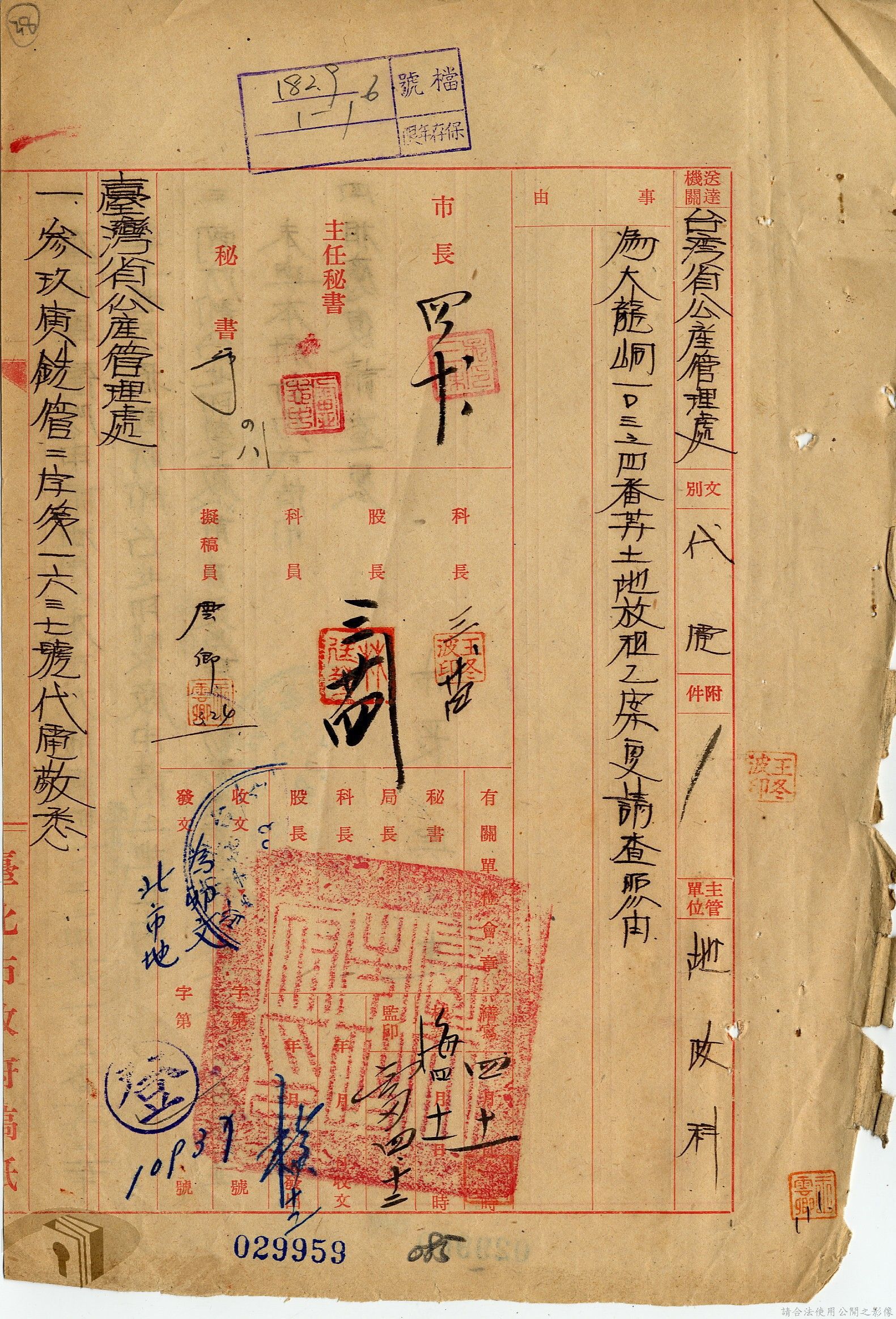 本案為36至40年間,有關臺北市政府於民國三十六年至三十九年間往來臺灣省政府等機關,處理企業與民間購置日產以及移轉過程產生的產權問題,包括臺灣茶葉企業股份有限公司及泰元會社等臺日合資企業,因為公地清查時被暫編為公有地的緣故,而請市府確認產權,經市府及臺灣省公產管理處查證屬實並確定未列入讓售;臺灣工礦公司將所屬第一印刷廠標售國防部聯勤總部,請市府派員辦理移交手續未果,工礦公司與國防部呈請儘速辦理土地租約定訂事宜;國防部臺北印製廠與臺北空軍醫院產生競租糾紛,省府批示由市府與雙方按需要情形劃定使用範圍;華南銀行以前身臺灣信託公司所持日人股份極少的理由,請將該股份暫視為民有,併附固有不動產及省人信託不動產統計表;臺灣住宅無盡會社函請市府及日產處理委員會請免予視為日產以明產權,併附所有會員住宅房屋已未接收清冊;臺灣合會儲蓄股份有限公司向市府陳報出售部分房屋予基督教神召會,並向市府申請產權登記﹔市民以承租的日產耕地因颱風造成面積流失,請市府派員調查及准予更正地籍資料或要求取消租約,或承租地遭人霸佔請市府出面處理,或要求確認其土地產權,並為市府覆文認可;市府依省政府命令,清查各區於日本統治時代的保甲擴充情形及數量,市府經各區公所統計並無日本統治時代的保甲土地。