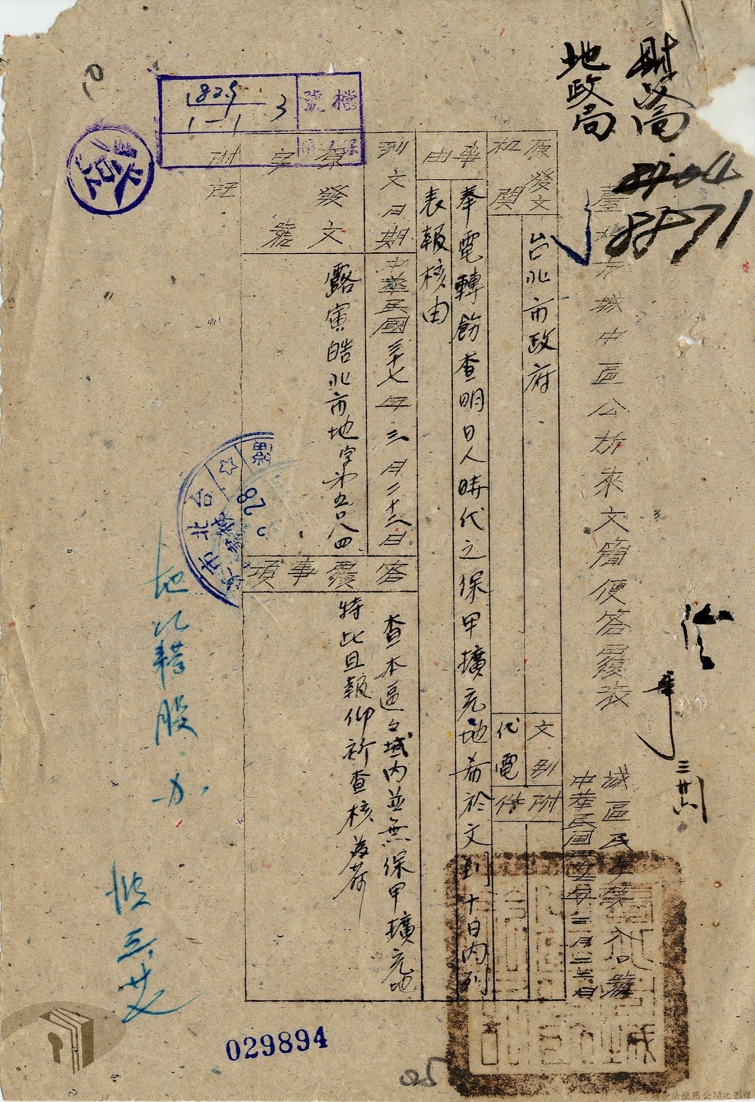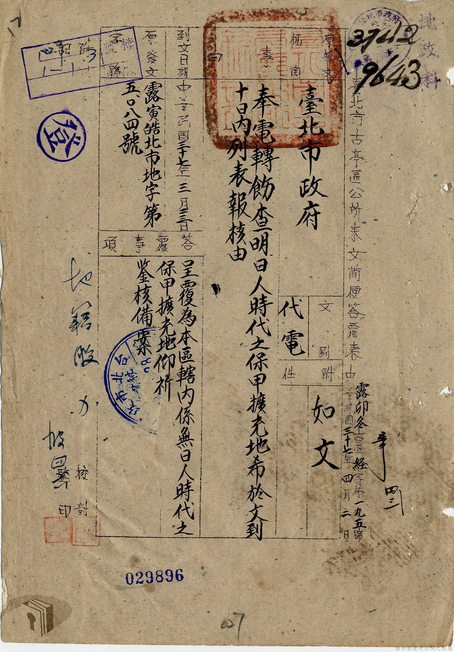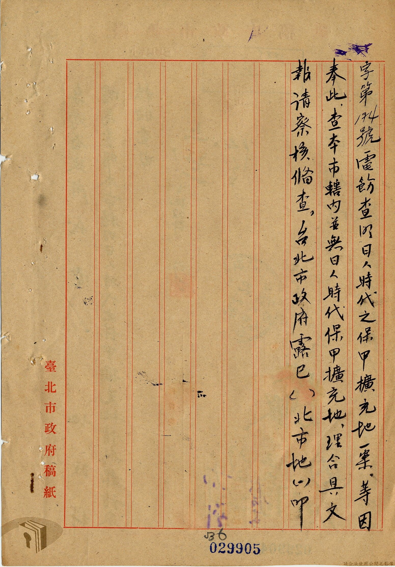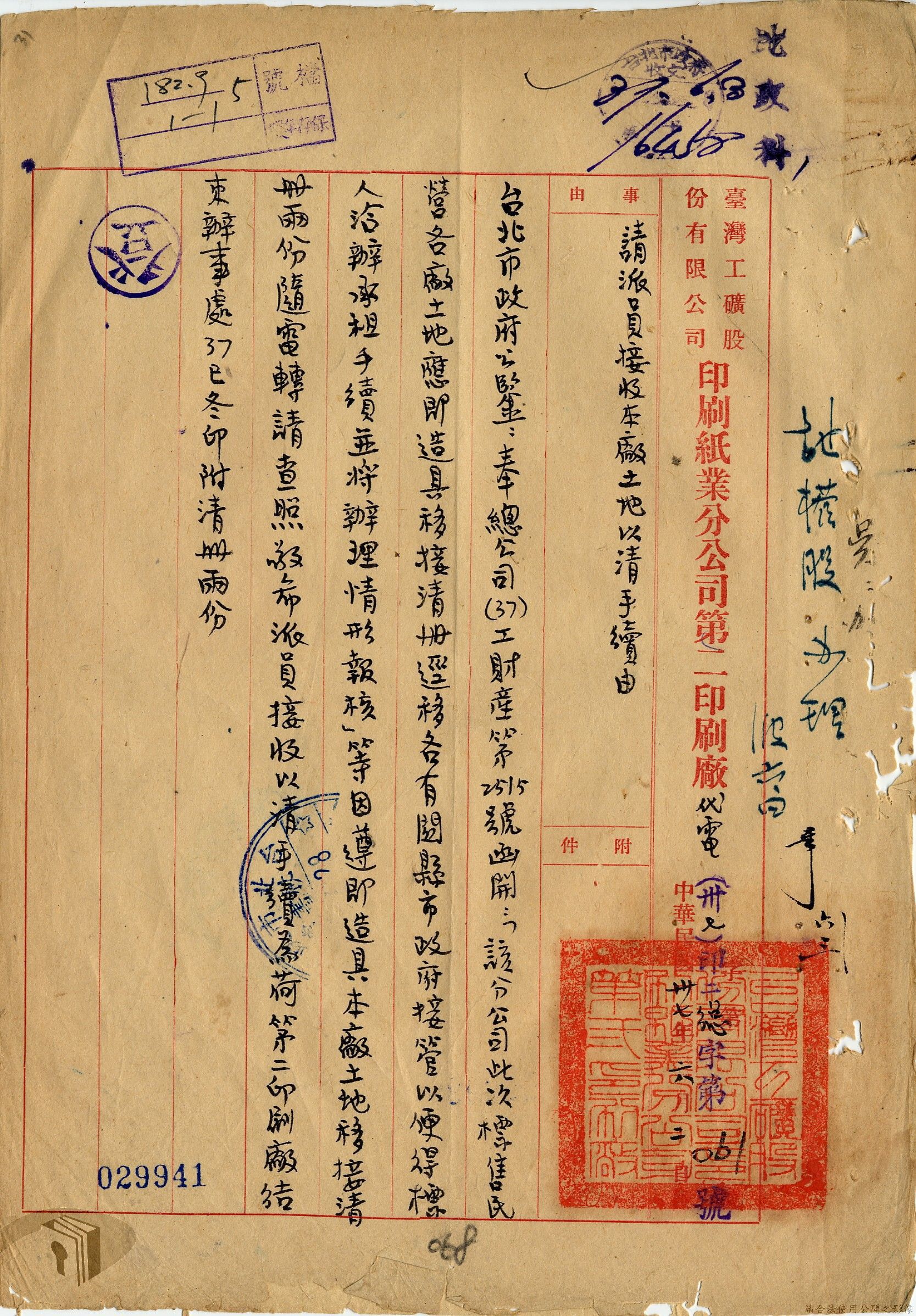 本案為36至40年間,有關臺北市政府於民國三十六年至三十九年間往來臺灣省政府等機關,處理企業與民間購置日產以及移轉過程產生的產權問題,包括臺灣茶葉企業股份有限公司及泰元會社等臺日合資企業,因為公地清查時被暫編為公有地的緣故,而請市府確認產權,經市府及臺灣省公產管理處查證屬實並確定未列入讓售;臺灣工礦公司將所屬第一印刷廠標售國防部聯勤總部,請市府派員辦理移交手續未果,工礦公司與國防部呈請儘速辦理土地租約定訂事宜;國防部臺北印製廠與臺北空軍醫院產生競租糾紛,省府批示由市府與雙方按需要情形劃定使用範圍;華南銀行以前身臺灣信託公司所持日人股份極少的理由,請將該股份暫視為民有,併附固有不動產及省人信託不動產統計表;臺灣住宅無盡會社函請市府及日產處理委員會請免予視為日產以明產權,併附所有會員住宅房屋已未接收清冊;臺灣合會儲蓄股份有限公司向市府陳報出售部分房屋予基督教神召會,並向市府申請產權登記﹔市民以承租的日產耕地因颱風造成面積流失,請市府派員調查及准予更正地籍資料或要求取消租約,或承租地遭人霸佔請市府出面處理,或要求確認其土地產權,並為市府覆文認可;市府依省政府命令,清查各區於日本統治時代的保甲擴充情形及數量,市府經各區公所統計並無日本統治時代的保甲土地。